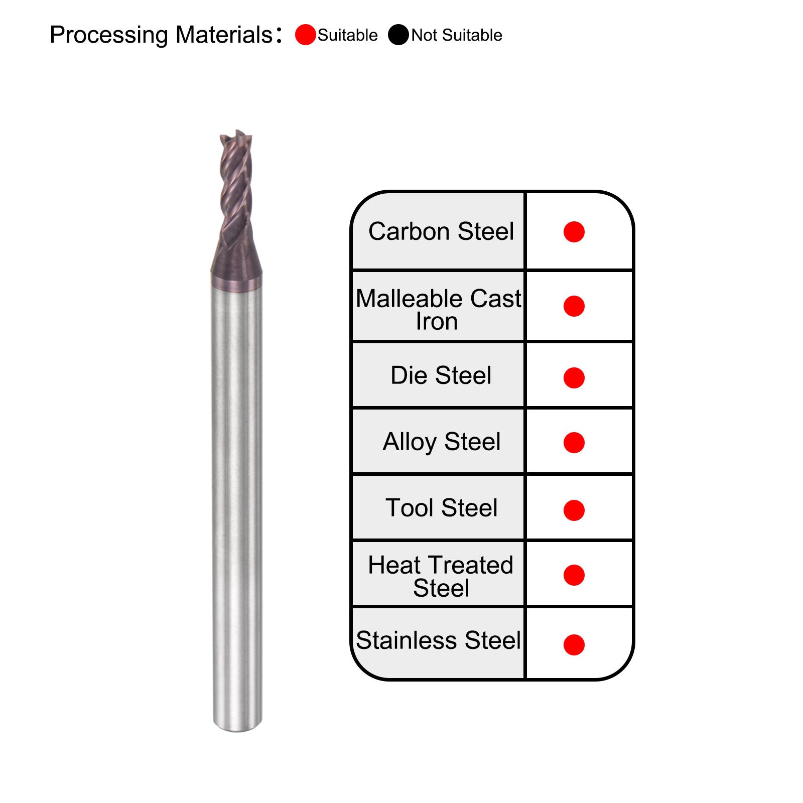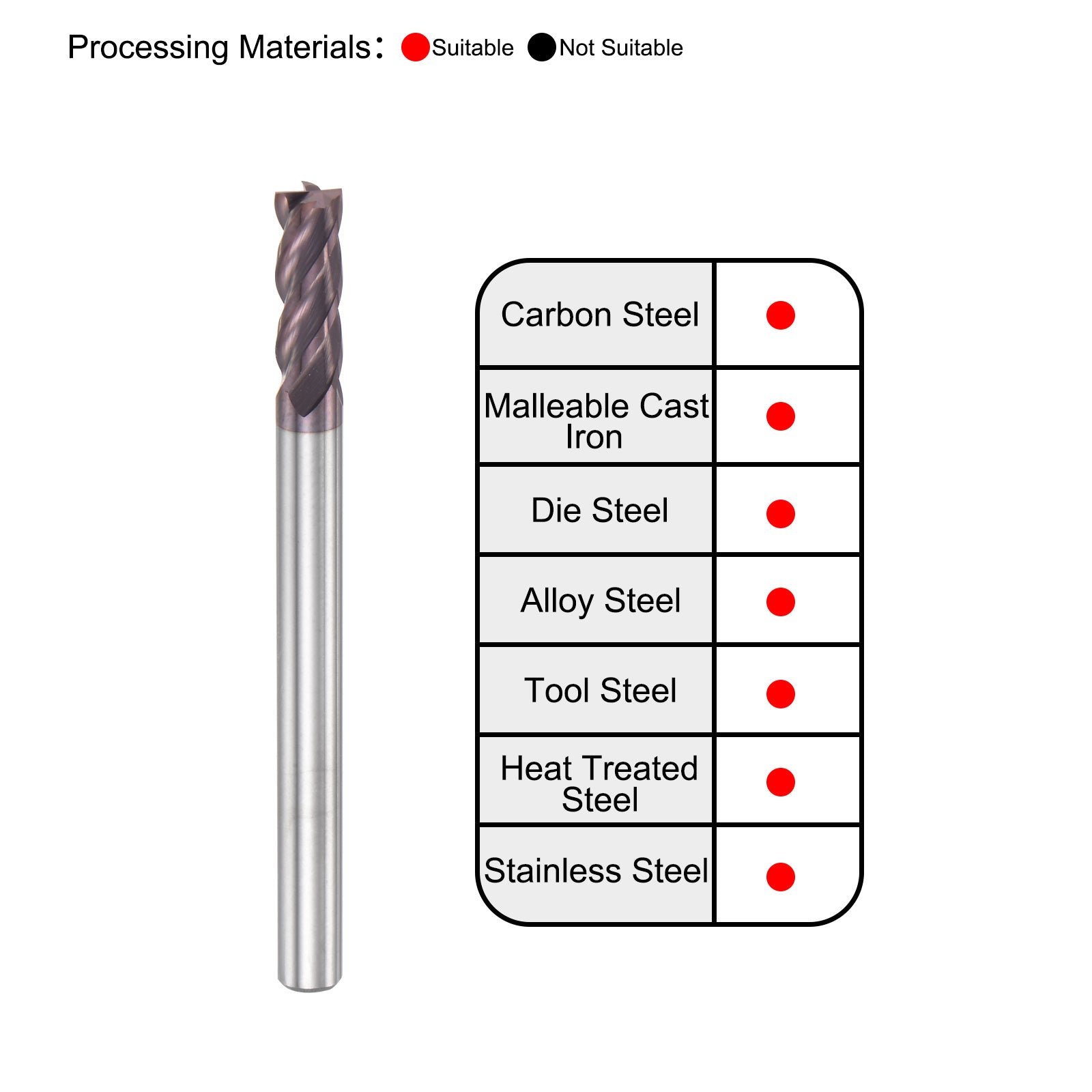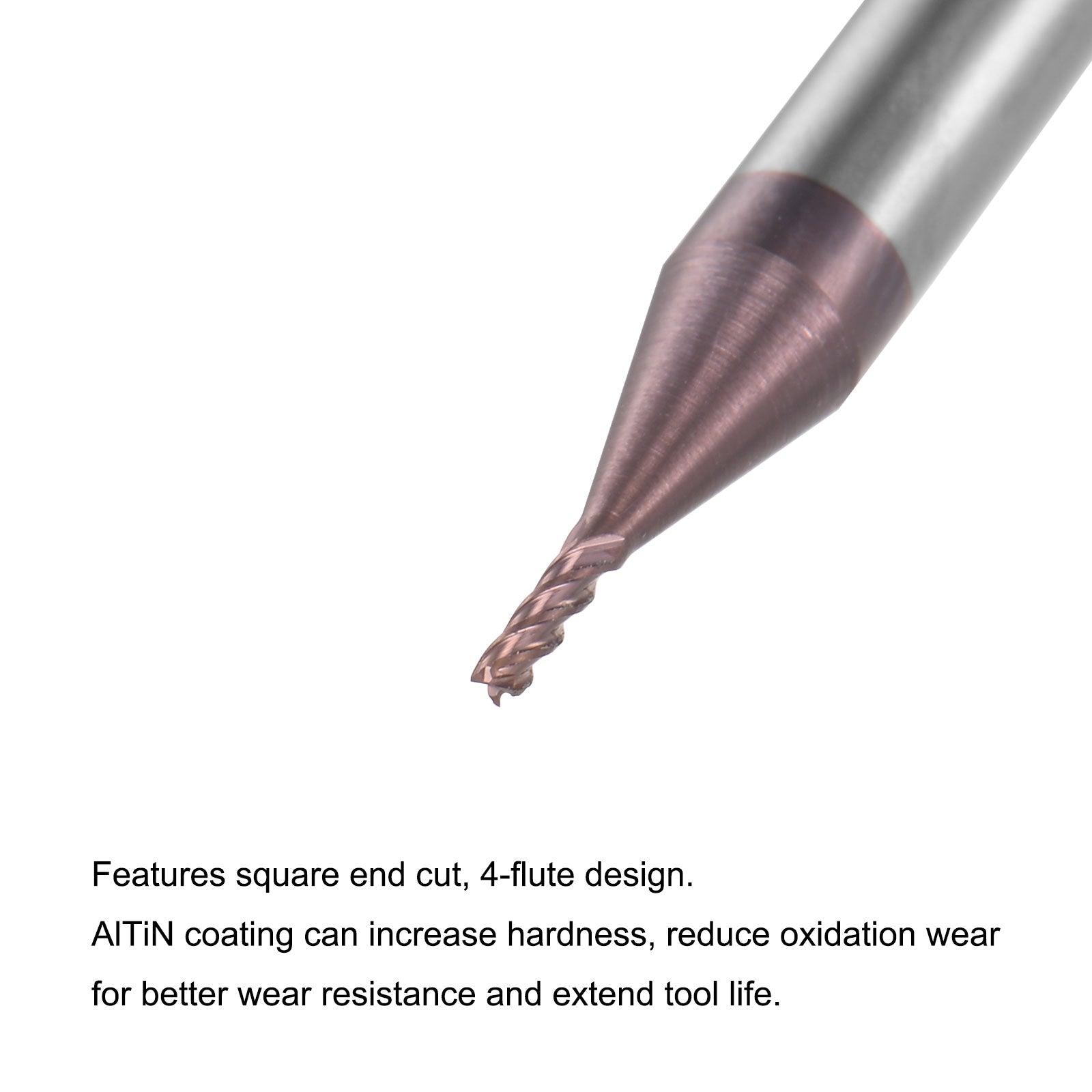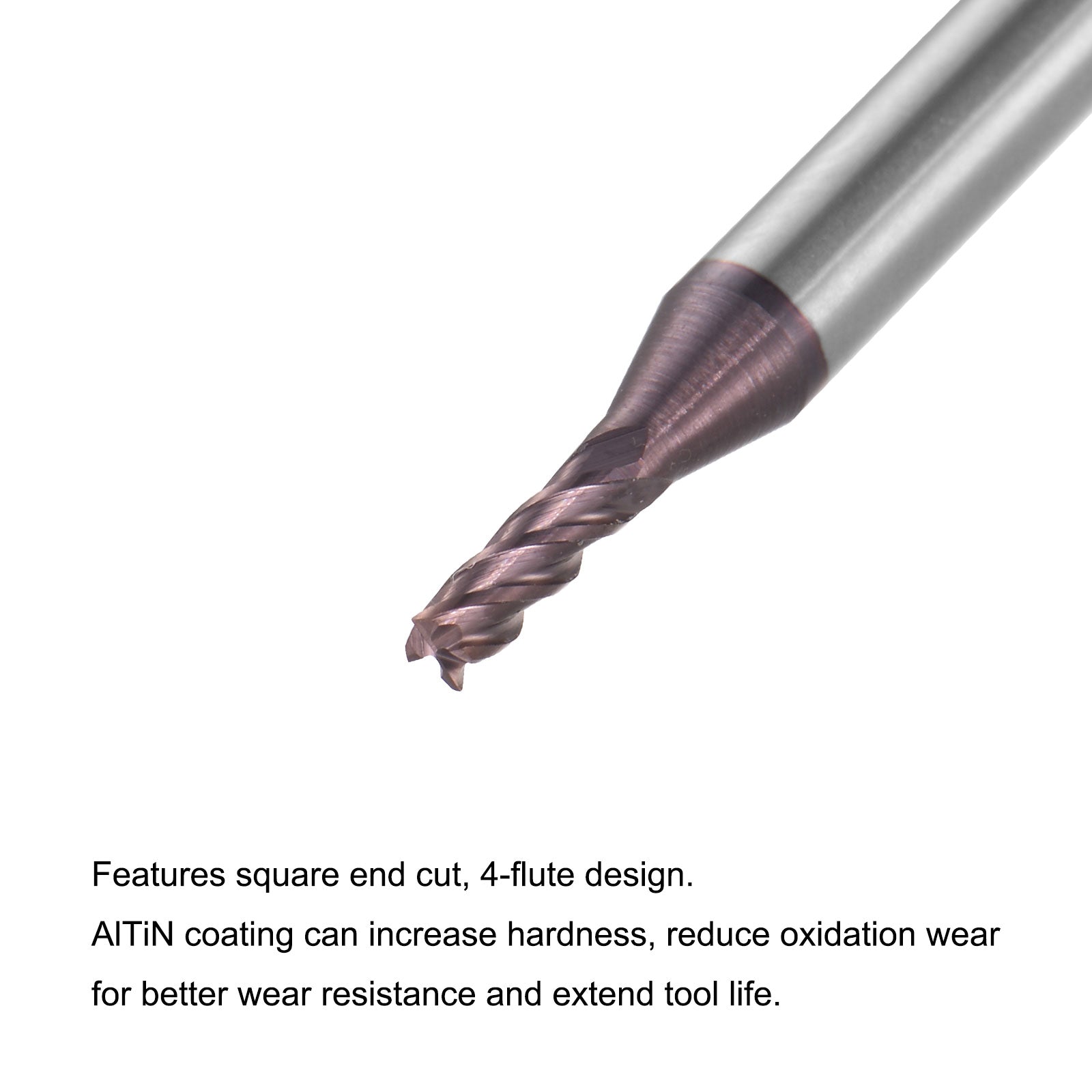 Features Square end cut, flute design, spiral chip space design for fast and clean chip removal. Sharp cutting edge provides smooth cutting. AlTiN composite coating can increase hardness, reduce oxidation wear for better wear resistance and extend tool life.