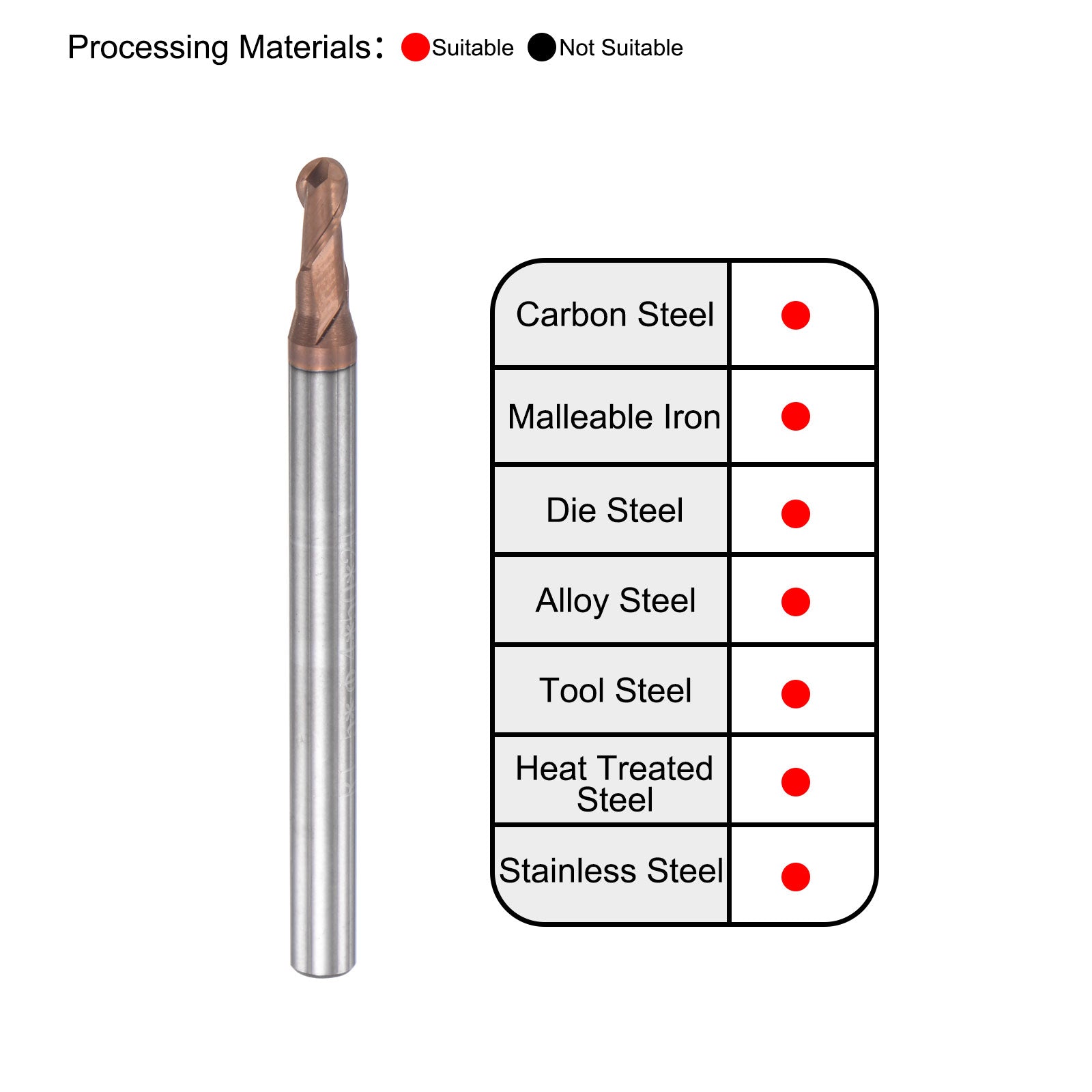 Suitable for milling and cutting of carbon steel, malleable cast iron, alloy steel, stainless steel, die steel, tool steel, heat treated steel etc. For slot and hole machining. Use on CNC machining centers, engraving machines and other high-speed CNC machine tools.