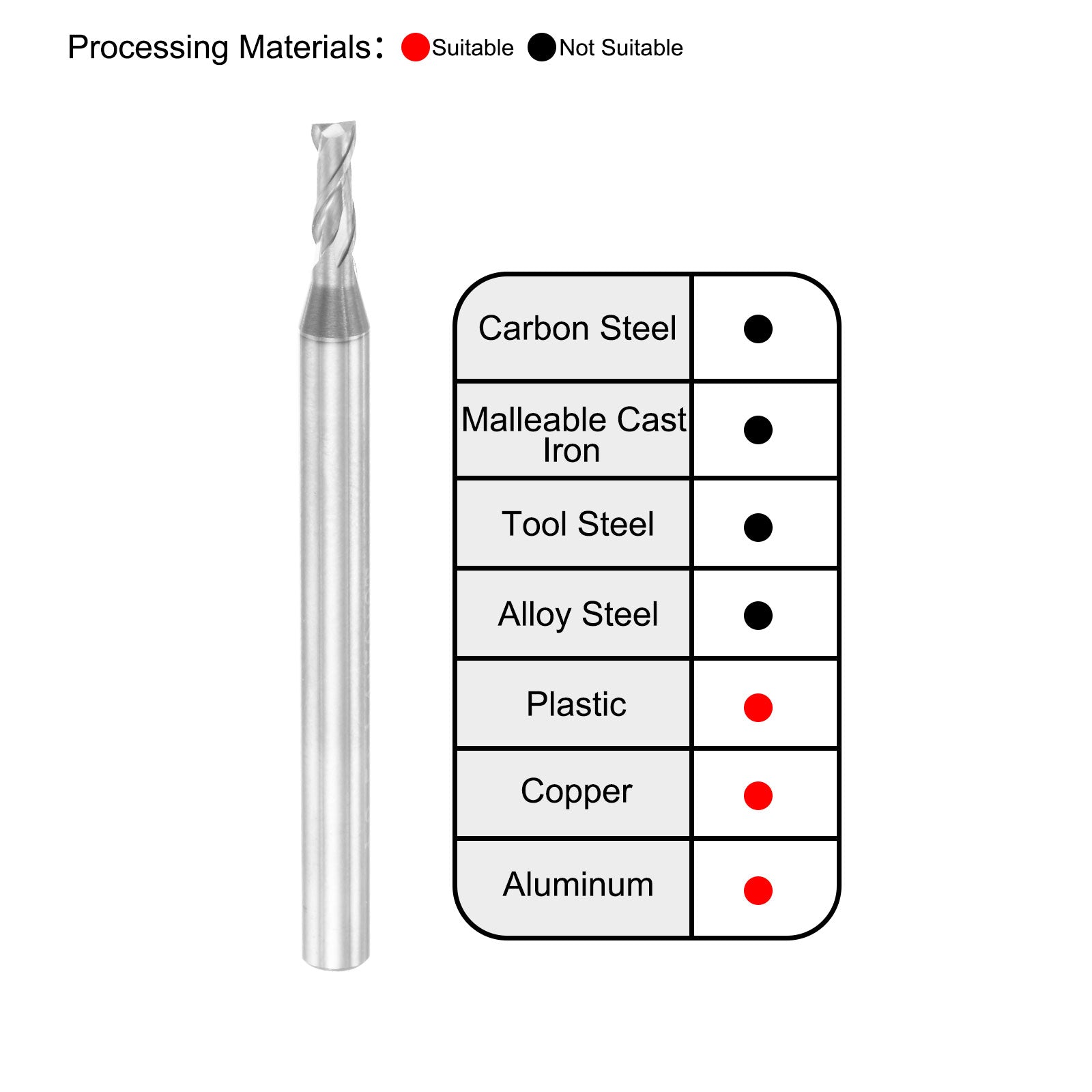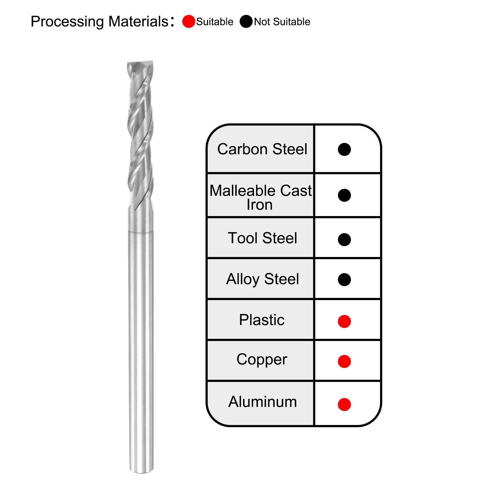 Suitable for cutting aluminum, copper, plastic, etc.. For shallow groove machining, side milling and finishing. Use on CNC machining centers, engraving machines and other high-speed CNC machine tools.