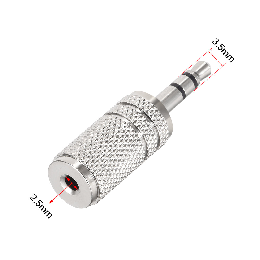 Adapts a single 3.5mm Male to 2.5mm Female.