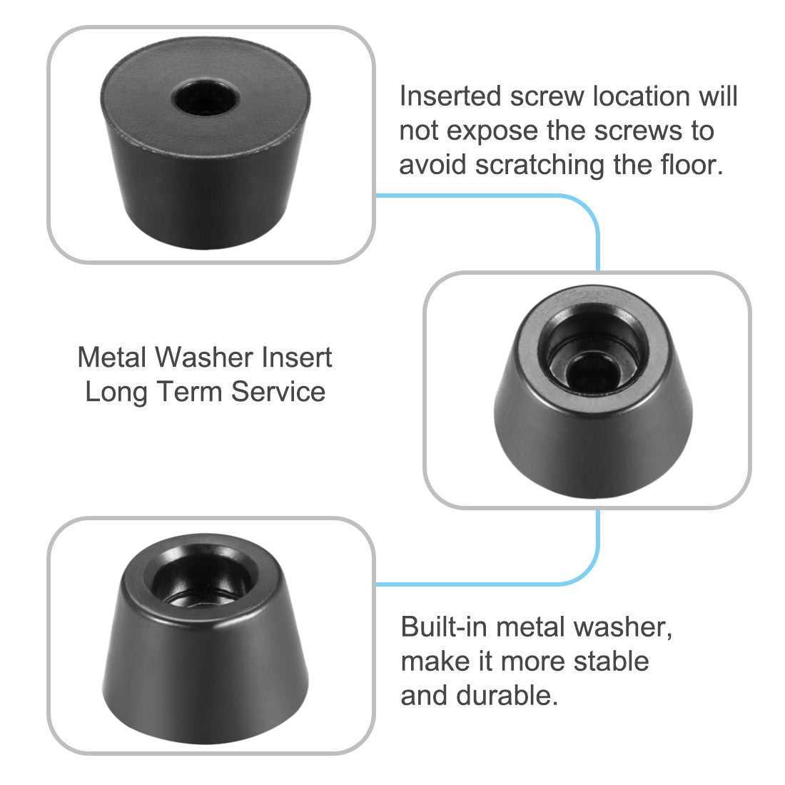 Features: 1. The rubber feet bumper with a metal washer, more durable and extend the service life. 2. The tapered rubber feet have a through-hole and a recess for mounting with screws(screws not included). 3. The rubber feet bumper with high elasticity, ageing stable, flame retarded, corrosion resistant and antistatic. 4. The rubber feet can protect your beautiful hardwood, ceramic tile and linoleum floors from scratches and save your furniture feet, also can keep your furniture from moving or sliding around. 5. The rubber feet bumpers are used for the cutting board, furniture, instruments, display shelf, machinery equipment, experimental equipment, distribution box, guitar bass amplifier and mechanical equipment, etc. Specifications: Height: Top Diameter: Bottom Diameter: Top Hole Diameter: Bottom Hole Diameter: Package Content: 50(+/-2%)pcs x Rubber Feet Bumper Notes: 1. Variability of 1-2mm is possible due to the measurement process. 2. Due to the light and screen setting difference, the color of the item may be slightly different from the pictures. 3. Please check your furniture leg dimension to fit the furniture feet cover before buying this item. 4. If mind the smell, you can leave them in an air circulate place until the smell is over before using it.