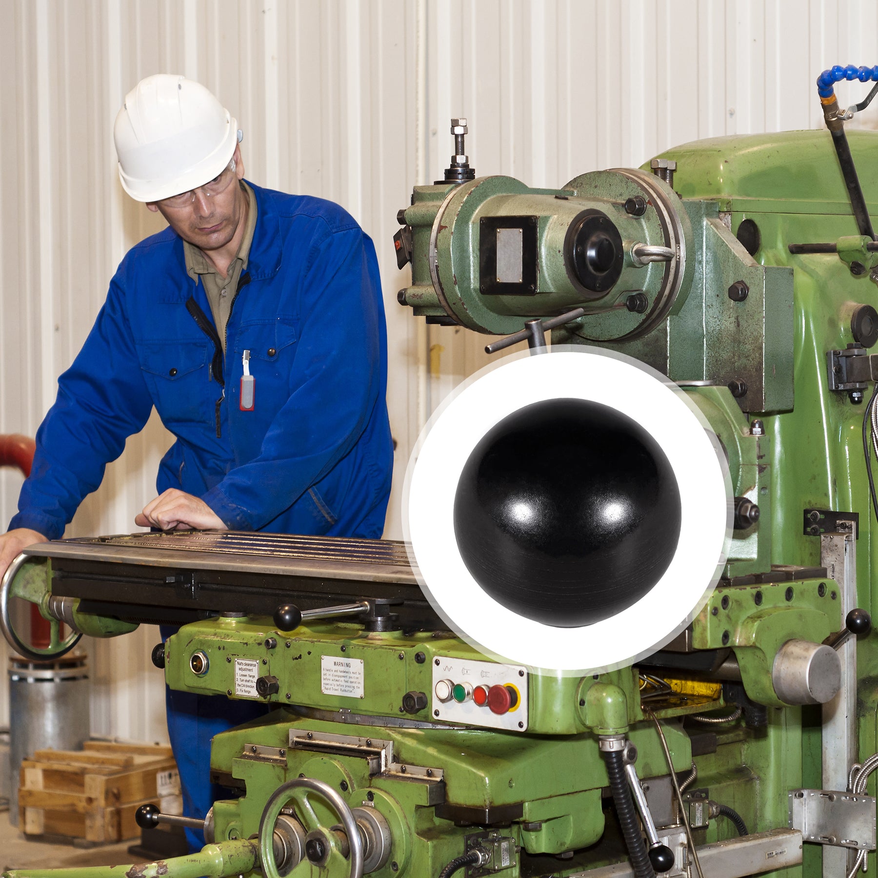 Ultra-solid ball knob with a Shiny finish, suitable for general application,such as lawn mowers, exercise equipment, machinery, valves, spigots, etc.