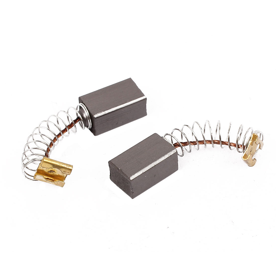1. Electric replacement motor carbon brushes. 2. Carbon motor brushes are one of the most commonly replaced power tool components. 3. Carbon Brushes with wire leads and brush springs attached. Worn brushes are often the cause of a poorly running motor.