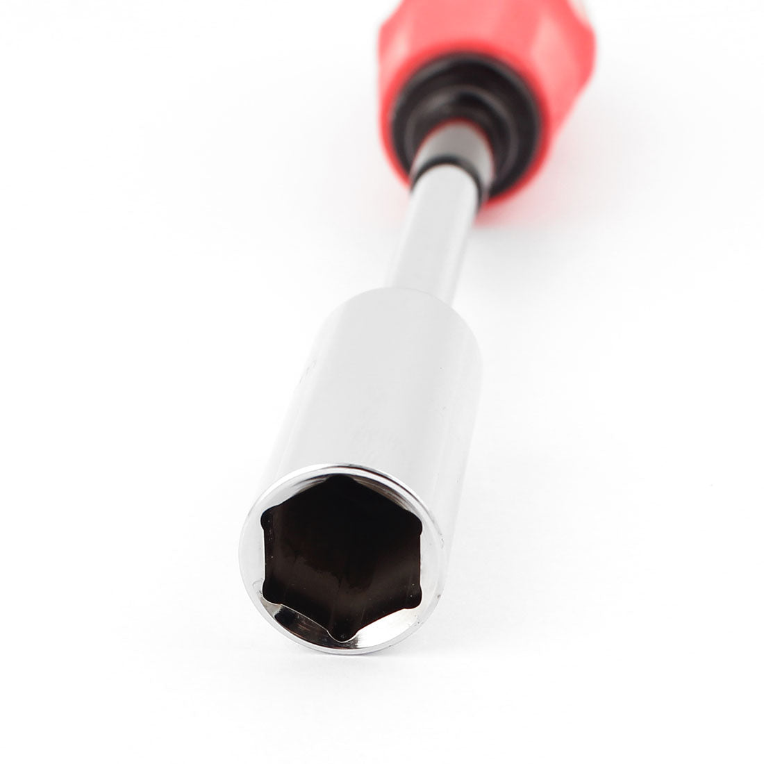 13mm Hex socket size, 65mm long shaft, 245mm total Length. This Hex Socket Wrench is made from metal and plastic material. Its handle is comfortable to hold. The Hex Socket Wrench features positioning nut, adjusting screw rod, lock nut.
