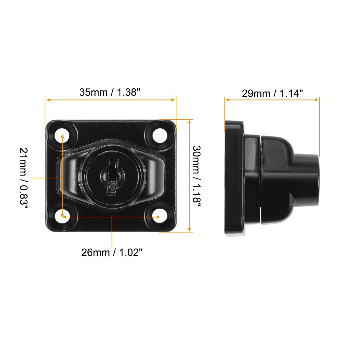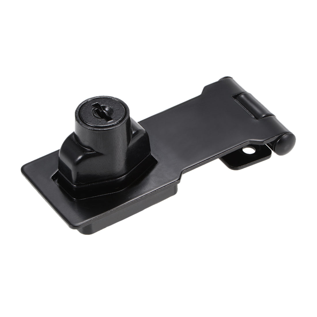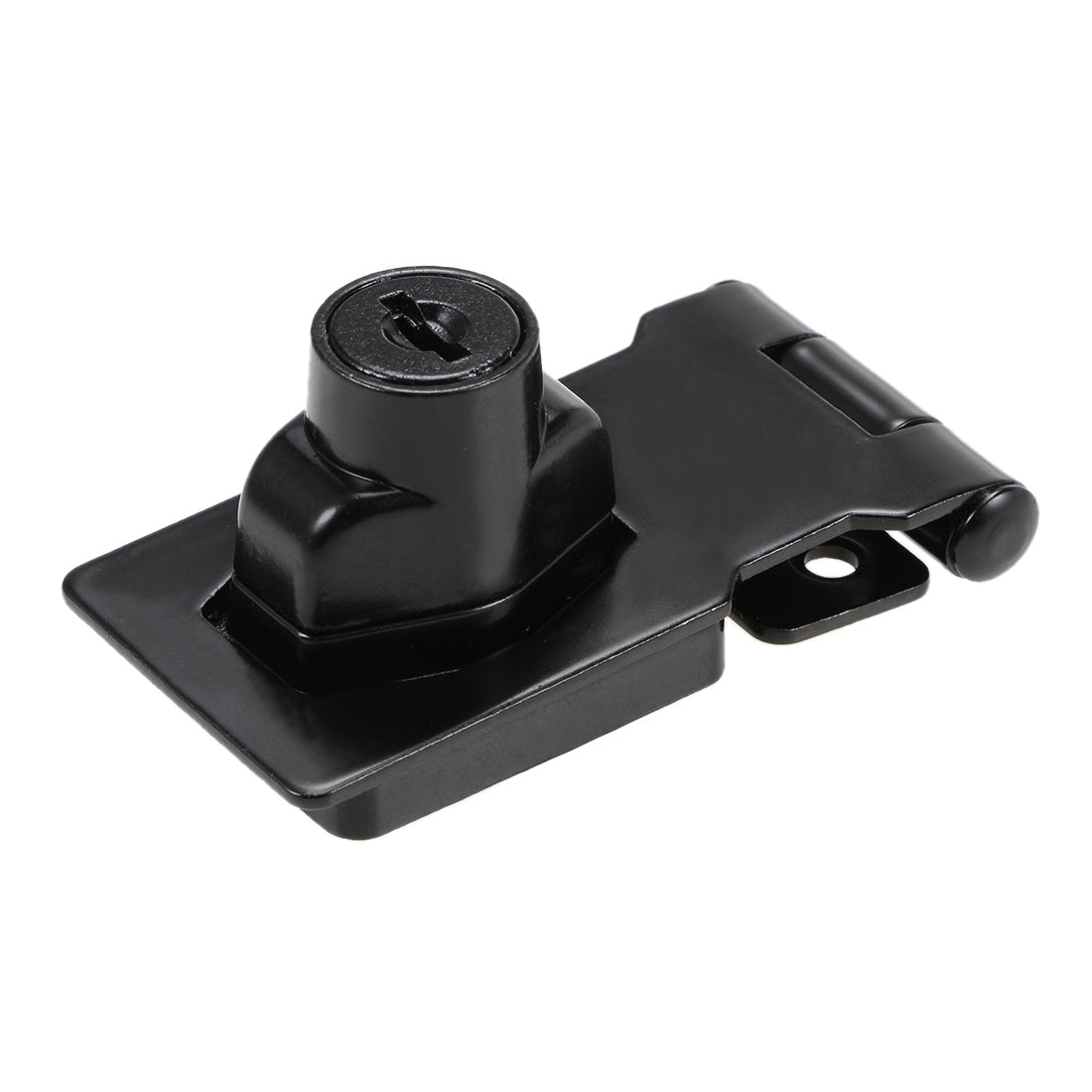 Descriptions: 1. 3-inch Hasp length when the mounting plate is mounted on the draw or cabinet. 2. Zinc alloy will resist wear and rust over time. 3. It is keyed different, each key will only fit one lock. 4. Turn the knob or use the key to lock, and open with a key. 5. Perfect for cabinets, kitchen furniture, drawer, door, tool boxes, lockers, etc. 6. Mounting screws are included.