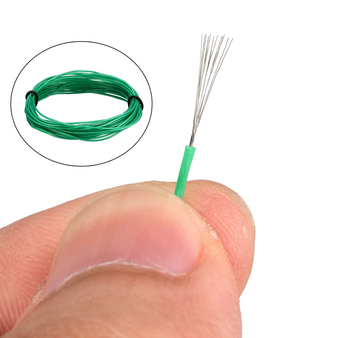 Specifications : *Wire Color : Green *Wire Gauge : 30AWG *Copper Core Quantity : 1 Strand *Material : Silicone Rubber, Tin Plated Copper *Rated Voltage : 600V *Rated Temperature : 200 Degree *Conductor Section Area : 0.16mm2 *Conductor Specification : 11/0.08mm *Wire Outer Diameter : 0.8 (+/- 0.2)mm *Wire Length : 5M / 16.4ft