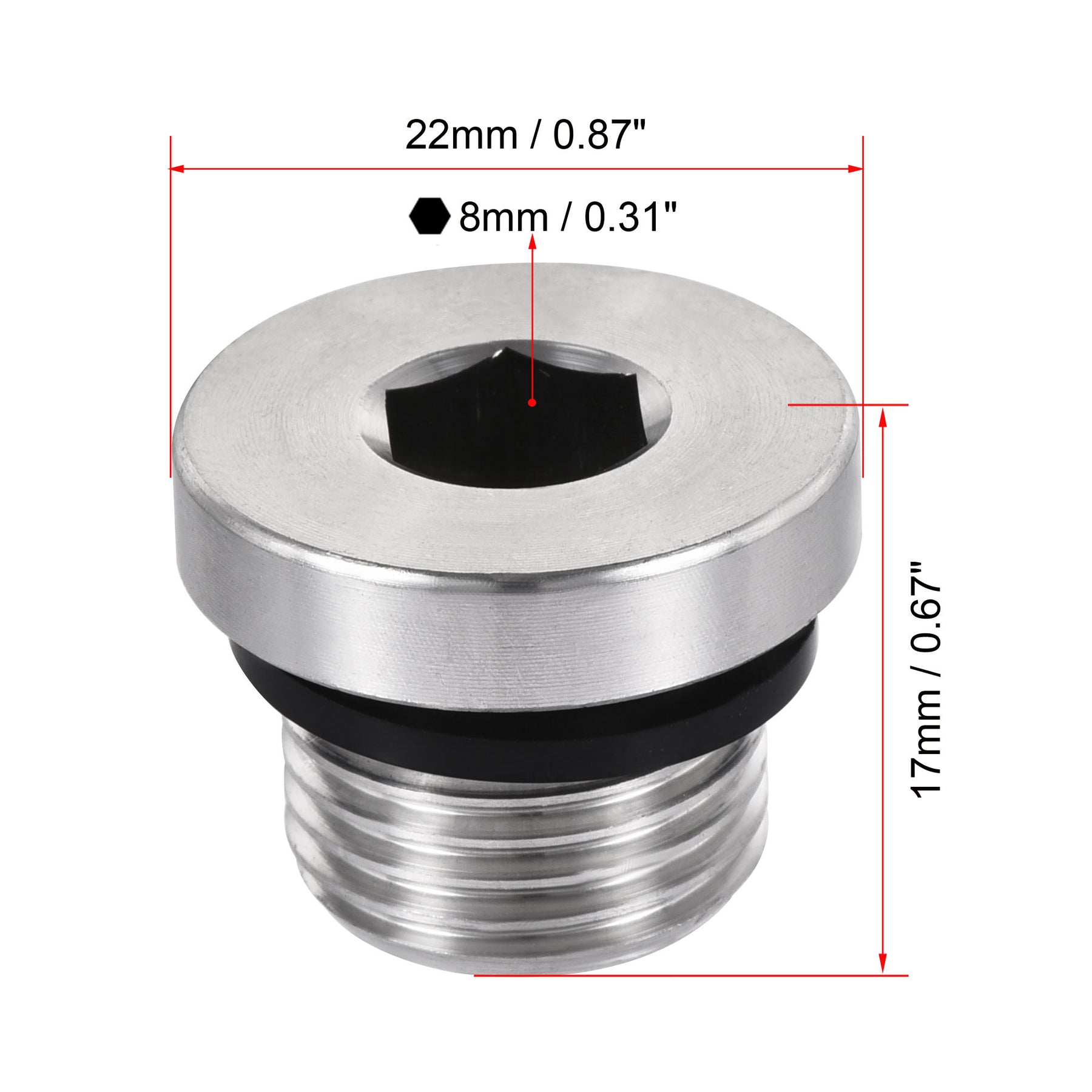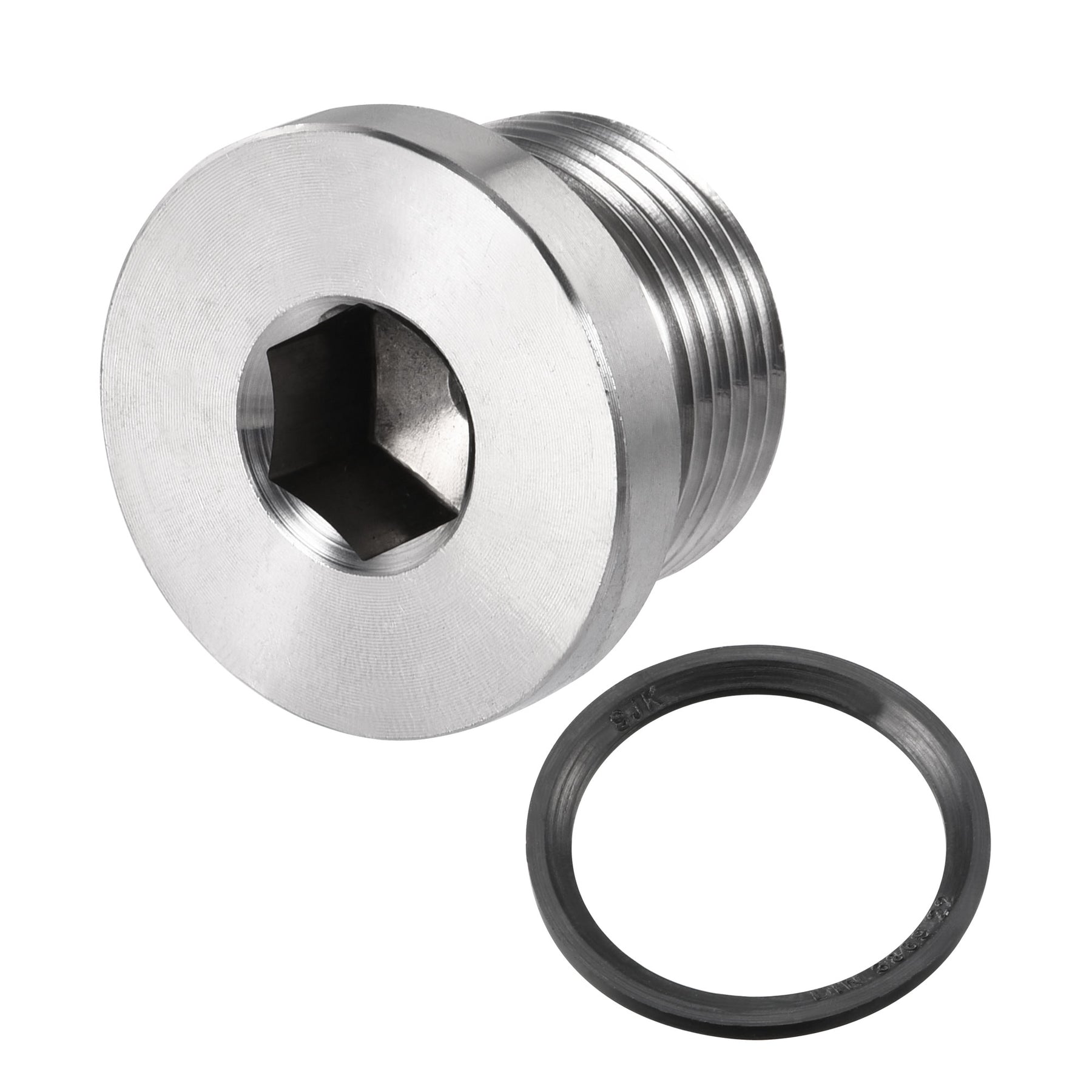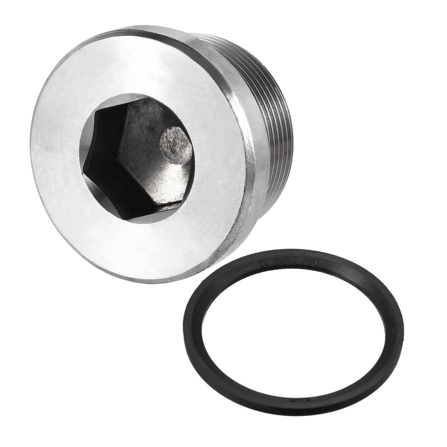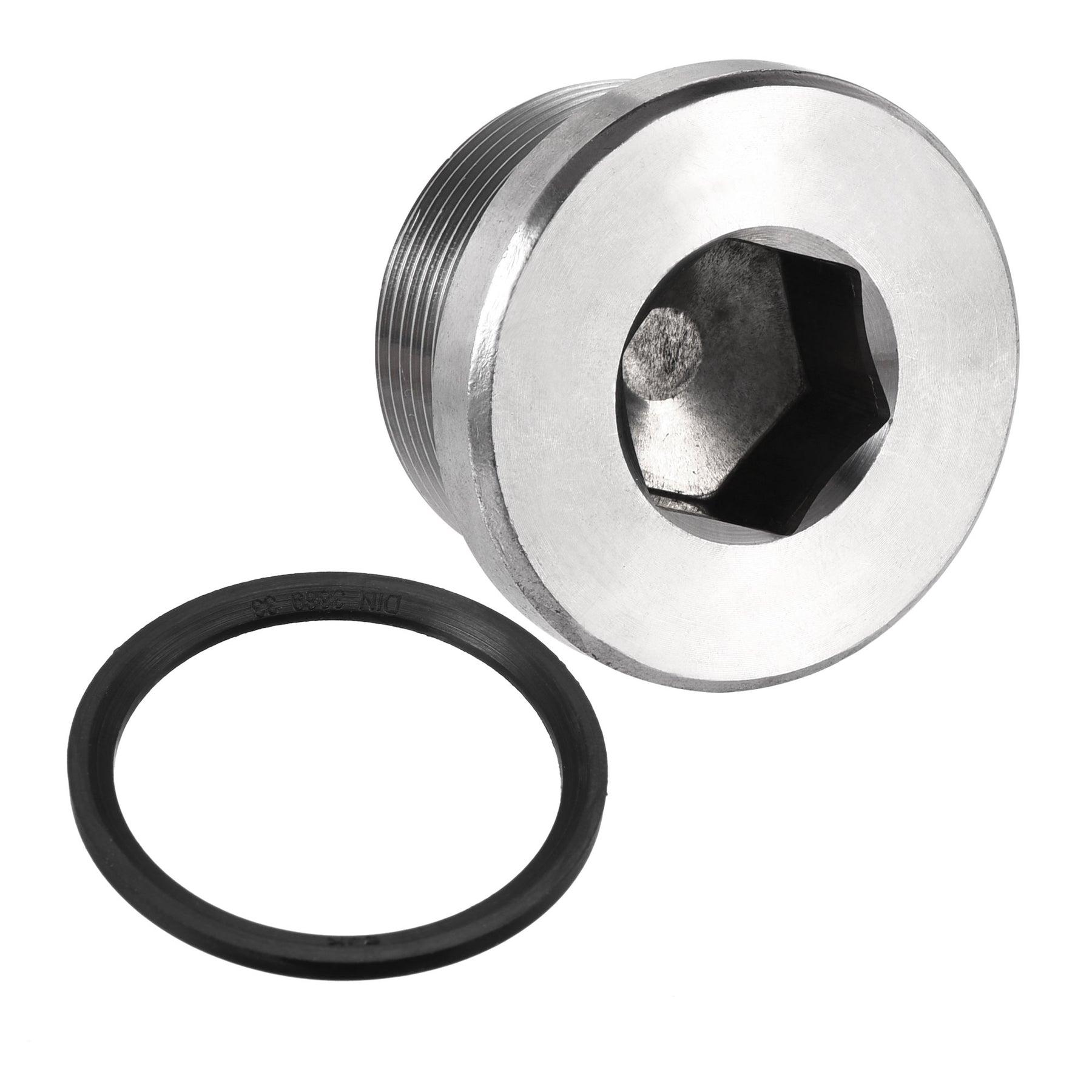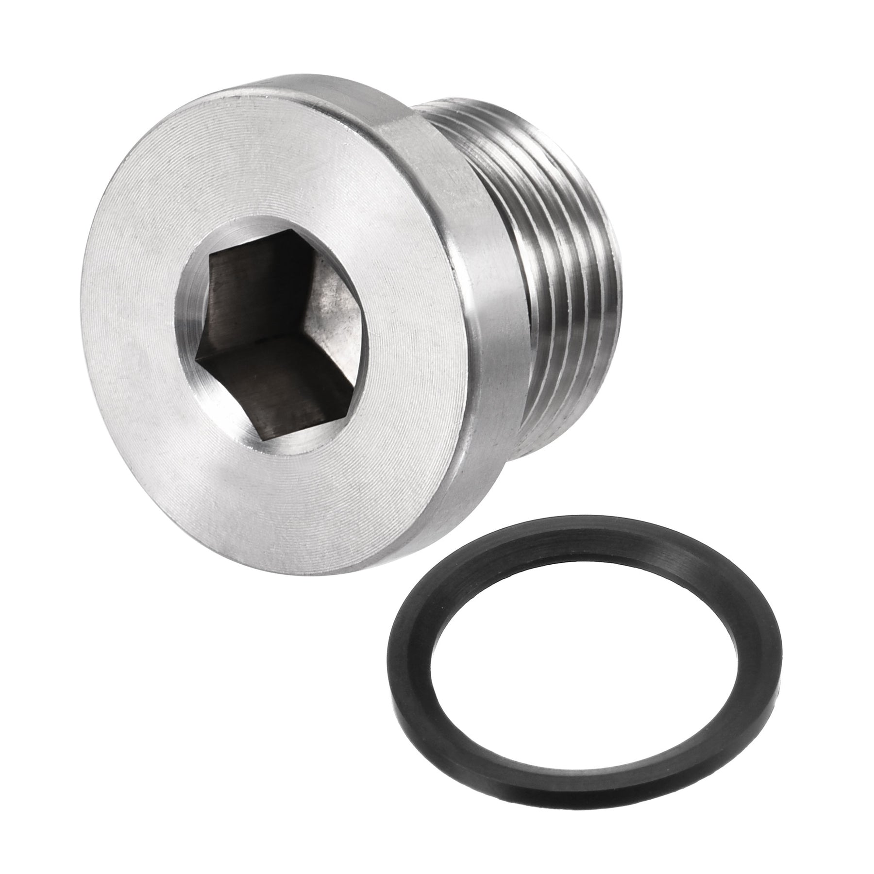Features: Made of 304 stainless steel, corrosion and rust resistant, durable for long time use. Comes with a sealing ring for tight sealing. The internal hex head increases leverage and is easily controlled by a hex wrench. Used for closing and terminating the end of the pipe in industry, factory, outdoor garden.