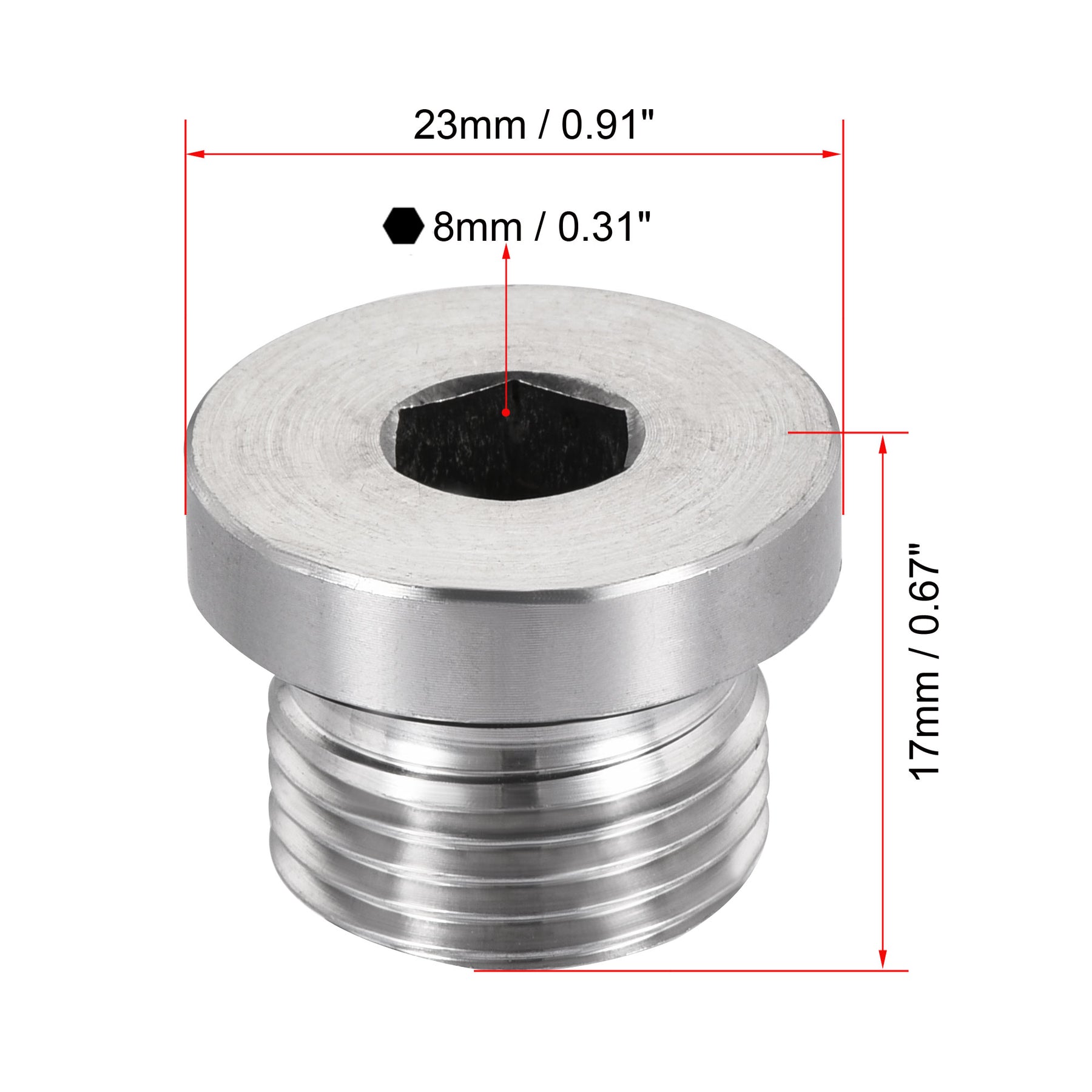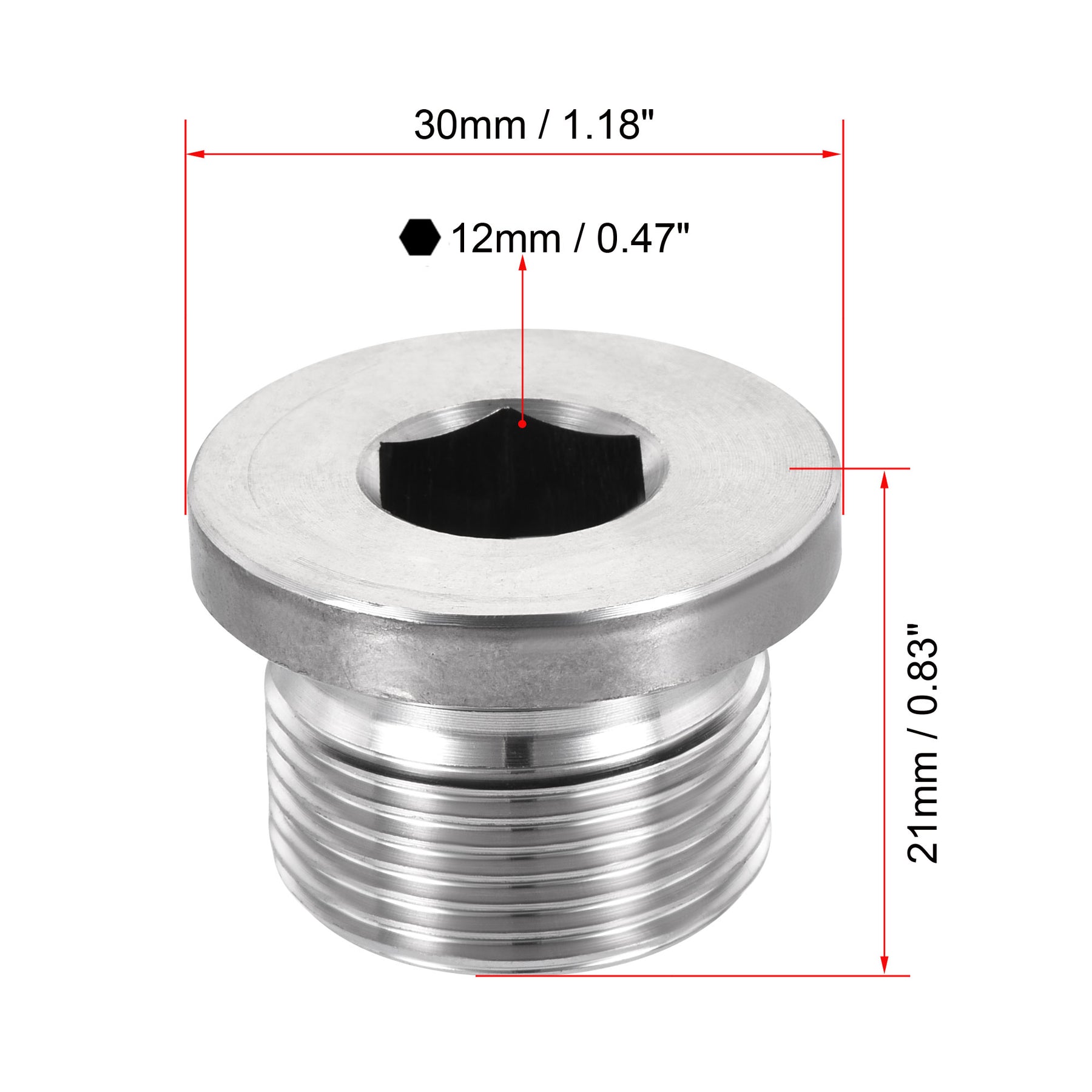 Specifications: Material: 304 Stainless Steel Color: Silver Tone Male Thread Size: M24x1.5mm Male Thread Length: 12mm / 0.47" Total Size: 21 x 30mm / 0.83 x 1.18"(D*H); Inner Hex Diameter: 12mm / 0.47"