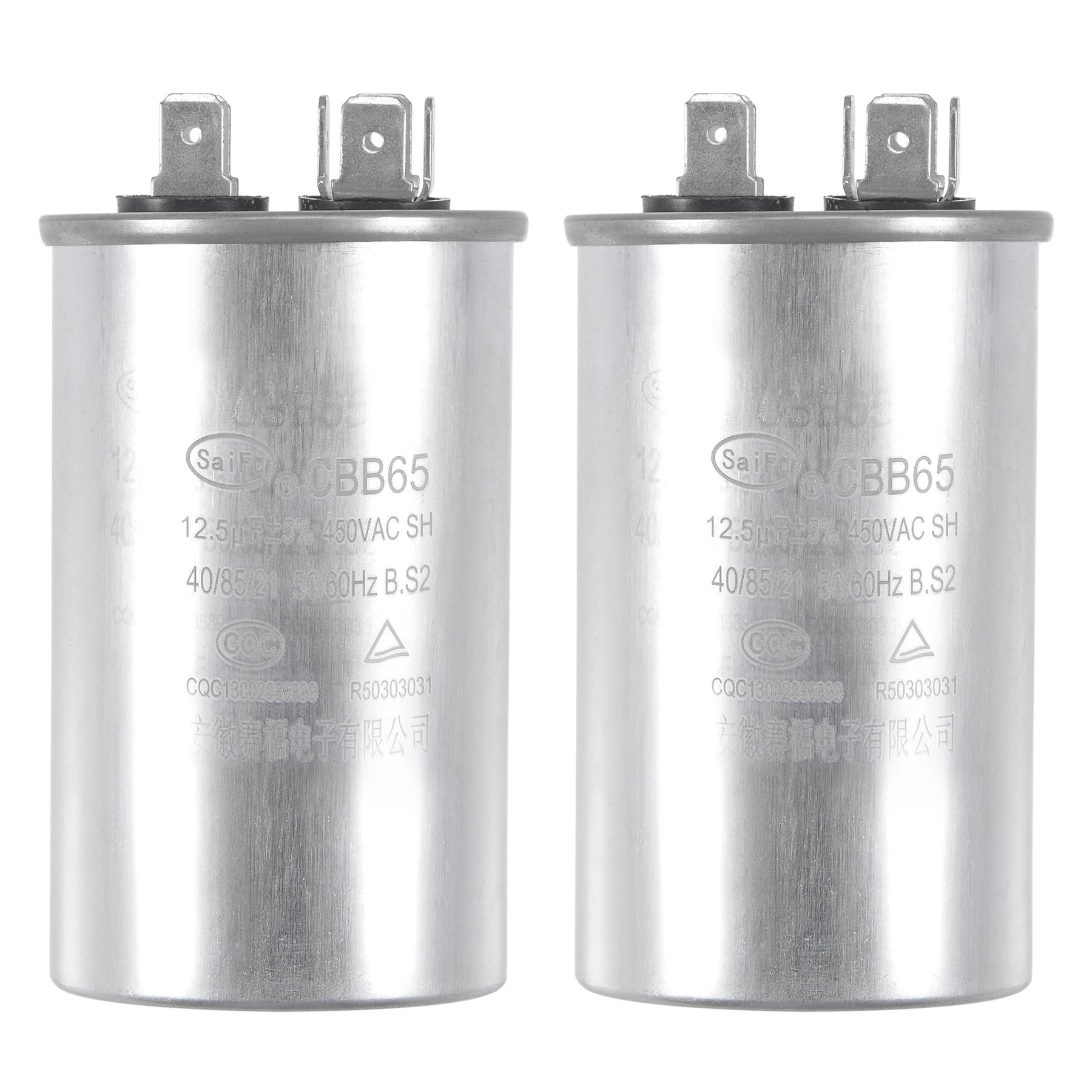 Specifications: Model: CBB65 Material: Metallized Polypropylene, Aluminum Case Lead End: 4+2 Terminal Rated Capacity: 12.5uF Tolerance: ±5% Rated Voltage: 450V AC Rated Frequency: 50/60Hz Climatic Category: 40/85/21 Body Size: 88x45mm / 3.5x1.8 inch (L*D) Package Includes: 2 x CBB65 Capacitor