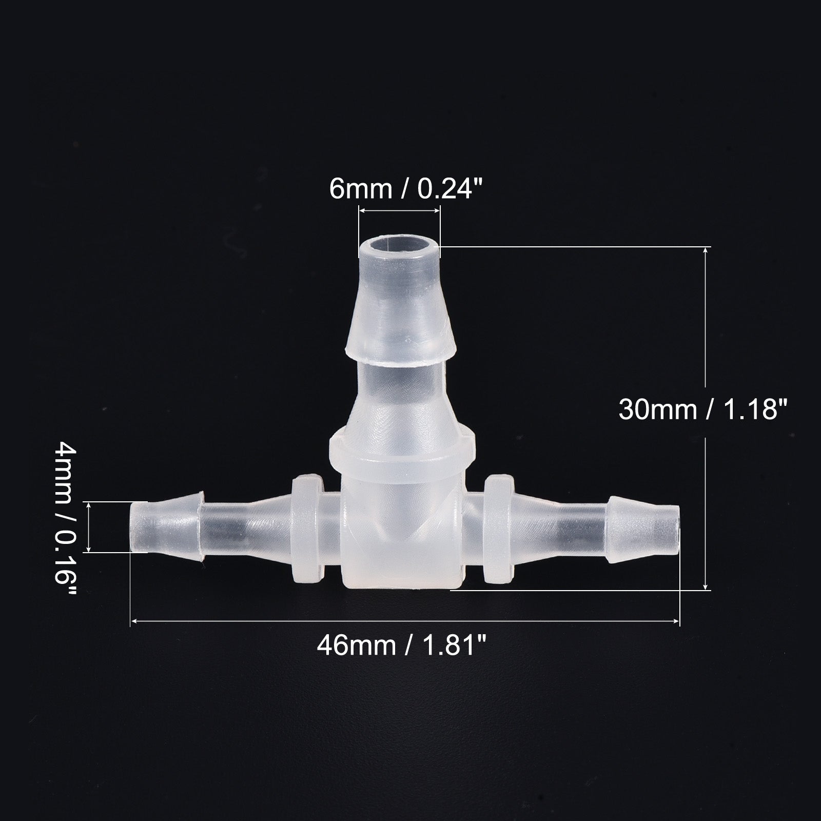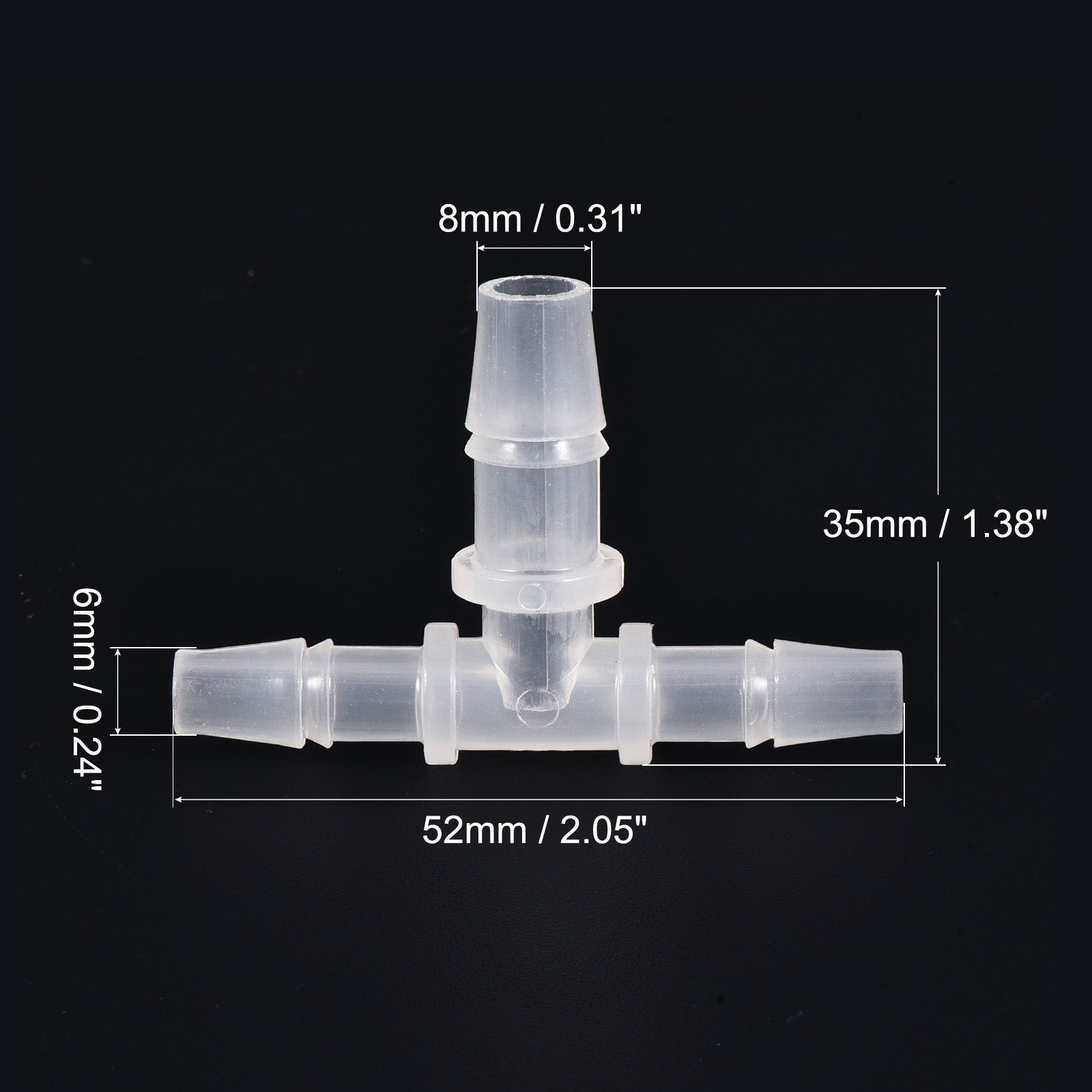 Color: Translucent; Material: PP; Type: Tee; Fit Hose Inner Dia: 14mm x 20mm x 14mm / 0.55 inch x 0.79 inch x 0.55 inch; Overall Size: 74mm x 53mm / 2.91 inch x 2.09 inch(L*W)