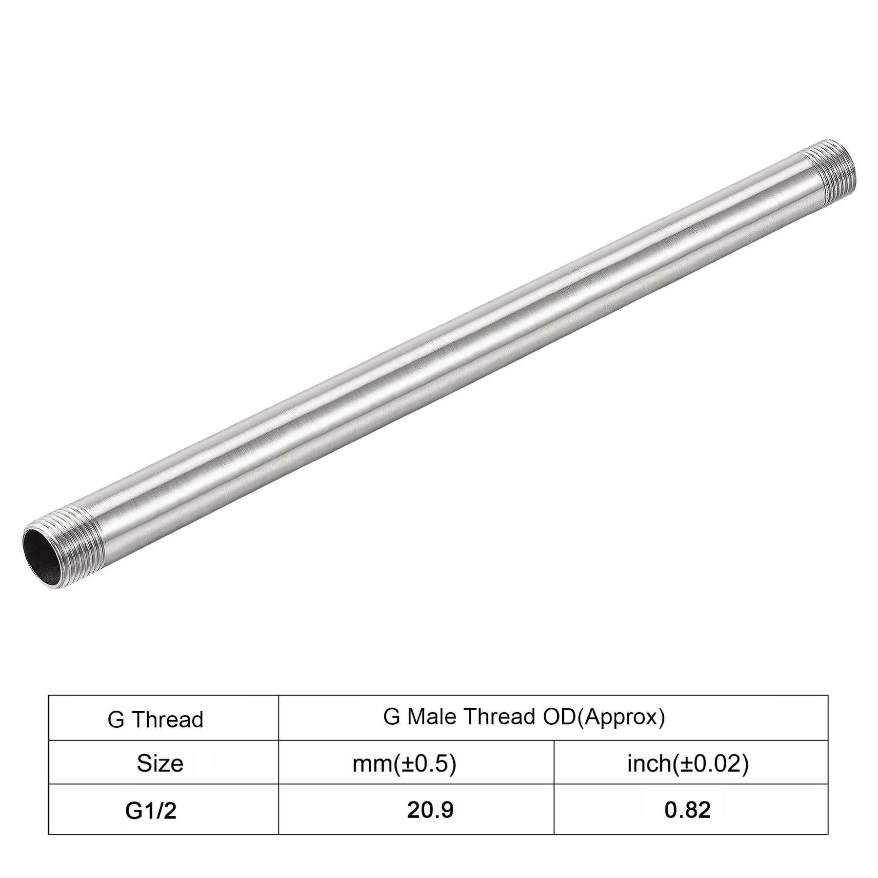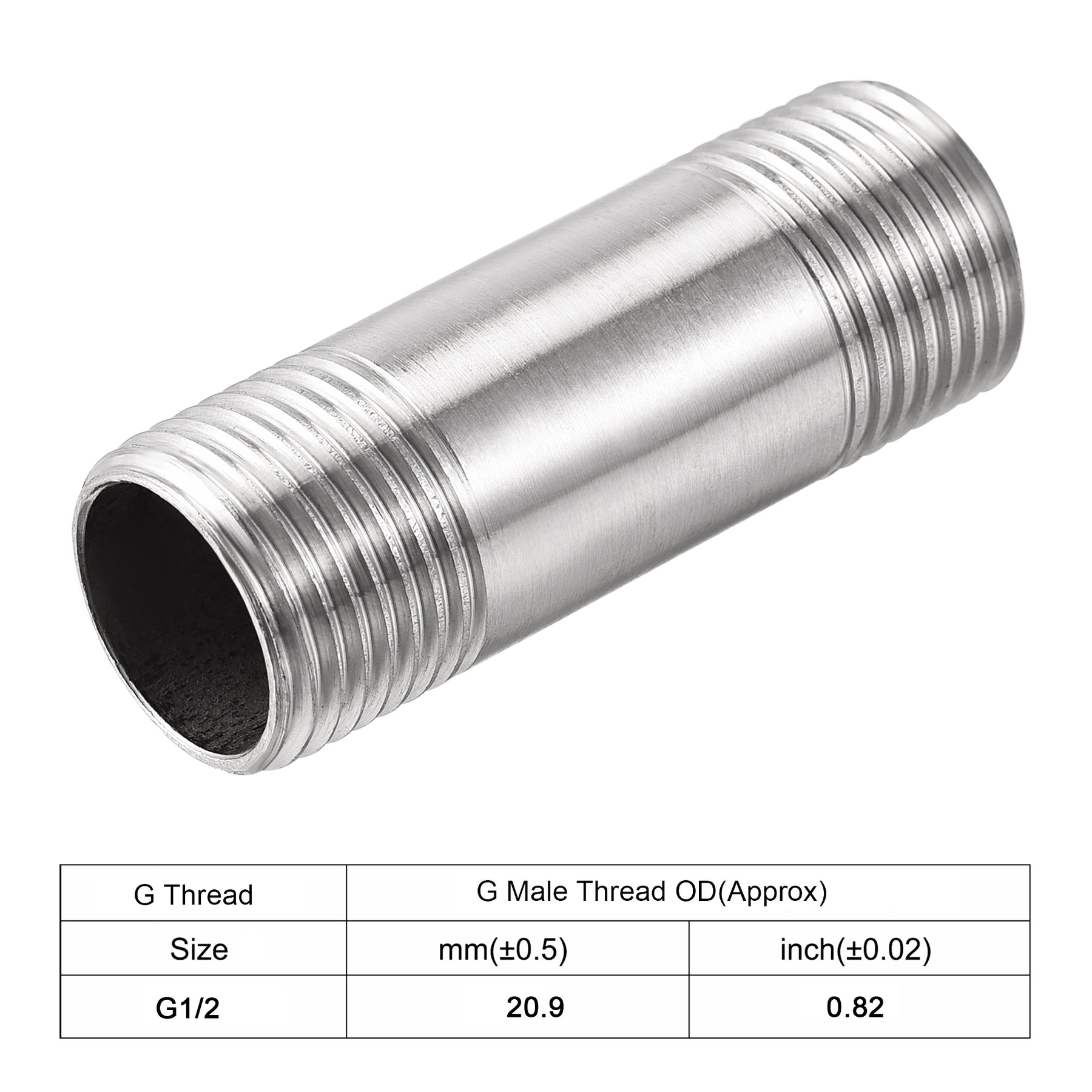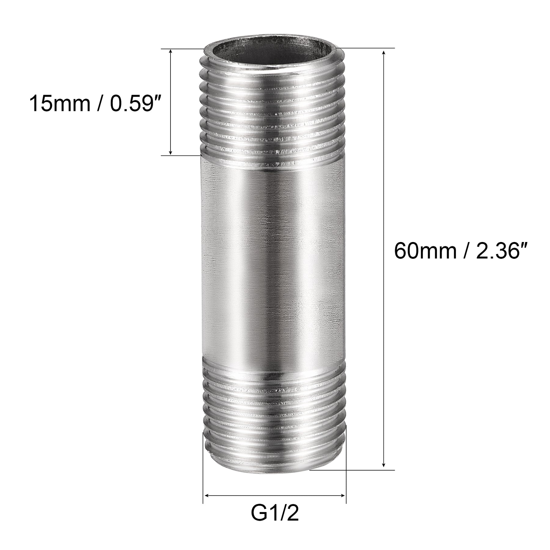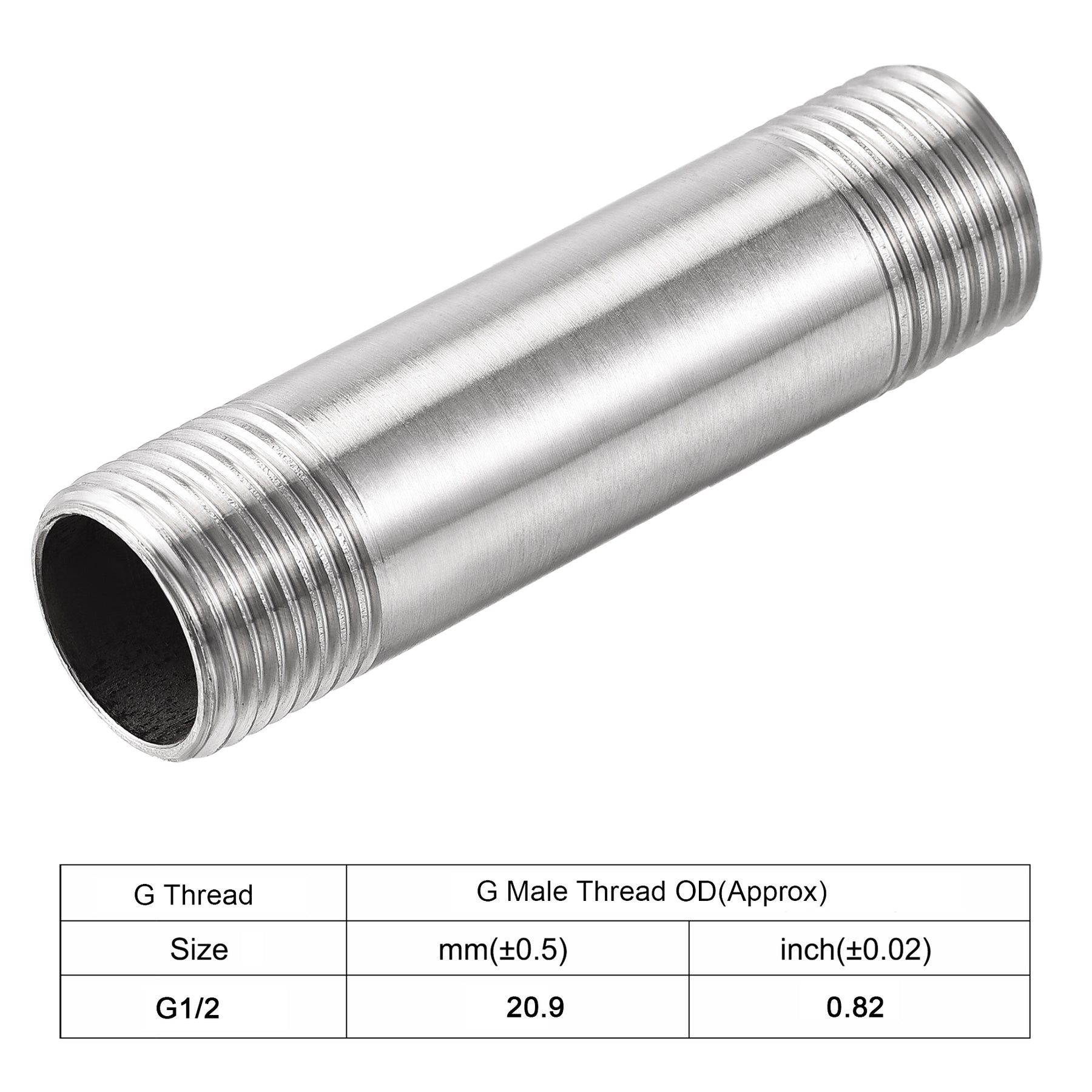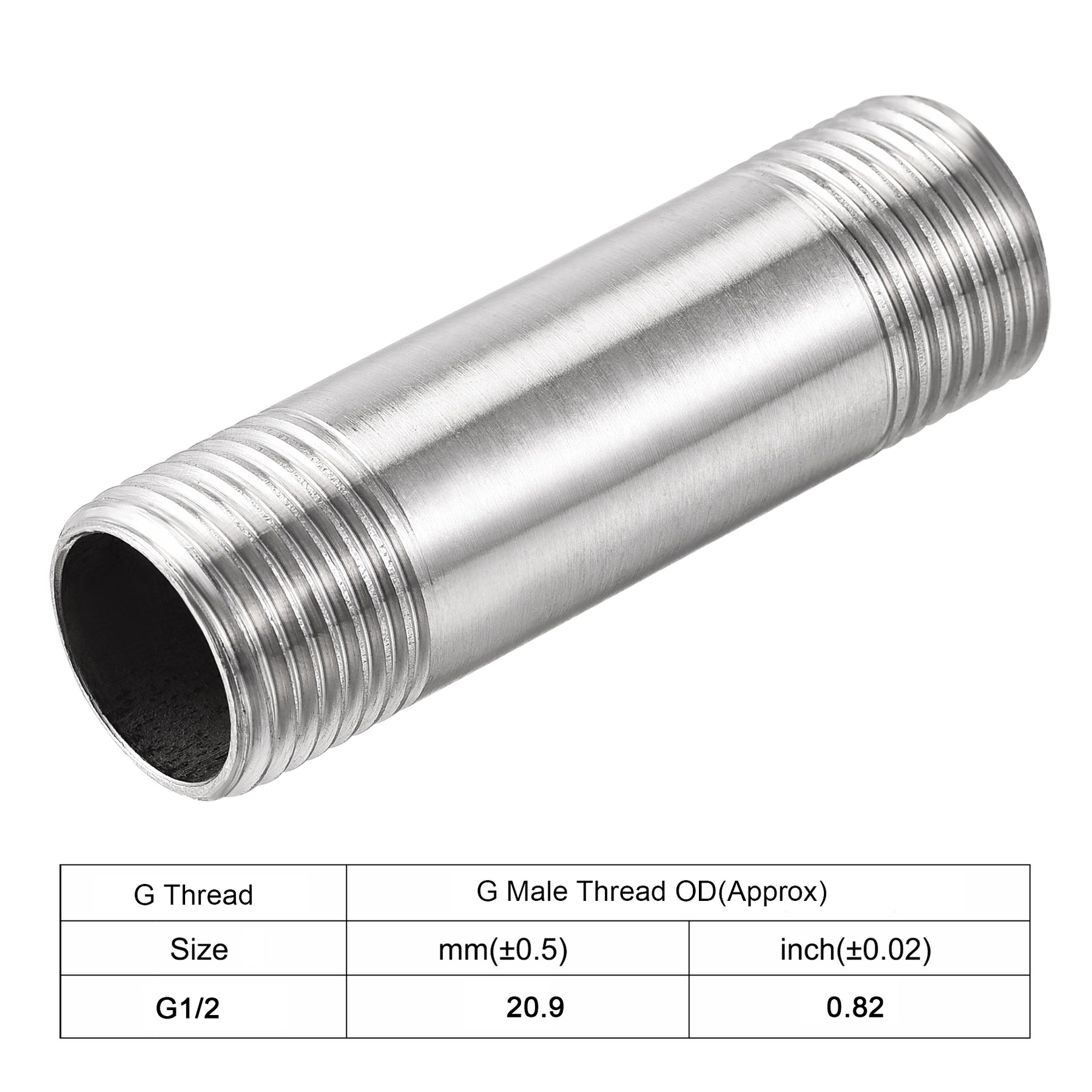 Specifications: Material: 304 Stainless Steel Male Thread Size: G1/2(Approx OD 20.9mm) Thread Length: 15mm / 0.59 inch Total Size: 60mm x 20mm / 2.36 inch x 0.79 inch(L*D)
