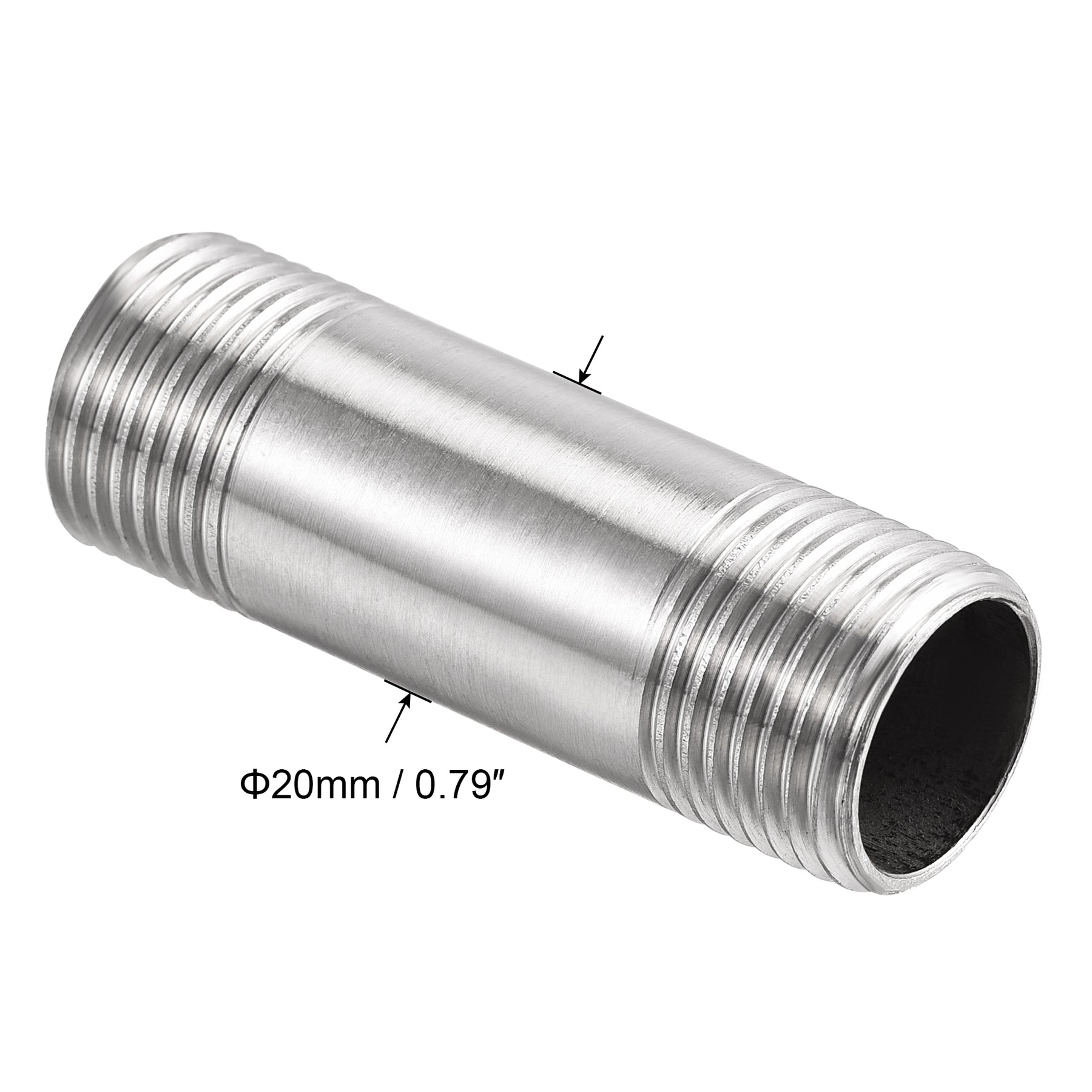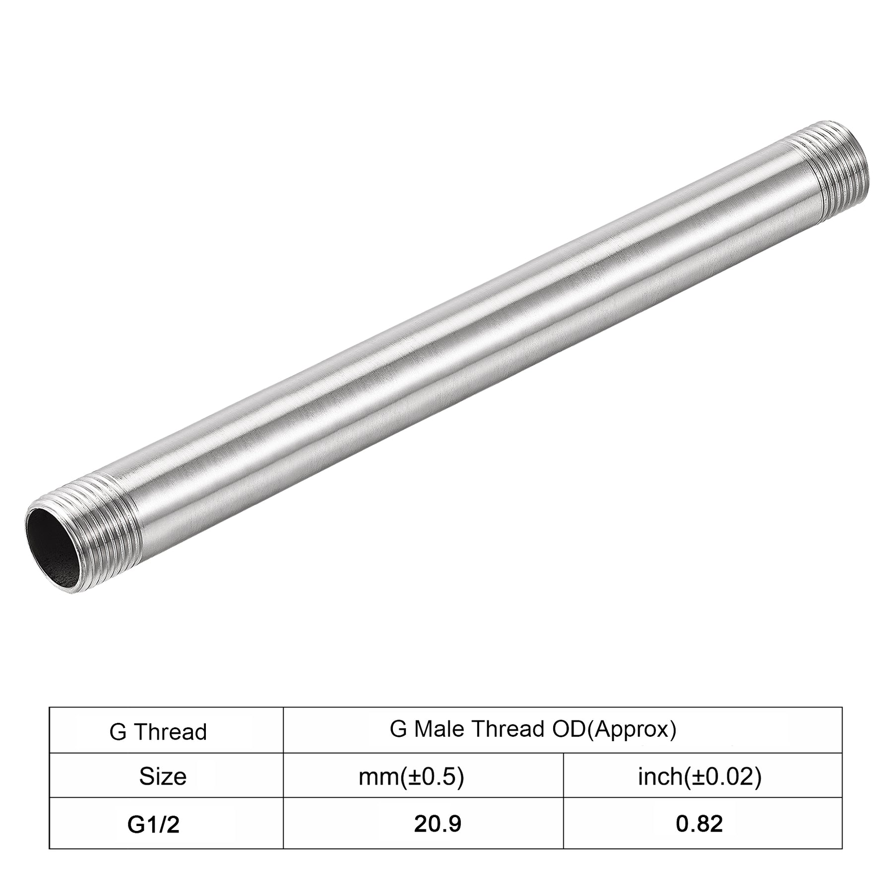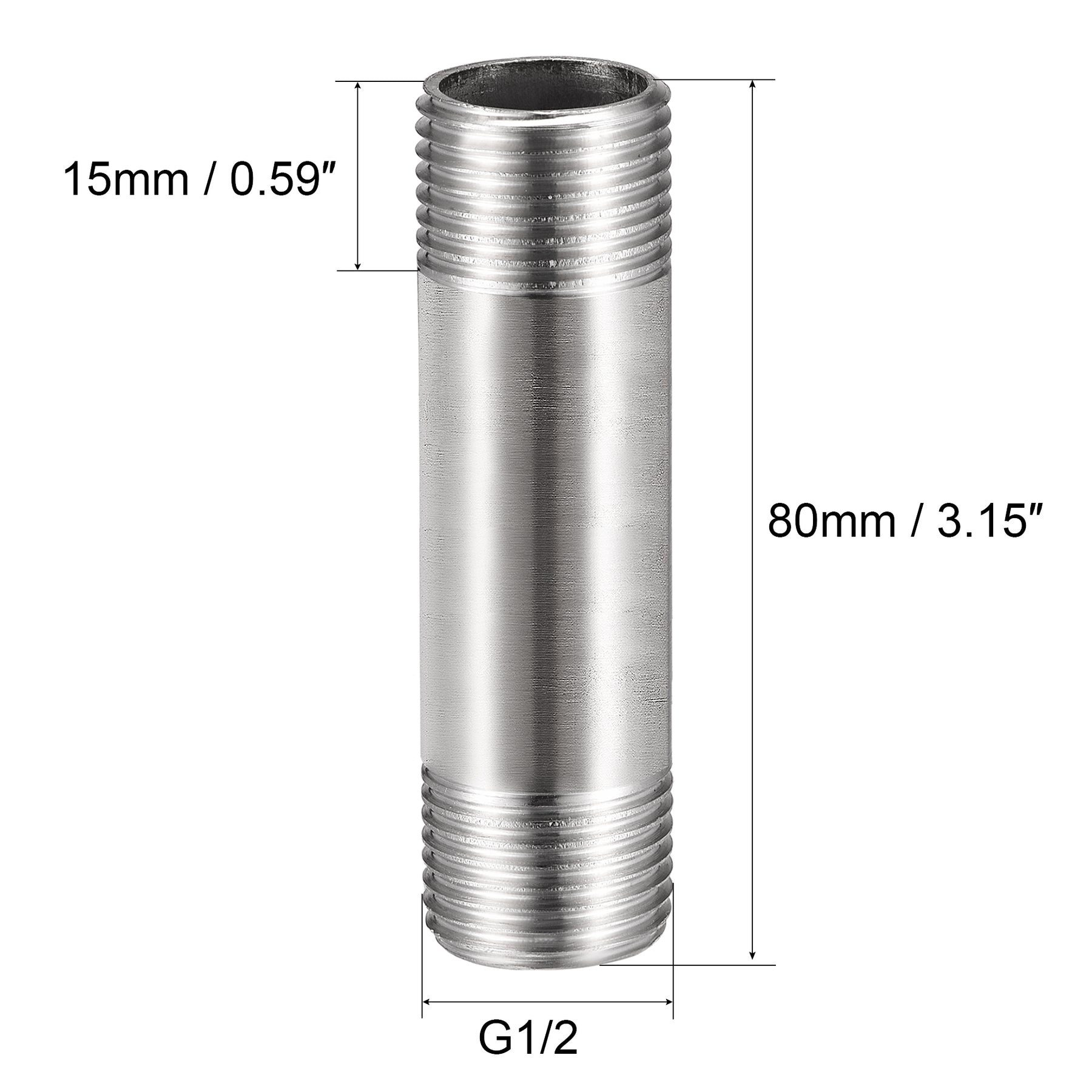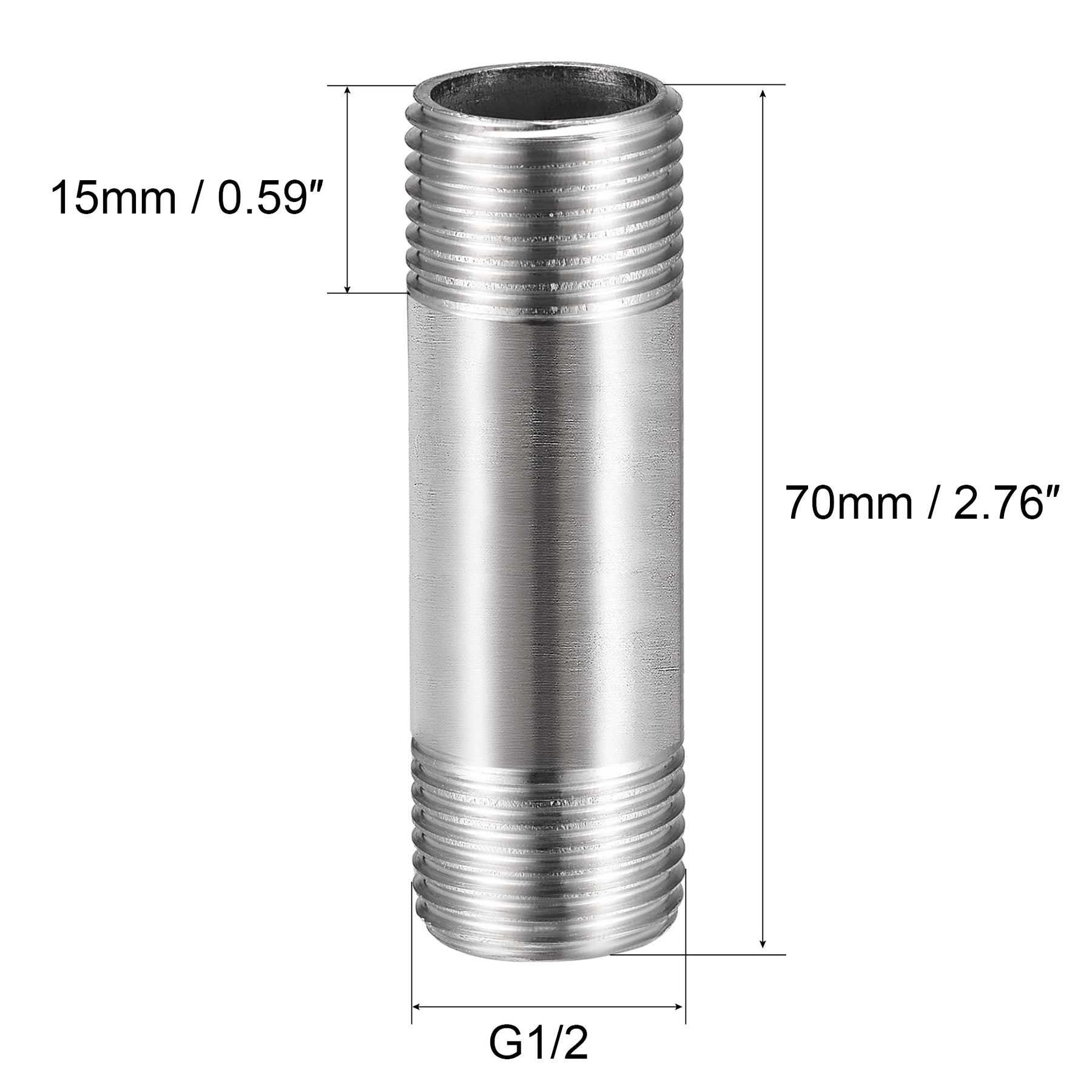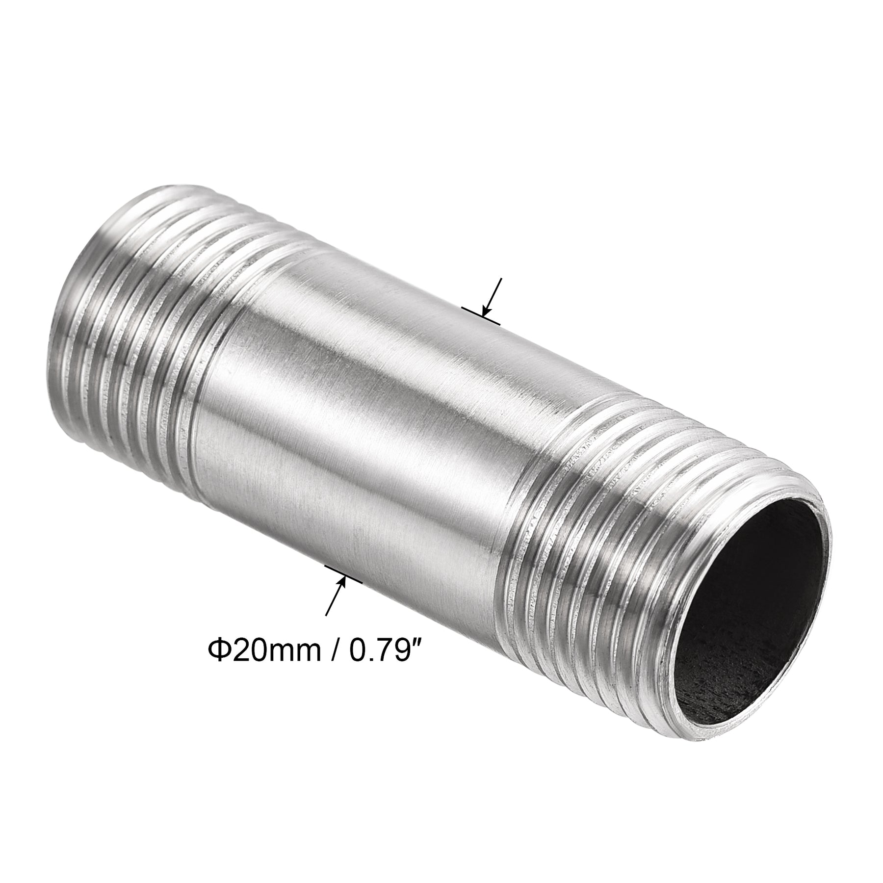 Specifications: Material: 304 Stainless Steel Male Thread Size: G1/2(Approx OD 20.9mm) Thread Length: 15mm / 0.59 inch Total Size: 60mm x 20mm / 2.36 inch x 0.79 inch(L*D)
