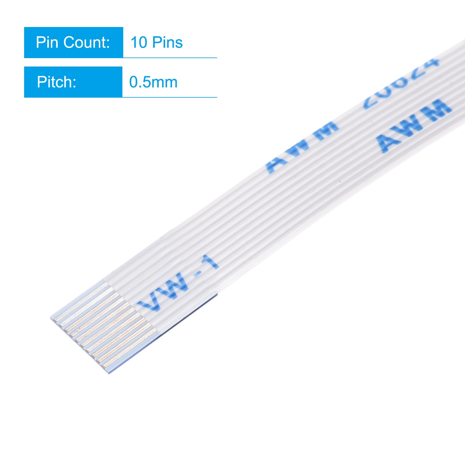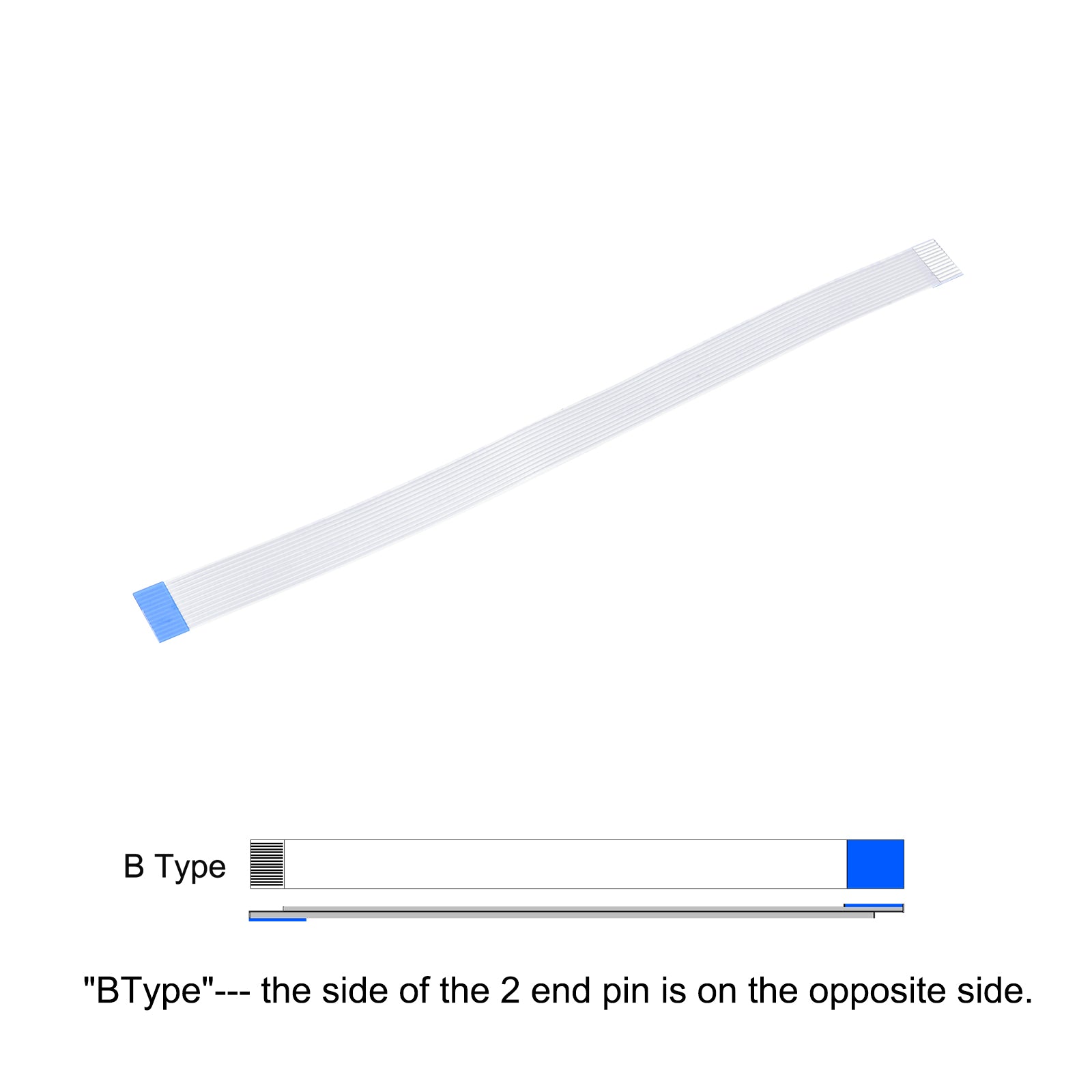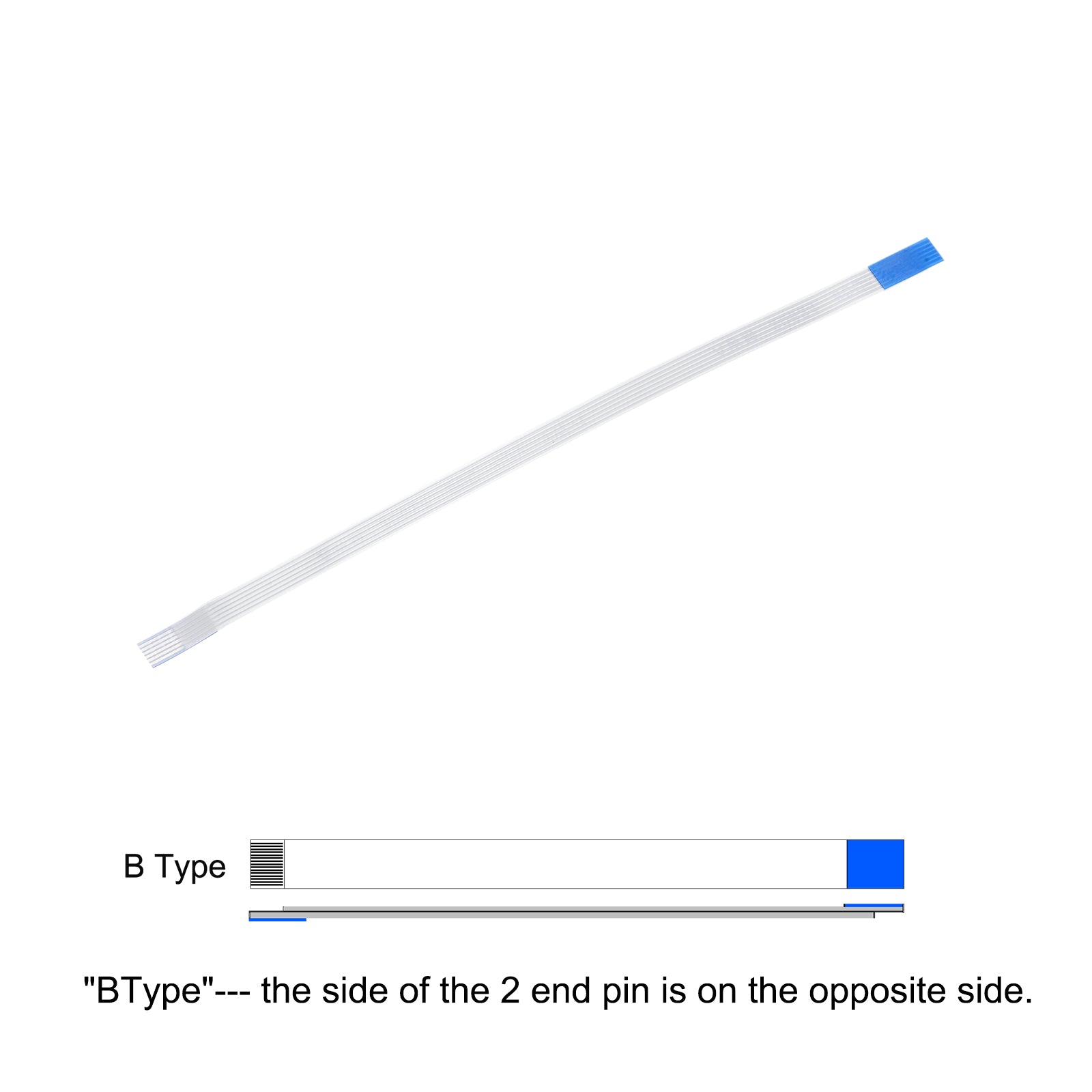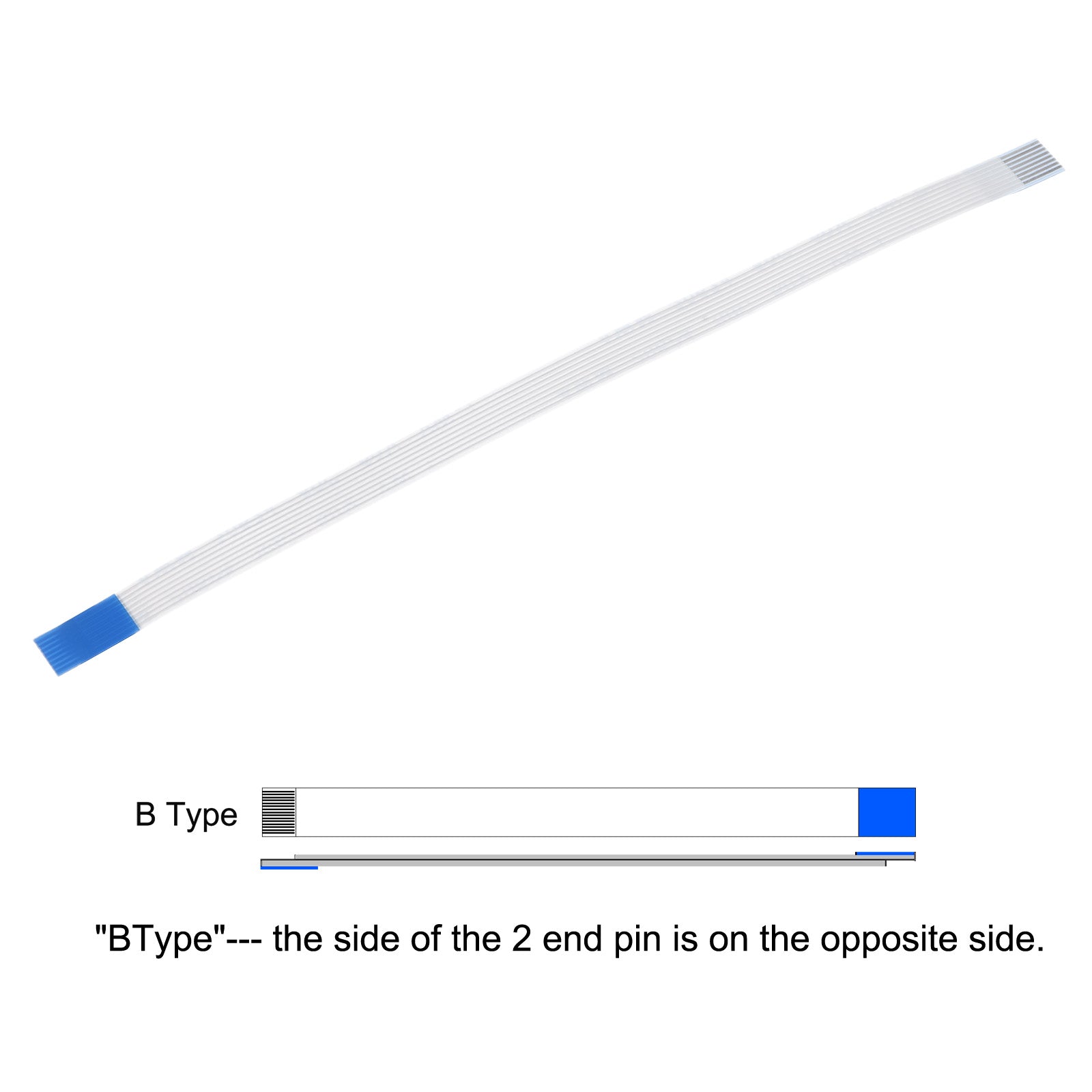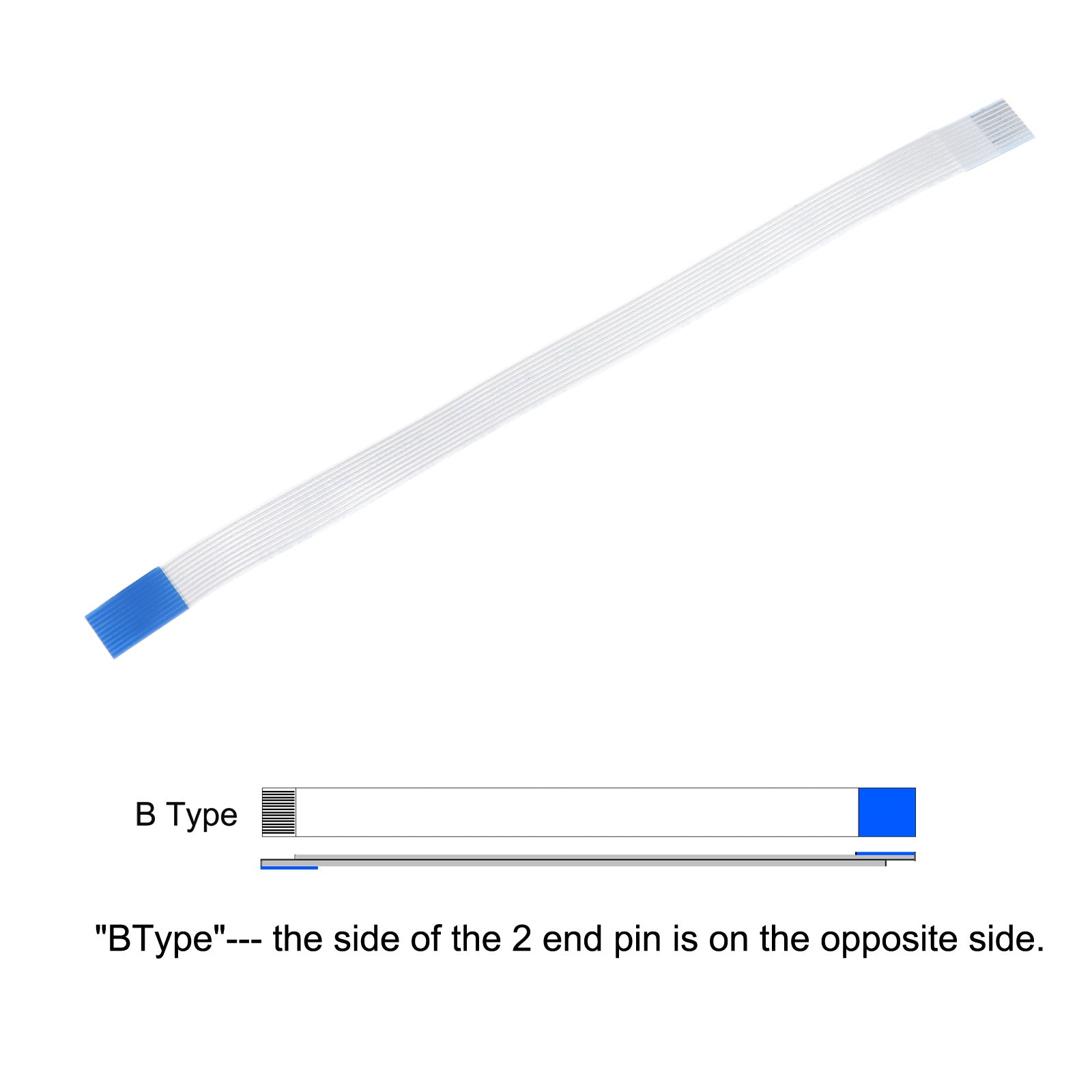 Cable: Pin on the Opposite Side (B Type); Pin Count: 8 Pins; Pitch: 0.5mm; Length*Width: 100mm x 4.5mm / 3.94" x 0.18"; In the package of: 10 x FFC Cable.