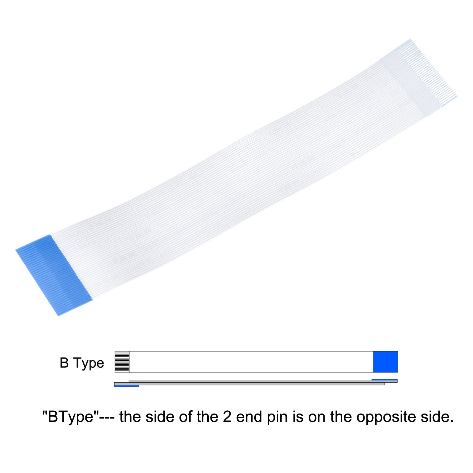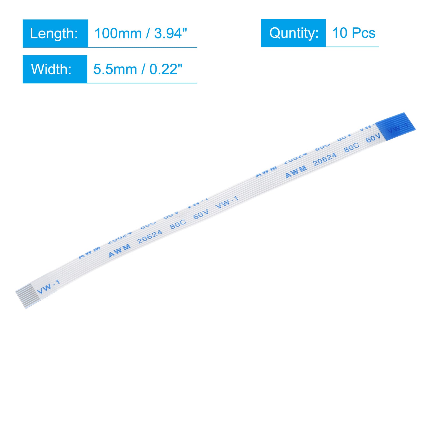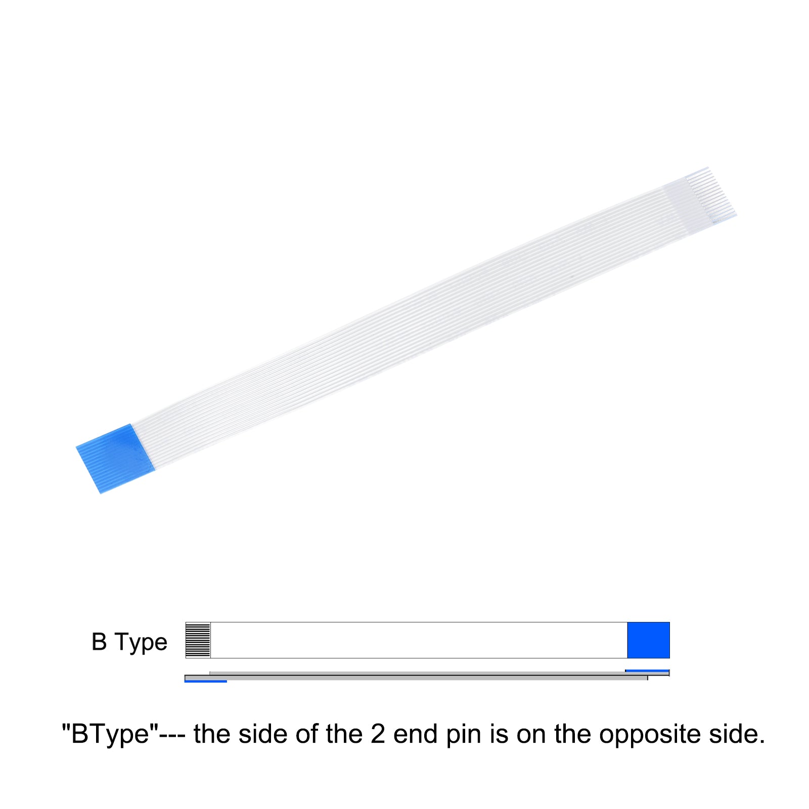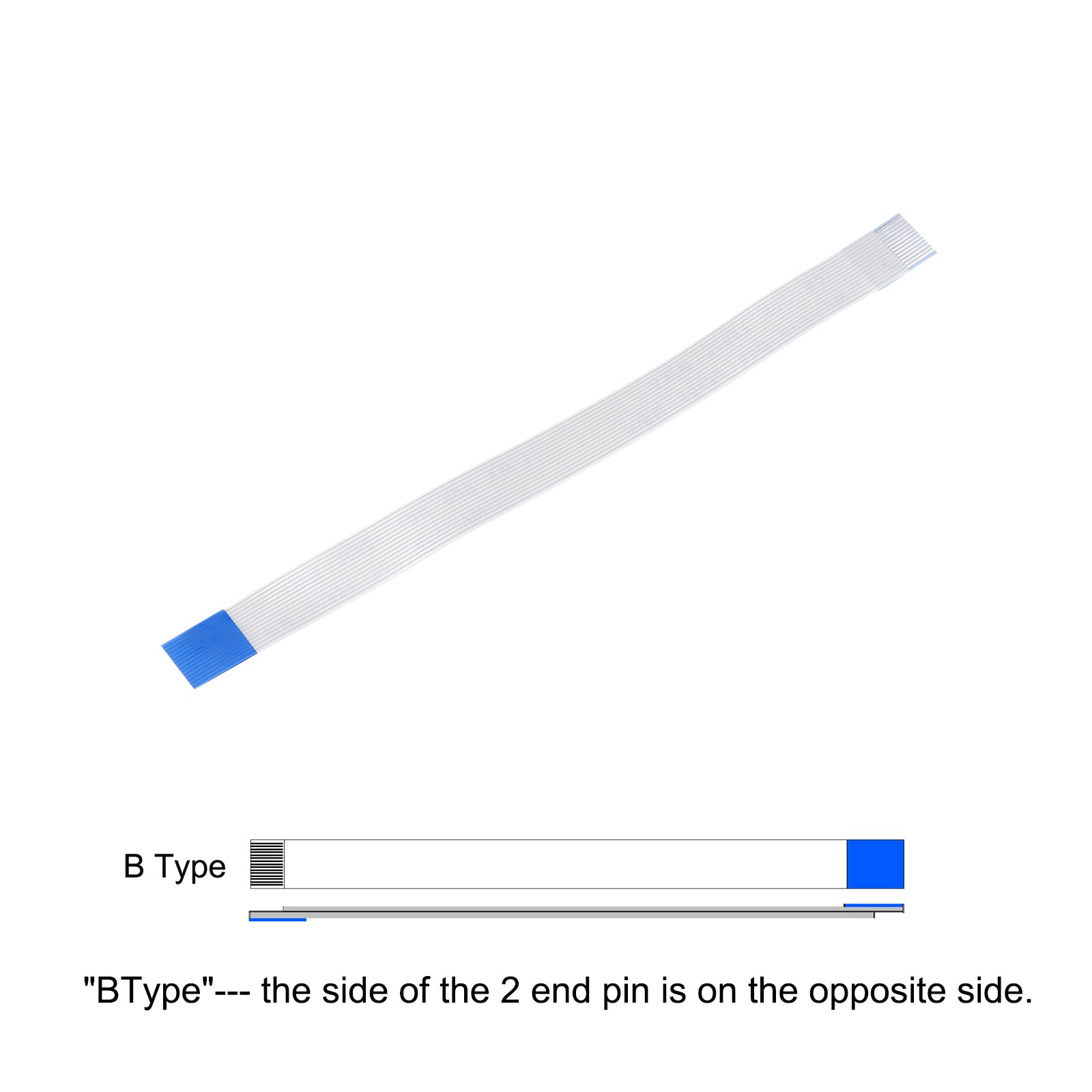Cable: Pin on the Opposite Side (B Type); Pin Count: 8 Pins; Pitch: 0.5mm; Length*Width: 100mm x 4.5mm / 3.94" x 0.18"; In the package of: 10 x FFC Cable.