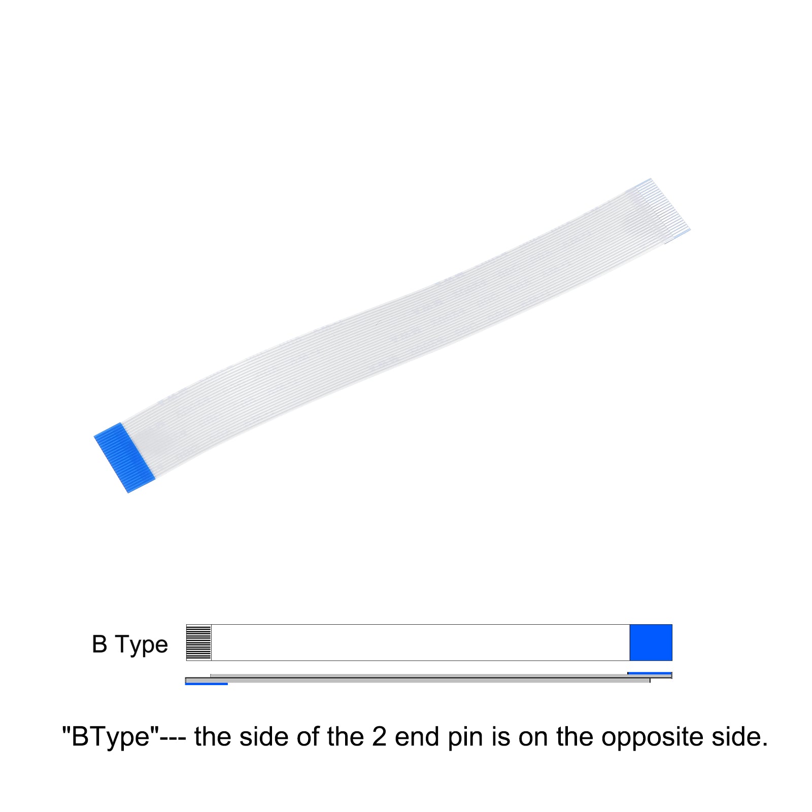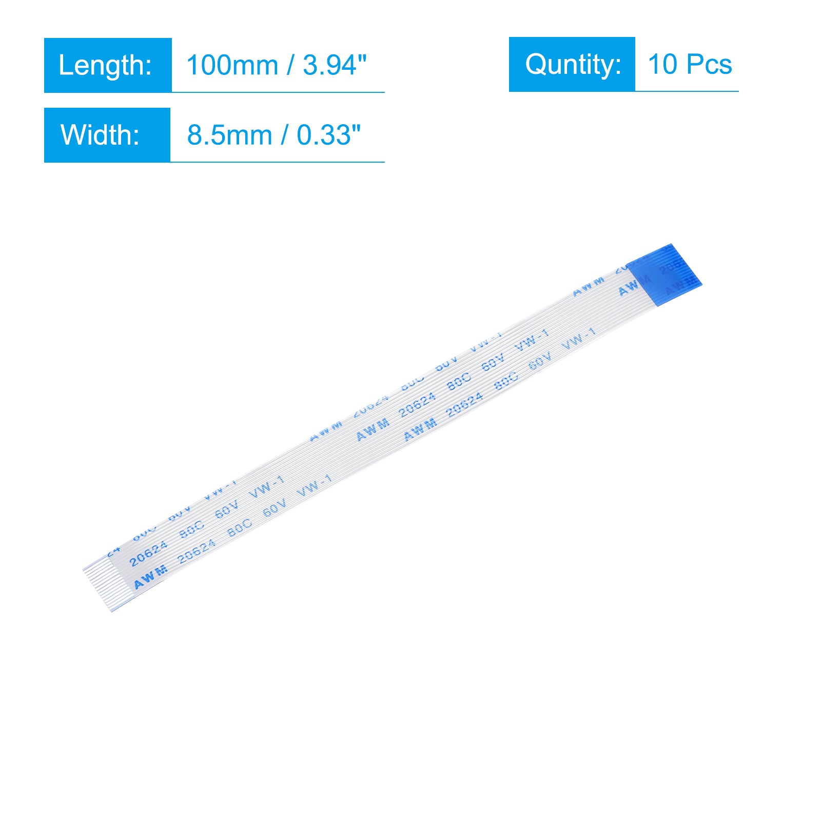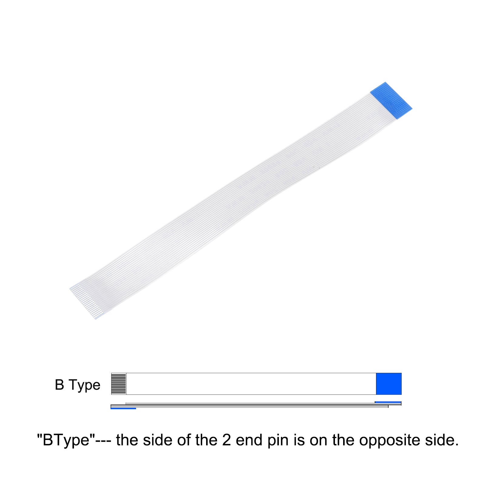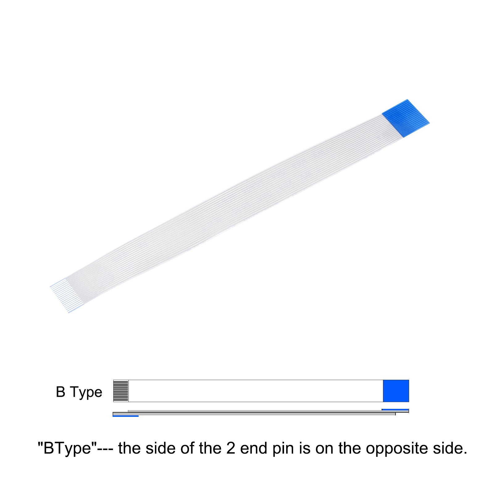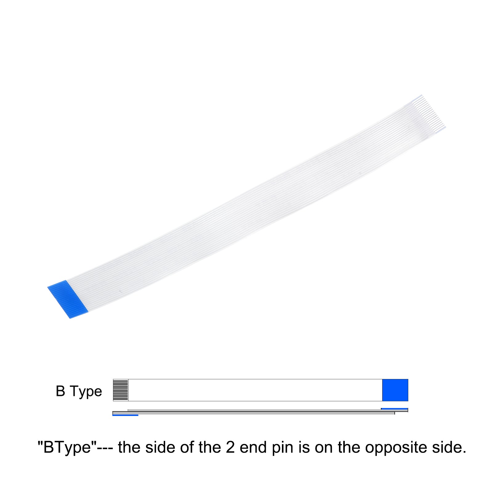Cable: Pin on the Opposite Side (B Type); Pin Count: 8 Pins; Pitch: 0.5mm; Length*Width: 100mm x 4.5mm / 3.94" x 0.18"; In the package of: 10 x FFC Cable.