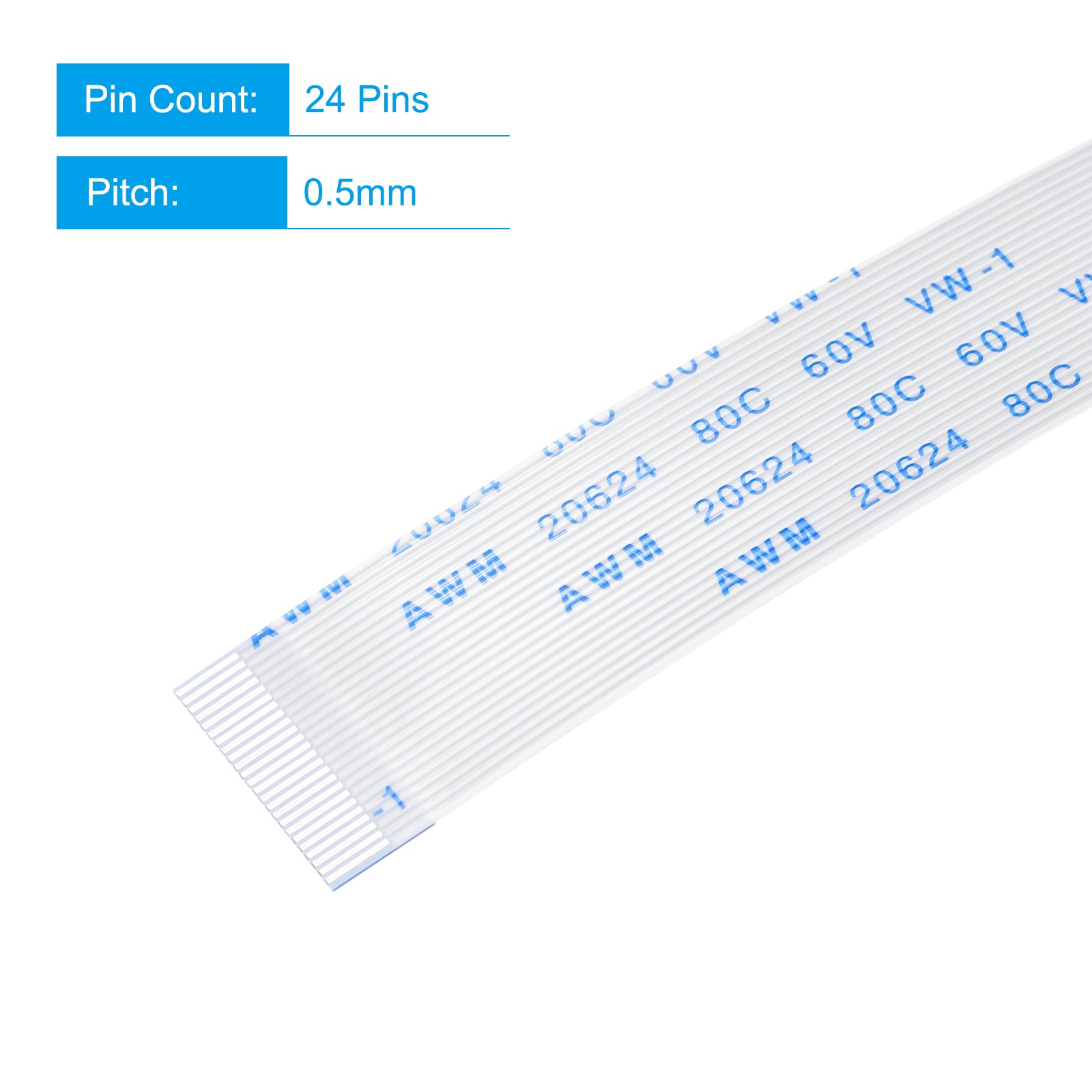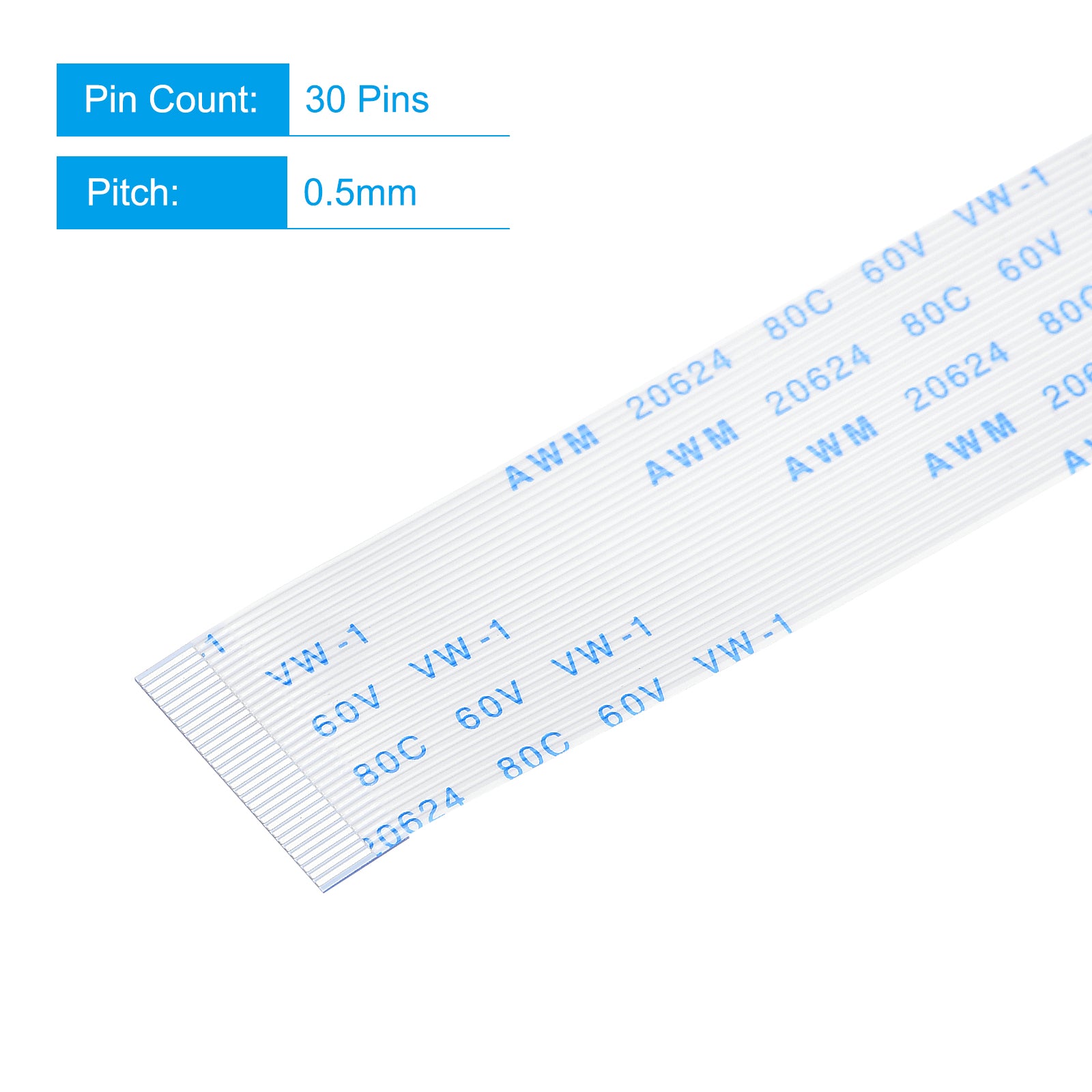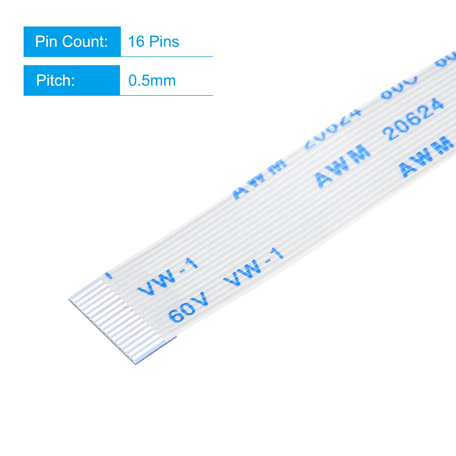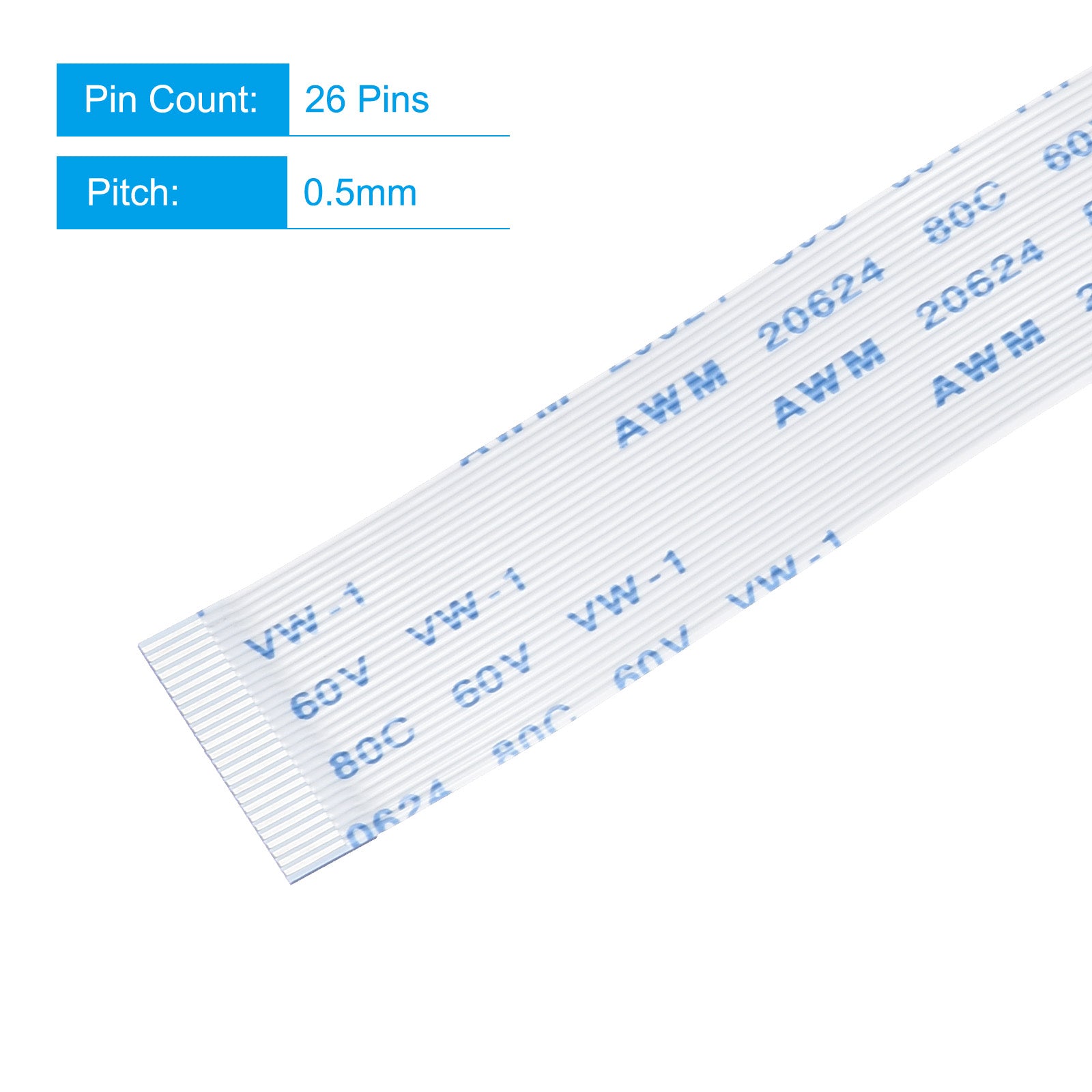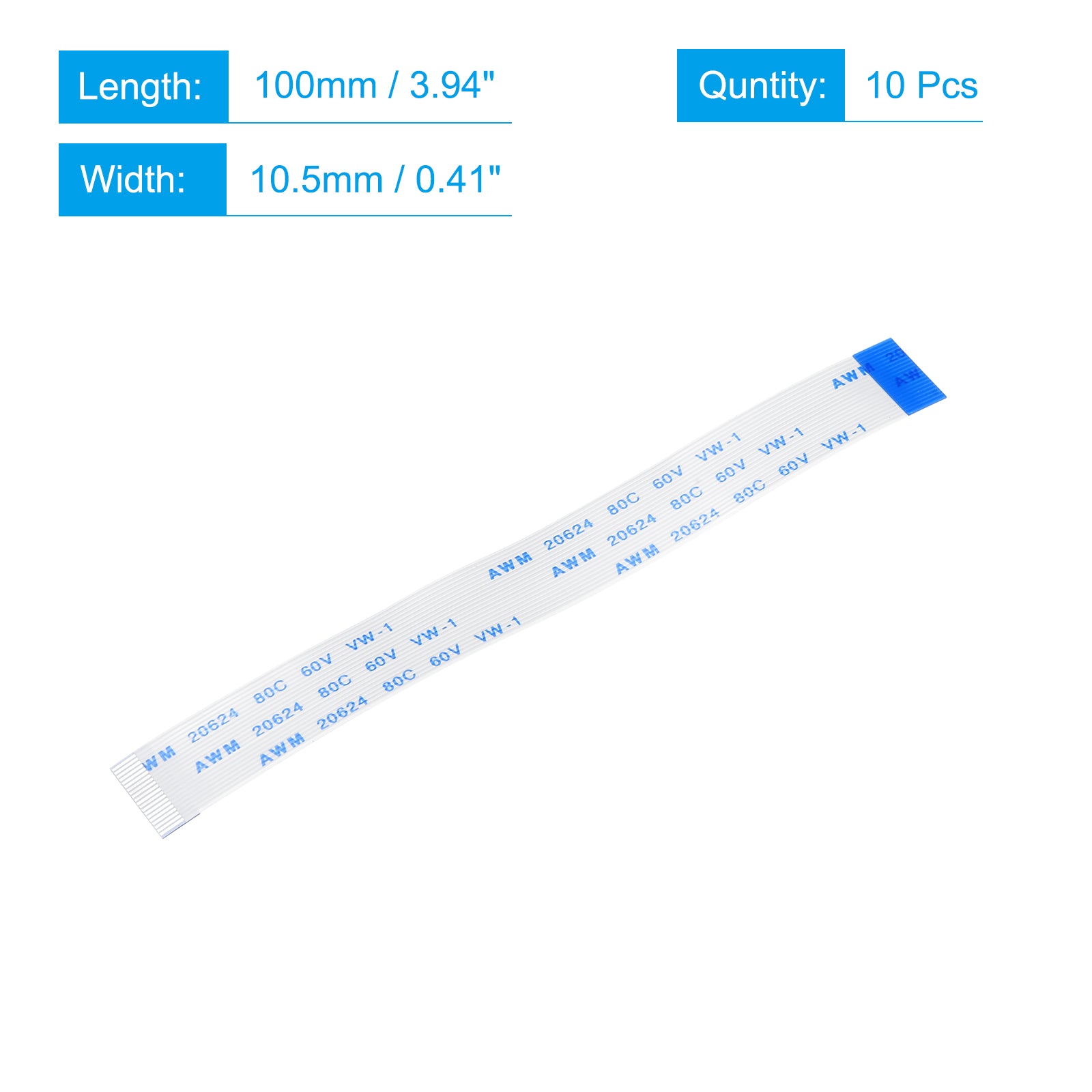 Cable: Pin on the Opposite Side (B Type); Pin Count: 8 Pins; Pitch: 0.5mm; Length*Width: 100mm x 4.5mm / 3.94" x 0.18"; In the package of: 10 x FFC Cable.