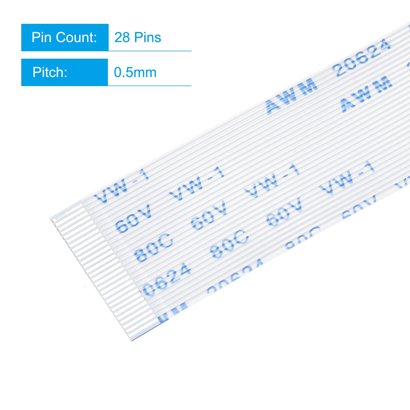 What will I get? The Flexible Flat Cable we provide here, is in the size of: Cable: Pin on the Opposite Side (B Type) Pin Count: 8 Pins Pitch: 0.5mm Length*Width: 100mm x 4.5mm / 3.94" x 0.18"; In the package of: 10 x FFC Cable