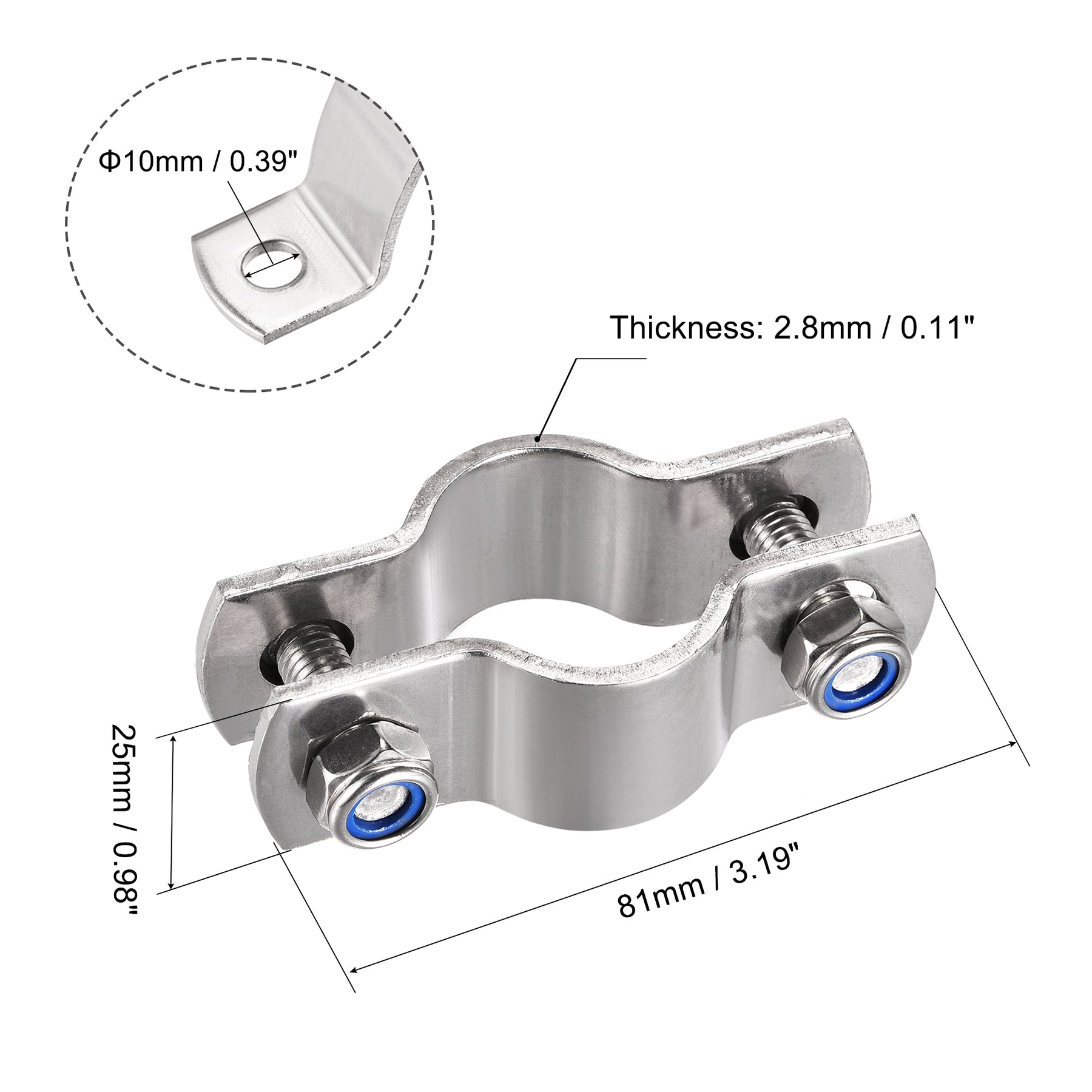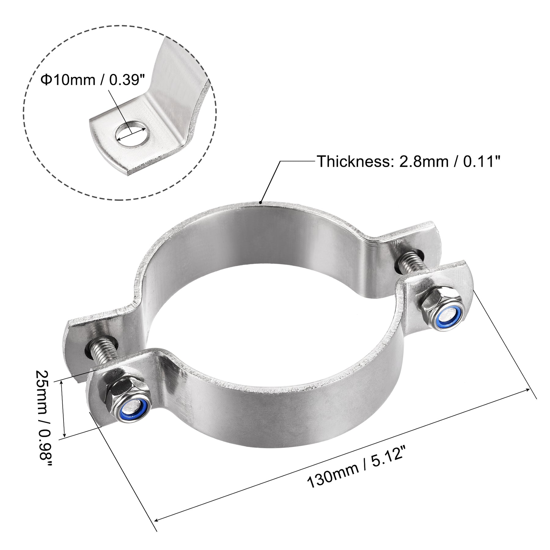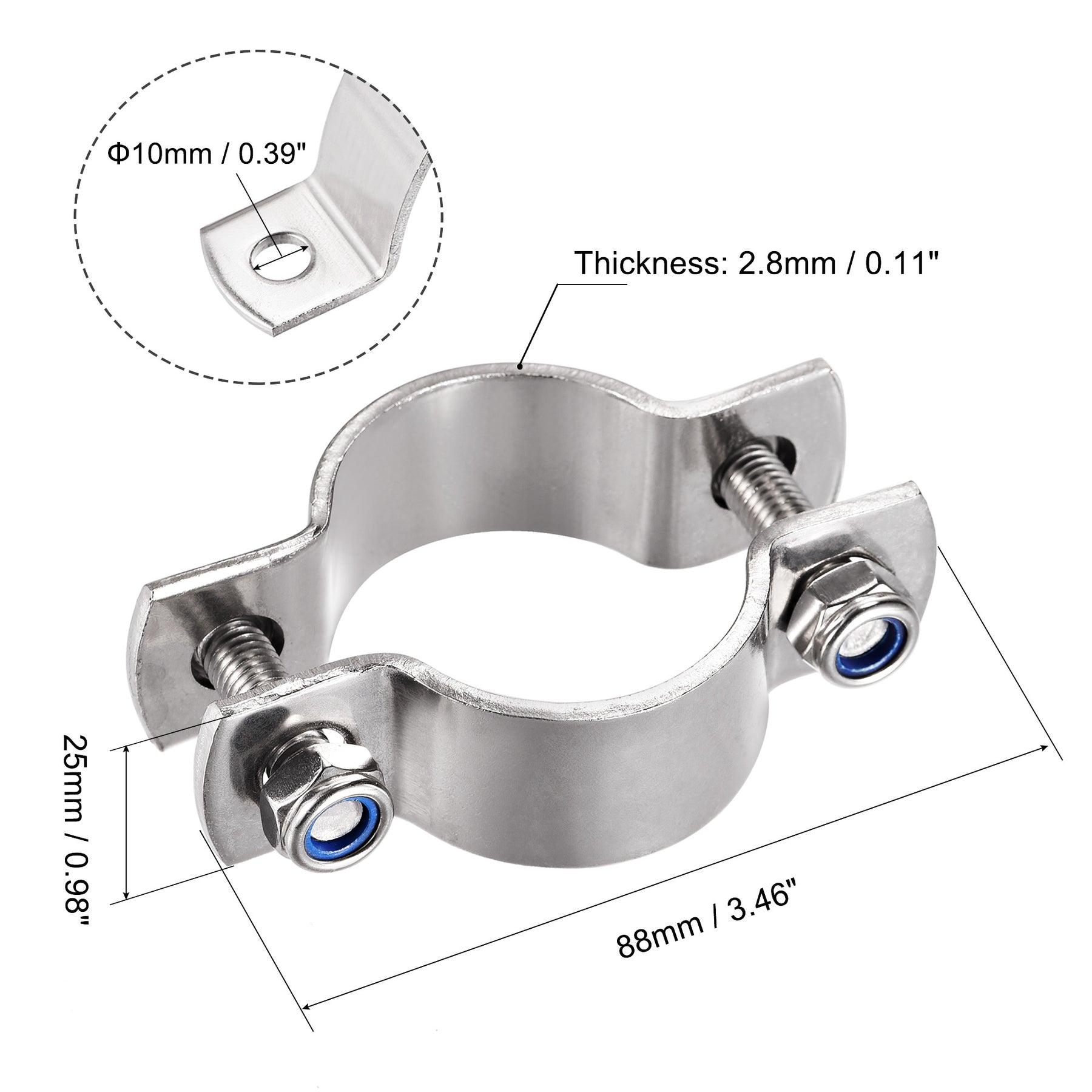 Specification: Material: 304 Stainless Steel Finish: Polishing Bolt Size: M8*1.25 Fit Pipe Diameter: 80mm / 3.15" Total Size: 130 x 25 x 72mm / 5.12" x 0.98" x 2.83" (L*W*H) Thickness: 2.8mm / 0.11" Hole Diameter: 10mm / 0.39"