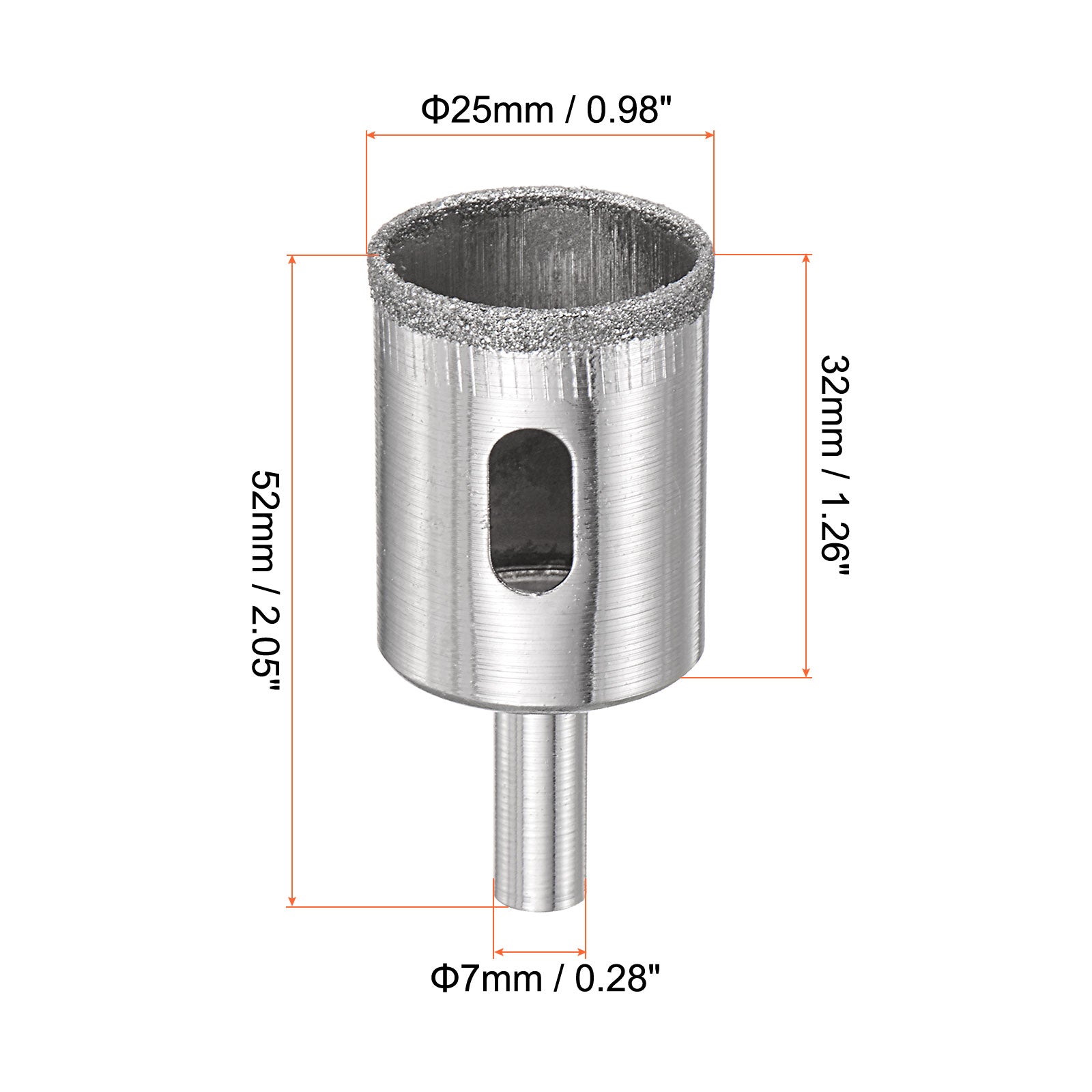 Diamond drill bits along with clearance hole facilitate the entrance of cooling water and escape of chips and other particles from drilling. Makes drilling process easier. Works better with a electric drill (NOT included).