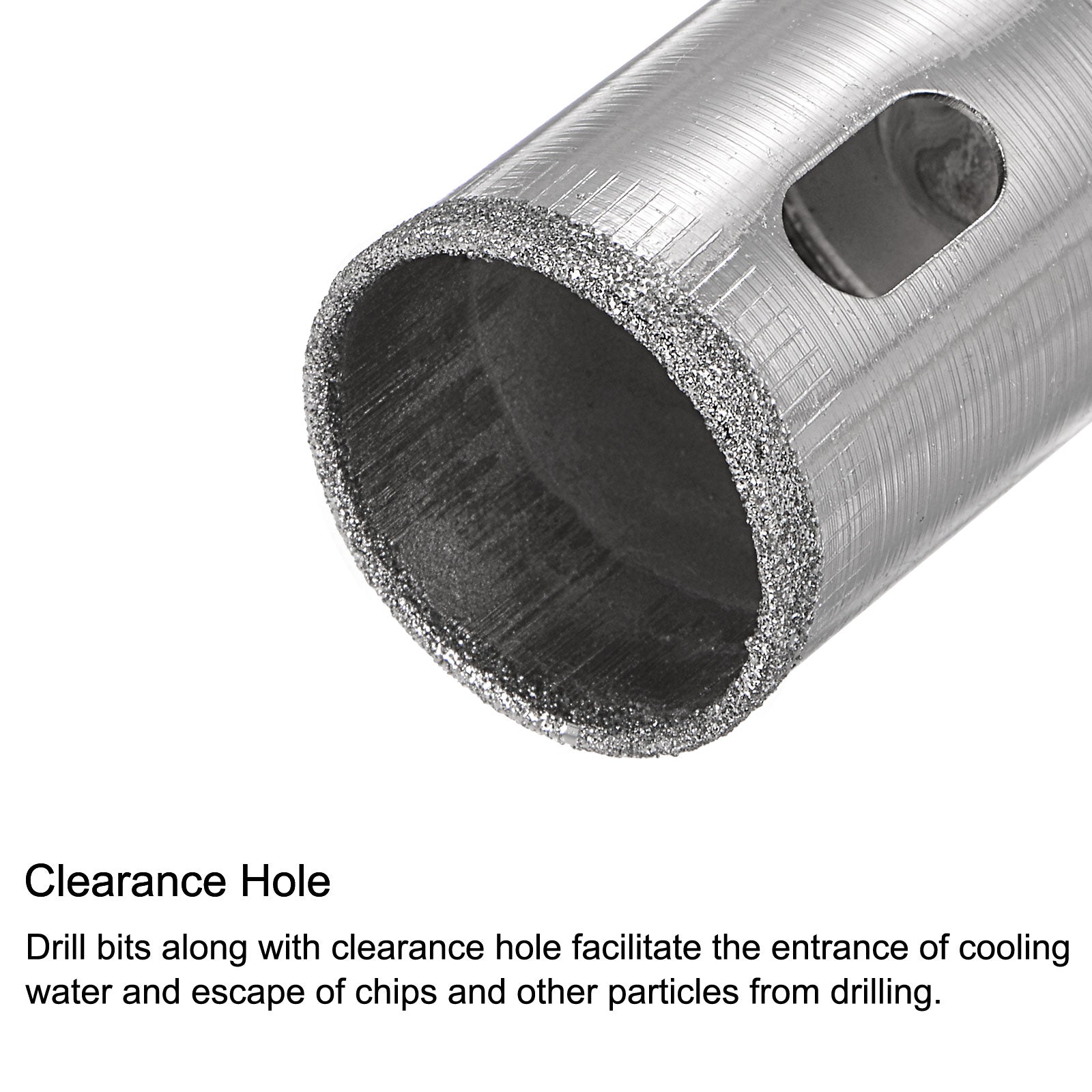Clearance Hole: Diamond drill bits along with clearance hole facilitate the entrance of cooling water and escape of chips and other particles from drilling. Makes drilling process easier. Works better with a electric drill (NOT included).