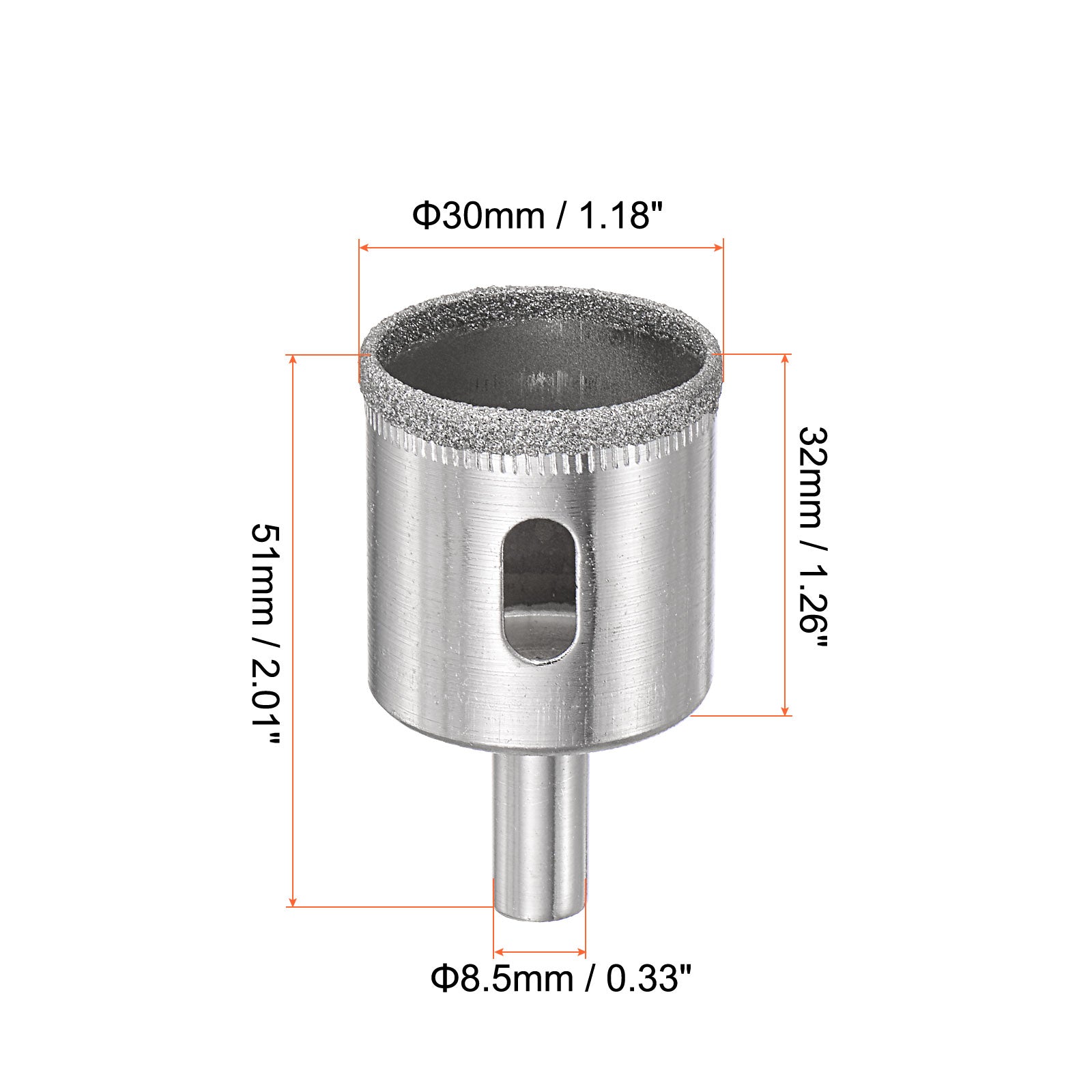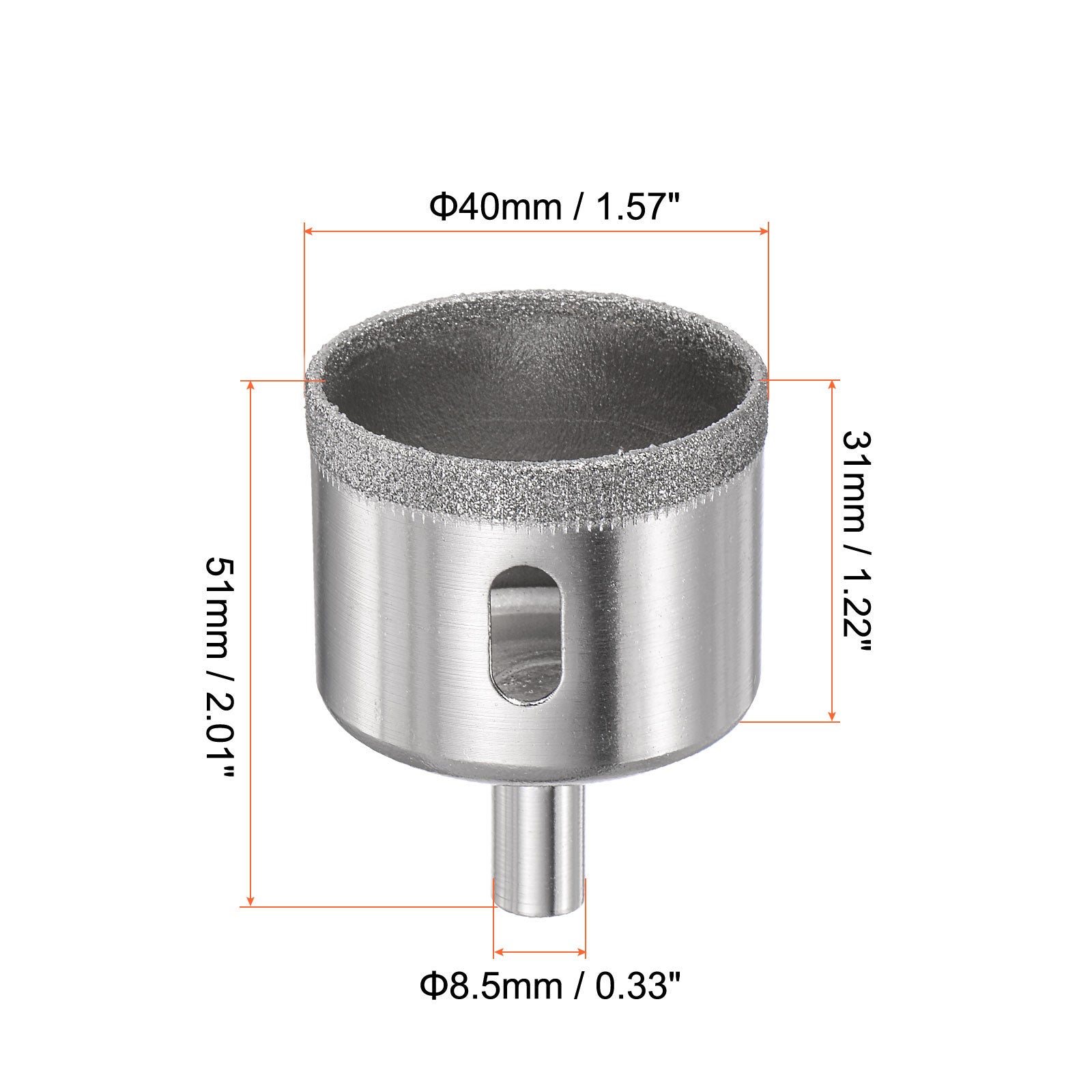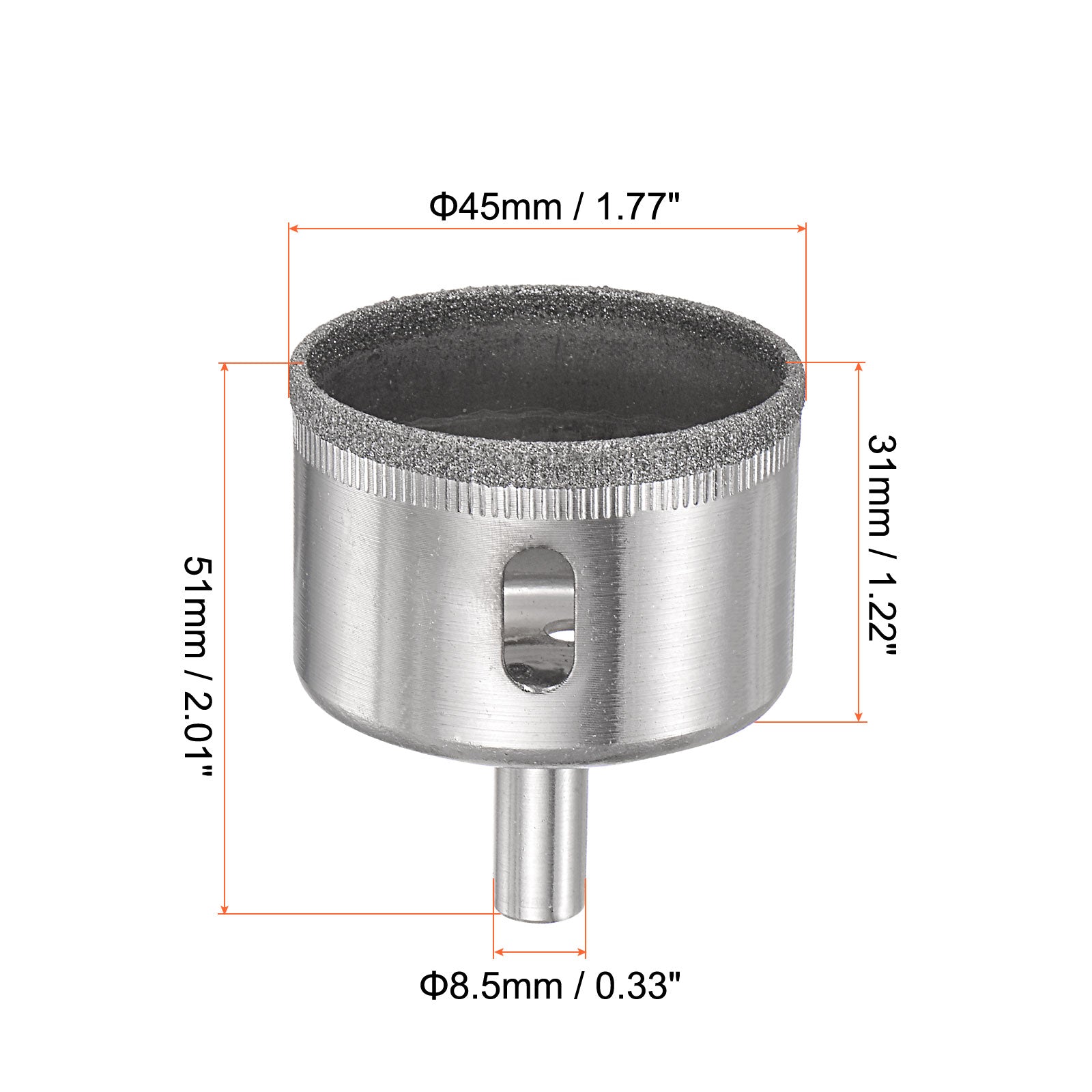 Diamond Drill Bit: Drilling diameter: 45mm / 1.77"; shank diameter: 8.5mm / 0.33". With electroplated diamond, the drill bit creates high precision, smooth cuts with no broken edges. Smooth and exact finish for increasing the sharpness, and effectiveness of water lubrication.