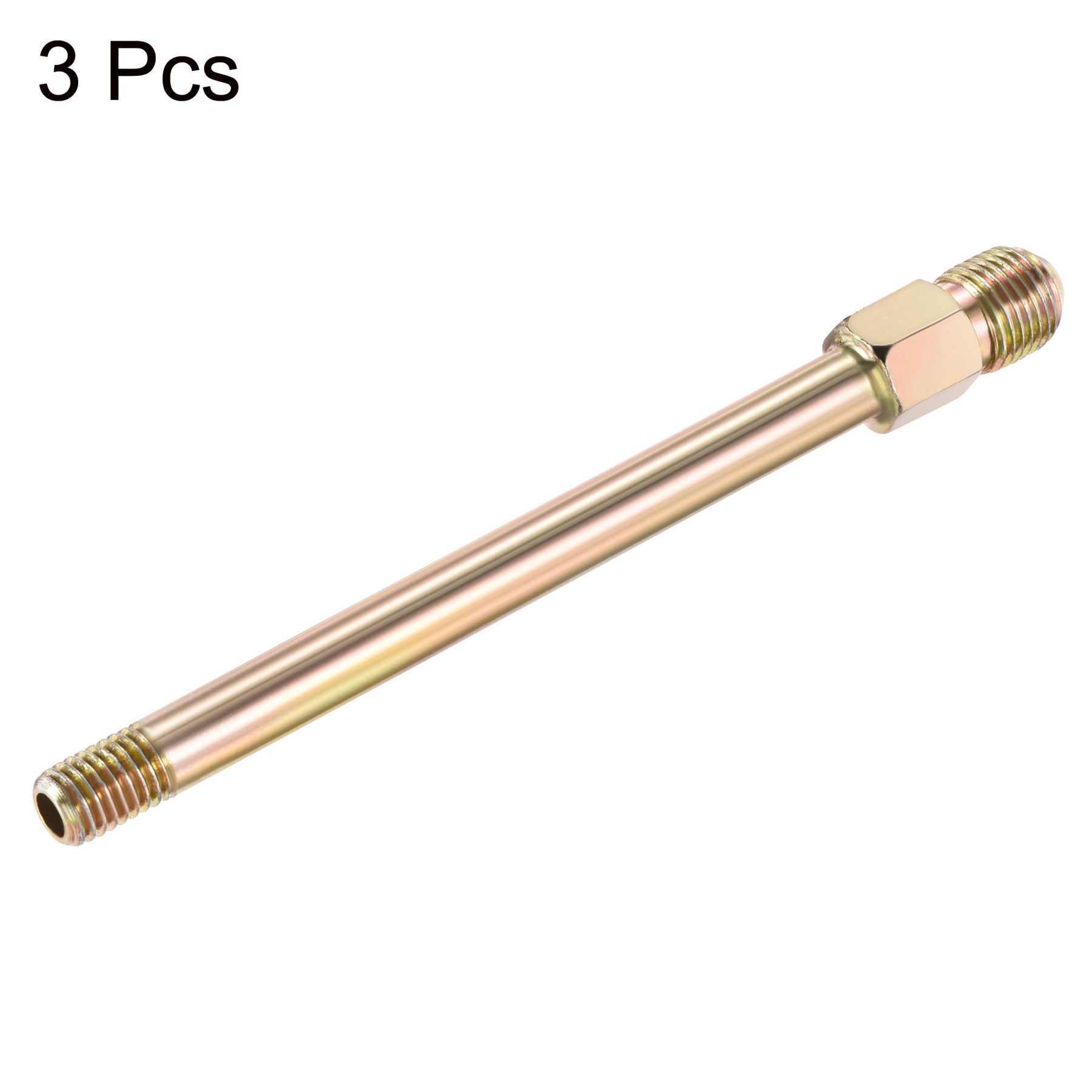 What will I get? The extension pipe fitting, we provide here, are in the size of: Material: Iron Thread Size: 9/16"-18 UNF Male to M10 Male Threading distance: 1.5mm / 0.06 inch Size: 200 x 14mm / 7.87 x 0.55 inch (L*W) In the package of: 1 Pack x Pipe Fitting