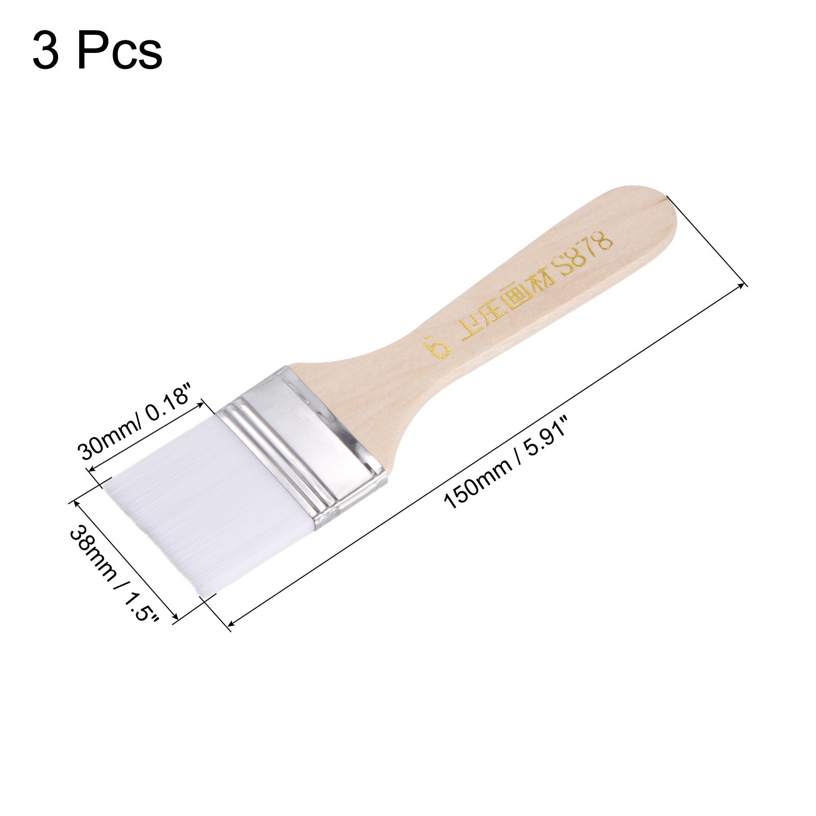 Specification: Material: Wood, Nylon Bristle Bristle Width: 38mm/ 1.5 inch Bristle Length: 30mm/ 0.18 inch Bristle Thickness: 5mm / 0.2 inch Handle Width: 38mm / 1.5 inch Total Length: 150mm / 5.91 inch