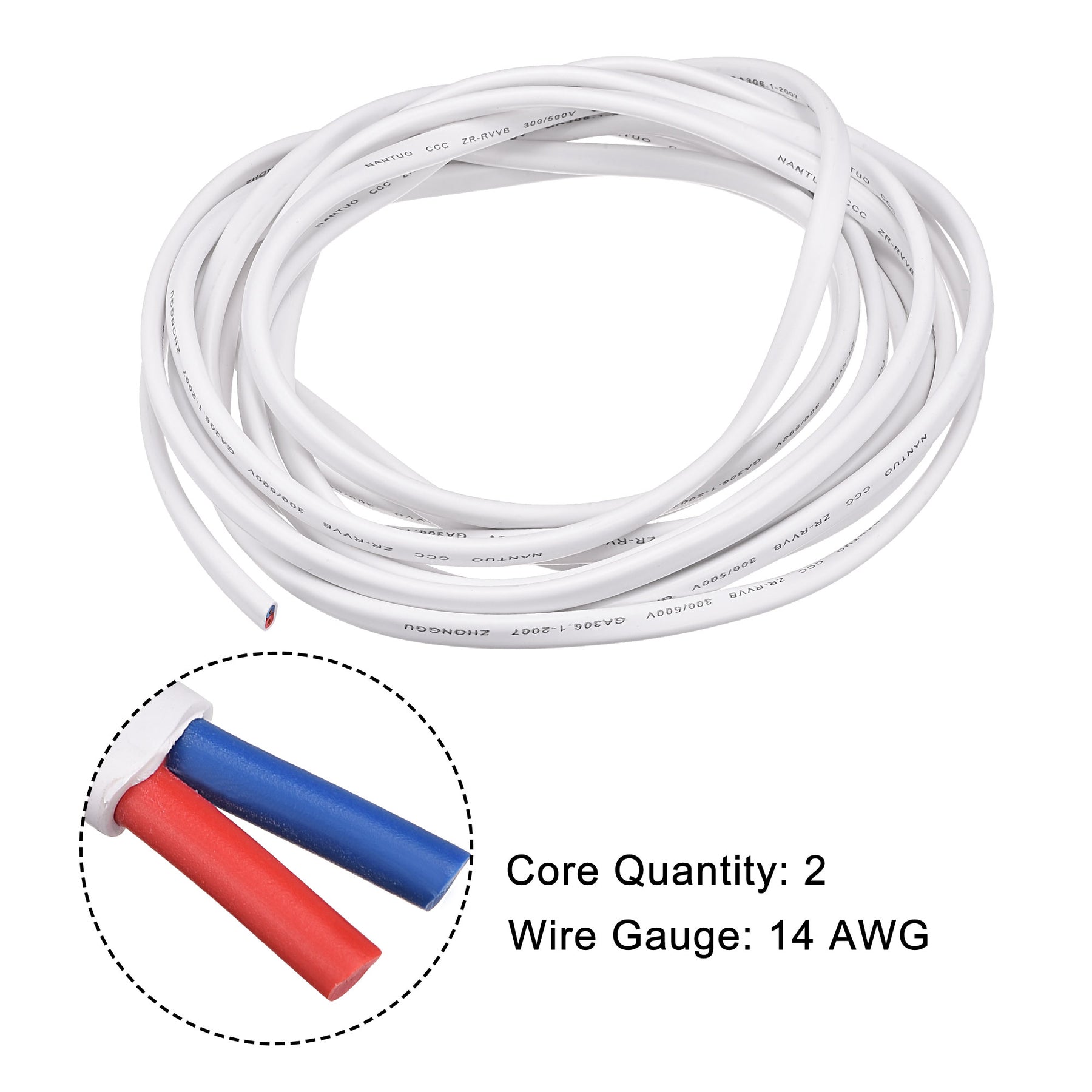 What will I get? The power cable, we provide here, is in the size of: Core Quantity: 2 Wire Gauge: 20 AWG Wire Length: 5M/16FT Color: White Wire Material: Copper , PVC In the package of: 1 x Electric Wire