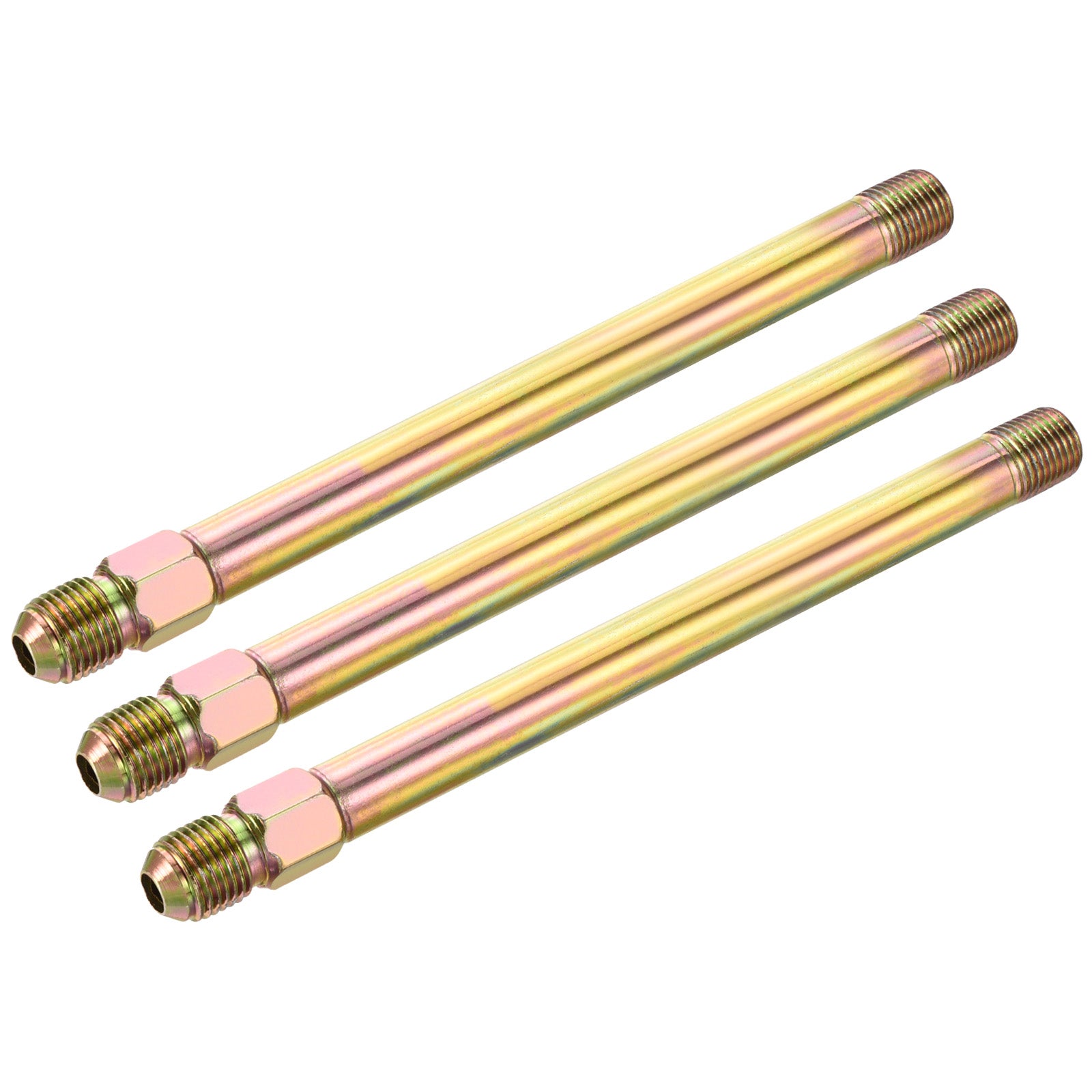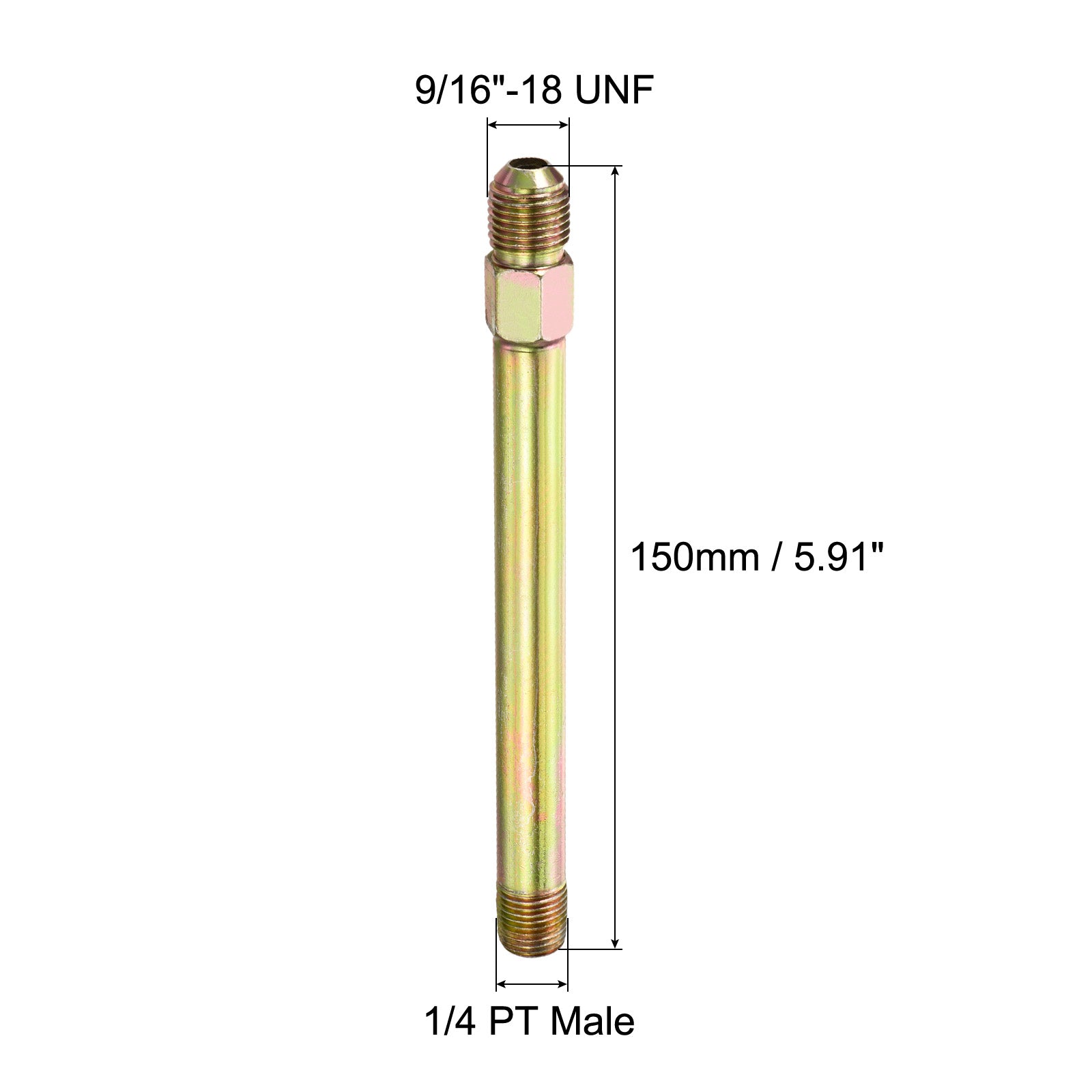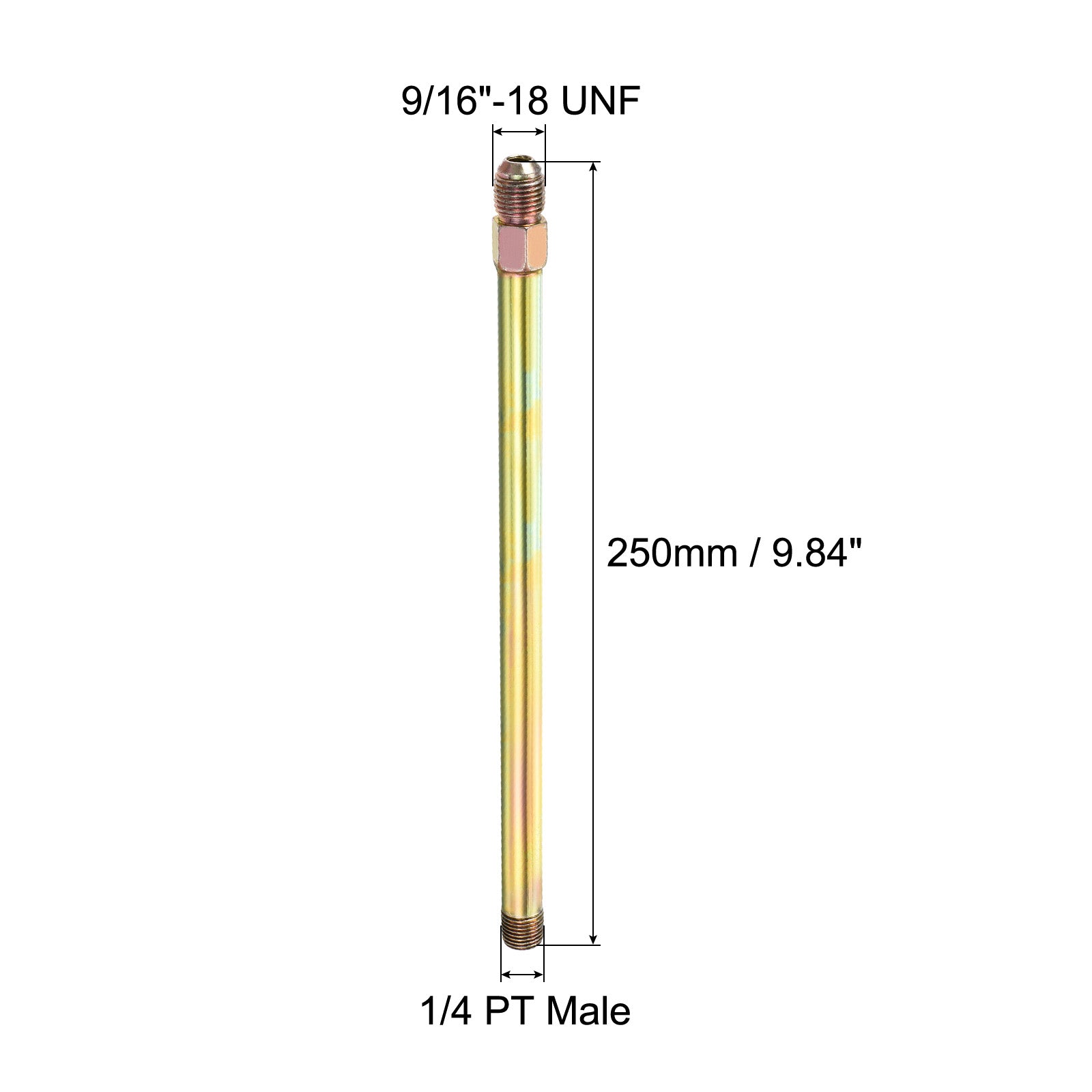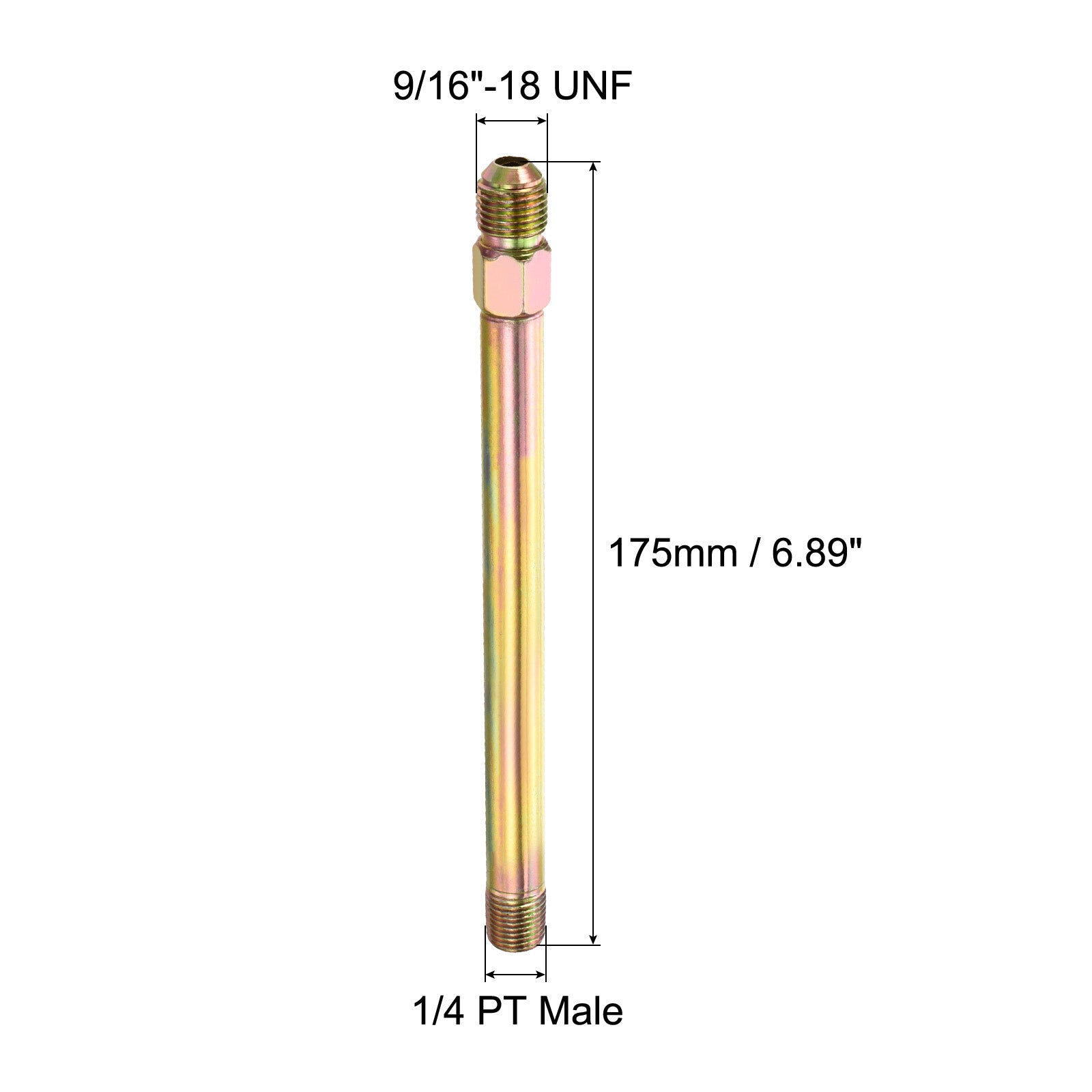 What will I get? The extension pipe fitting, we provide here, are in the size of: Material: Iron Thread Size: 9/16"-18 UNF Male to 1/4 PT Male Length: 175mm / 6.89 inch In the package of: 3 Pack x Pipe Fitting