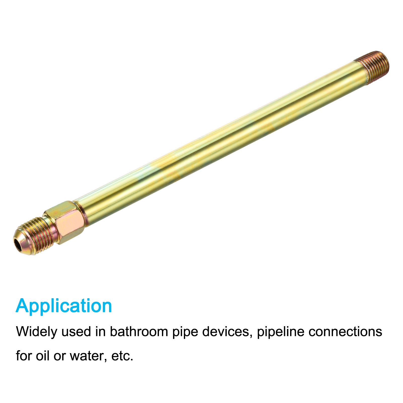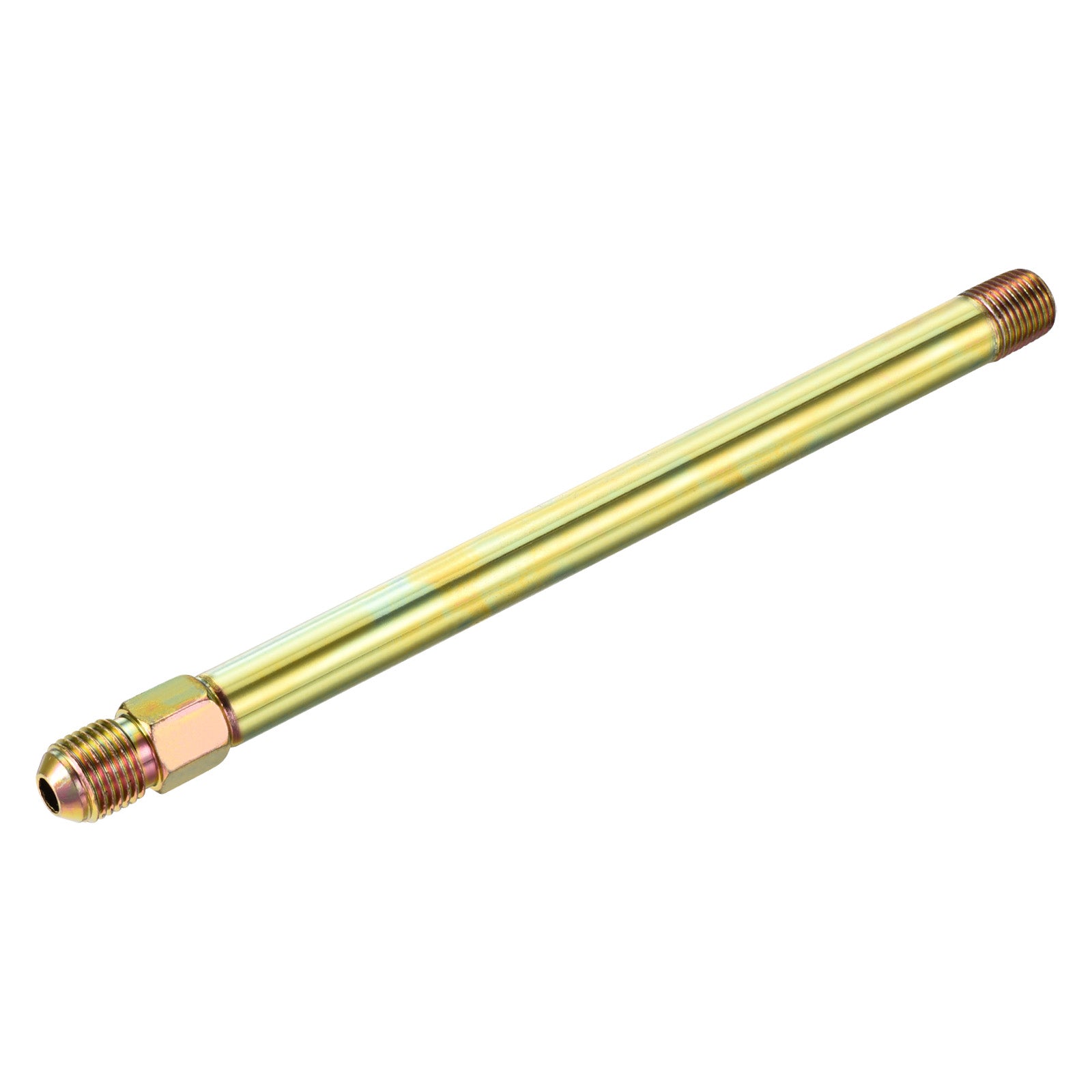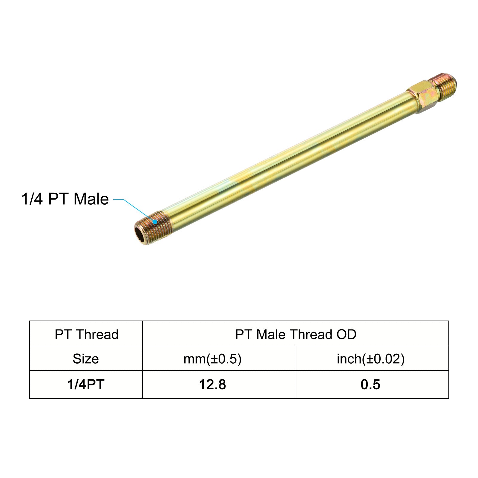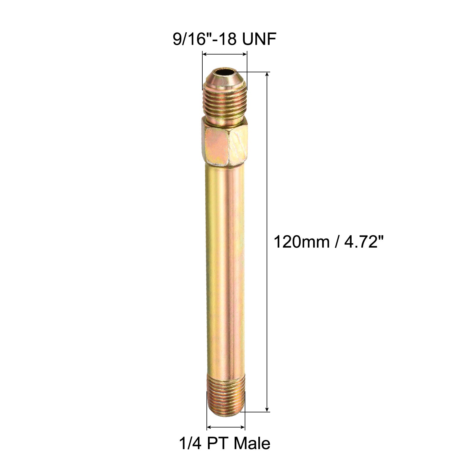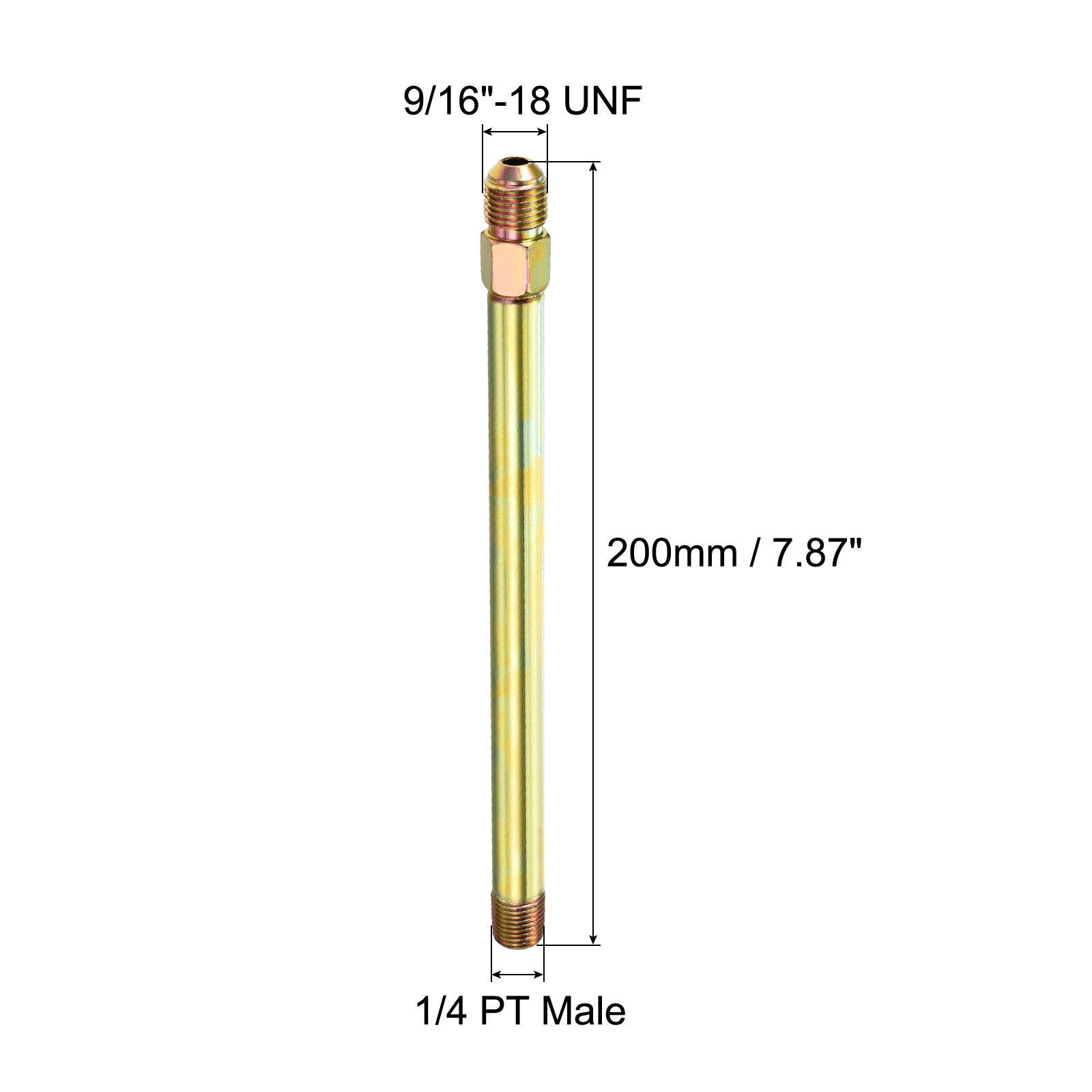What will I get? The extension pipe fitting, we provide here, are in the size of: Material: Iron Thread Size: 9/16"-18 UNF Male to 1/4 PT Male Length: 175mm / 6.89 inch In the package of: 3 Pack x Pipe Fitting