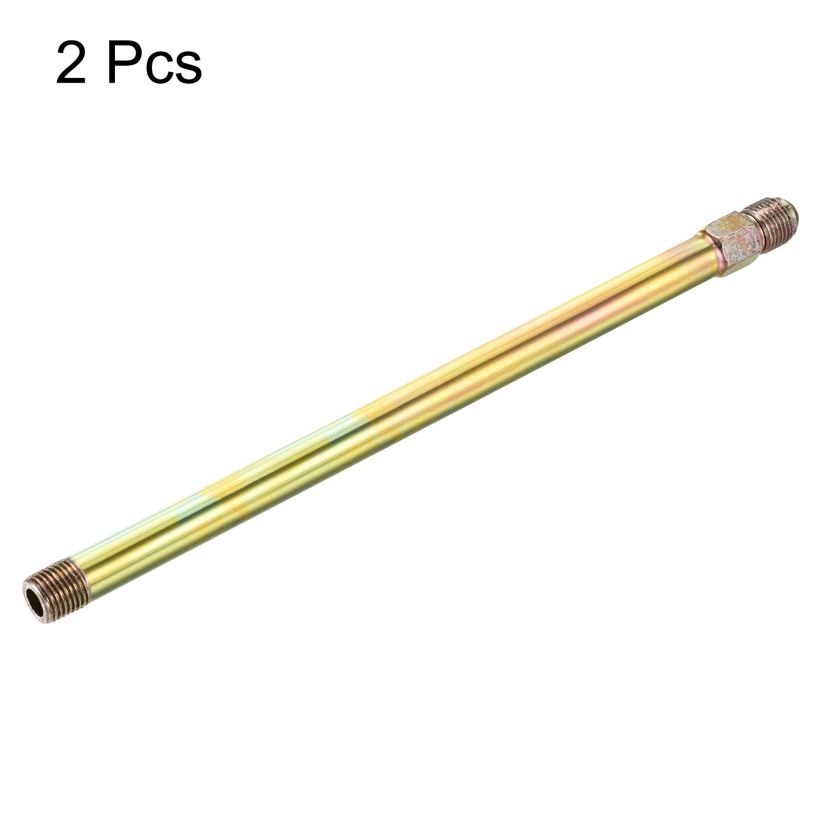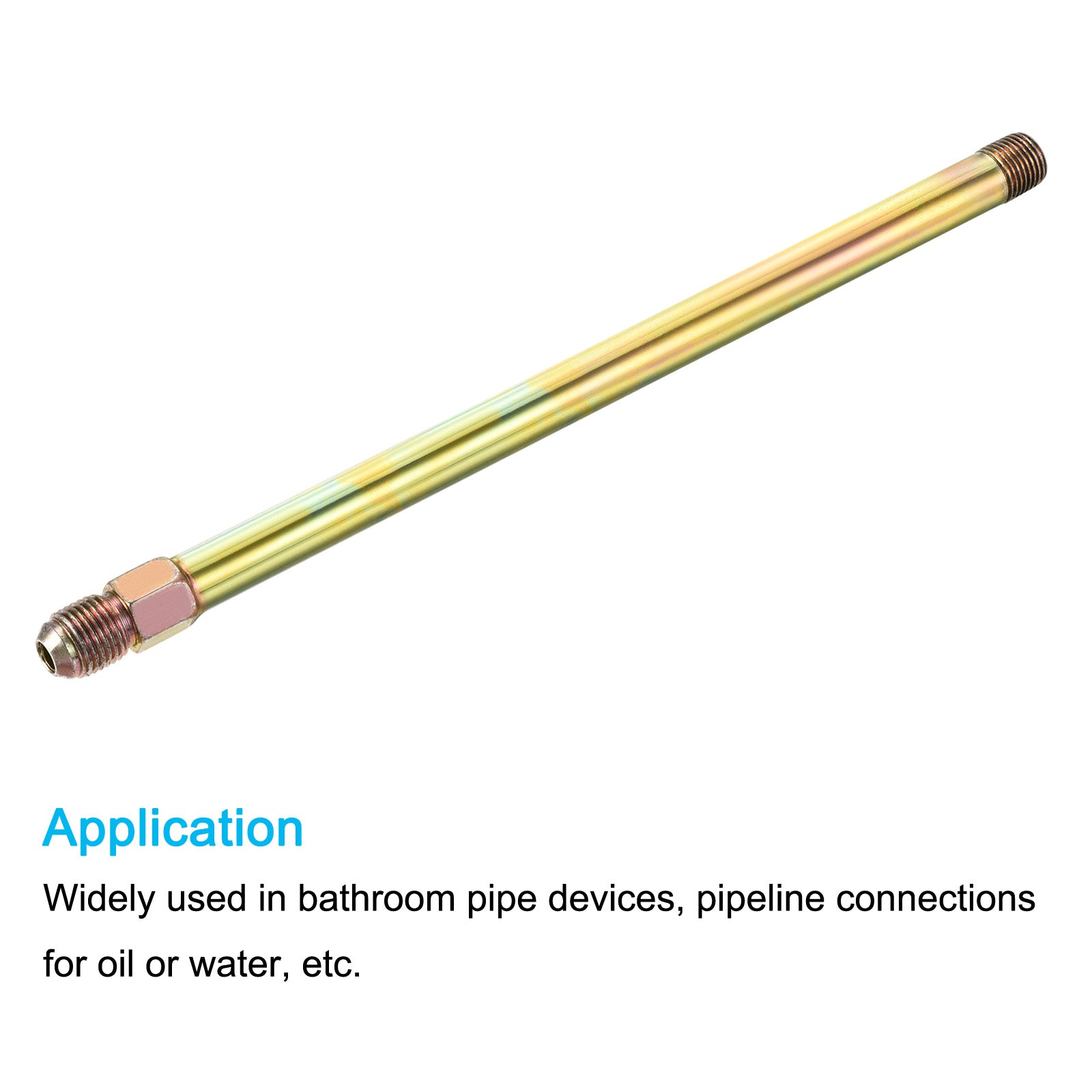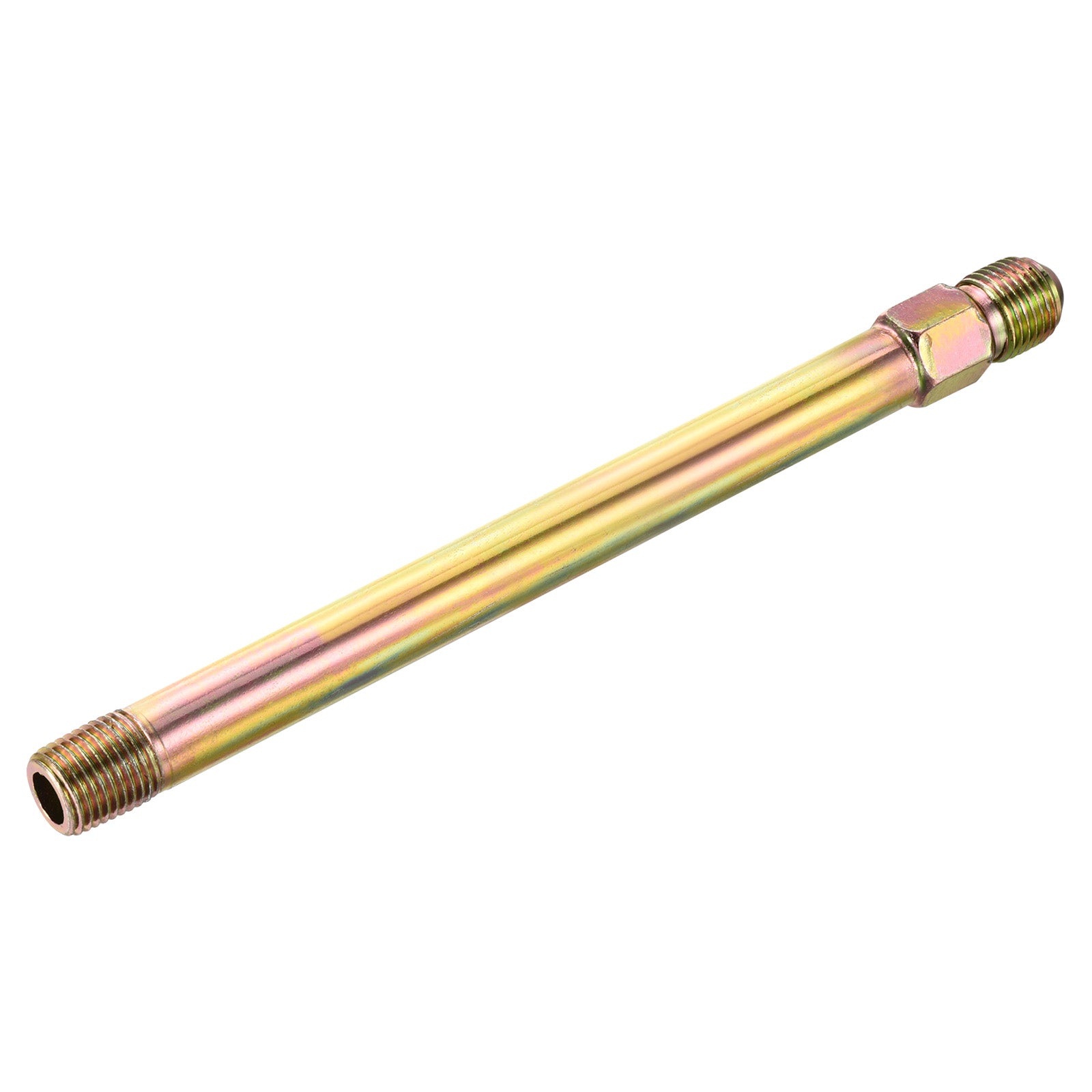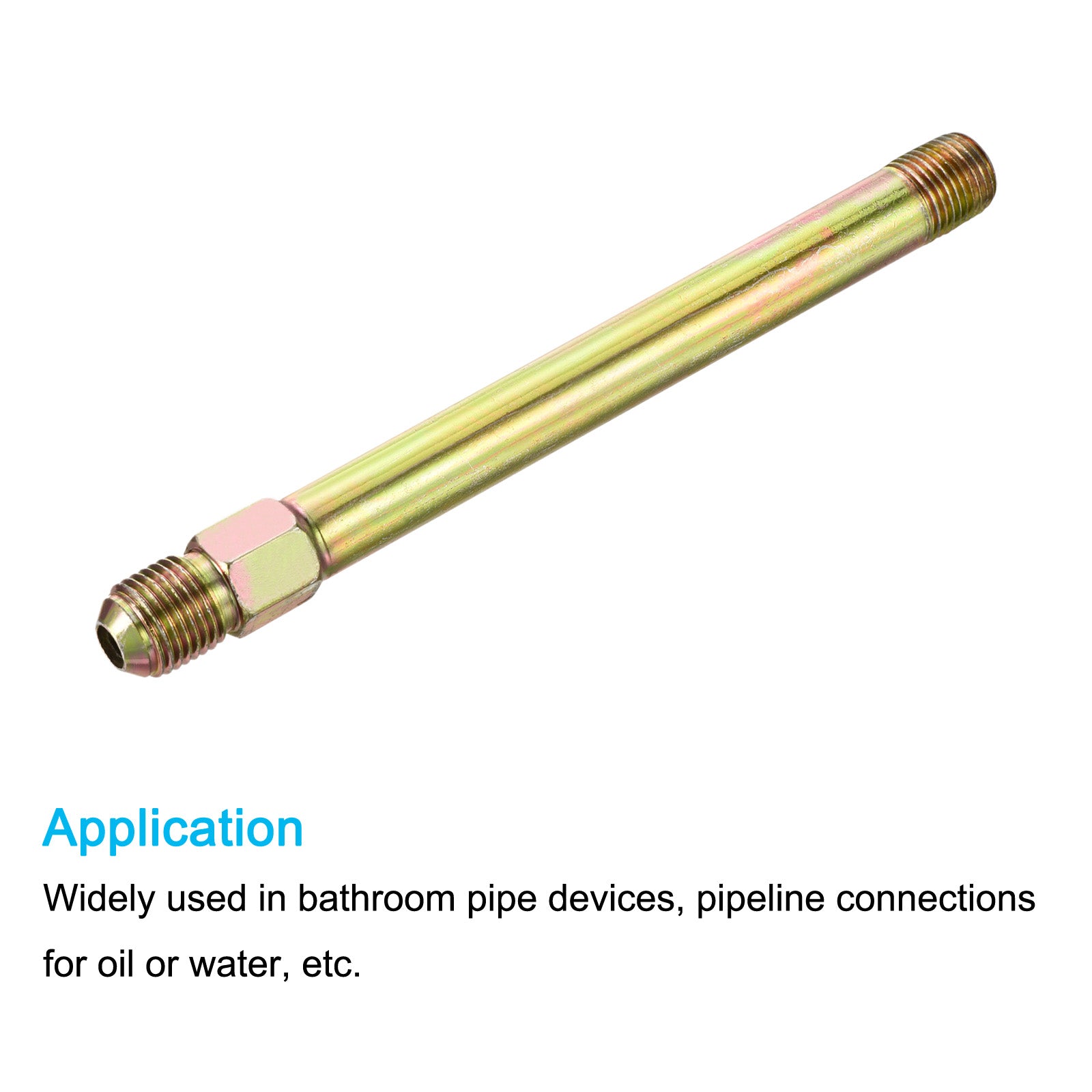 What will I get? The extension pipe fitting, we provide here, are in the size of: Material: Iron Thread Size: 9/16"-18 UNF Male to 1/4 PT Male Length: 175mm / 6.89 inch In the package of: 3 Pack x Pipe Fitting