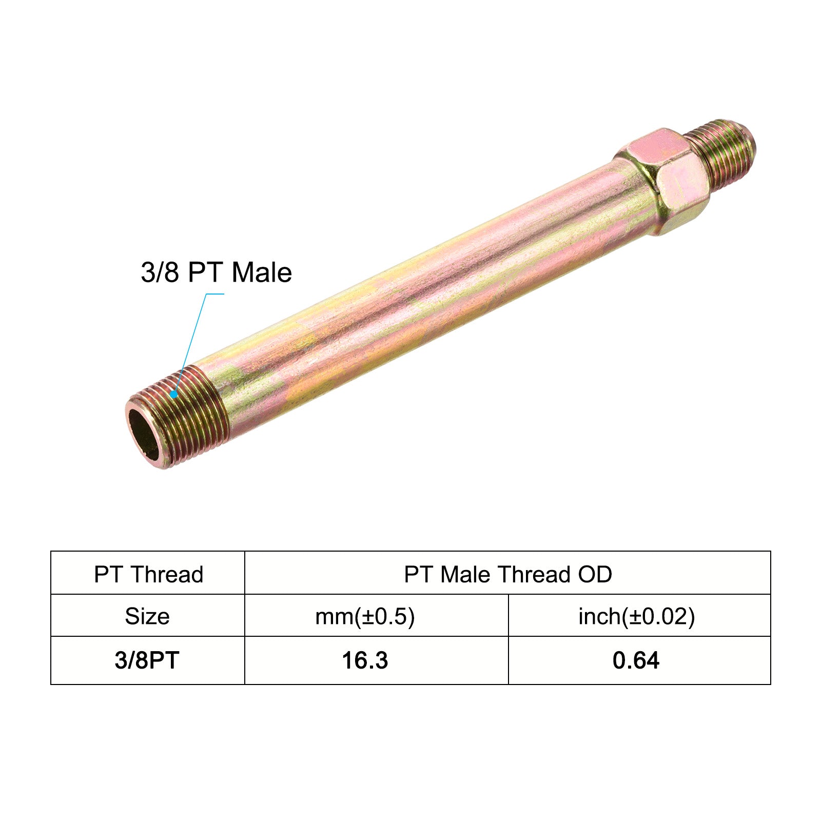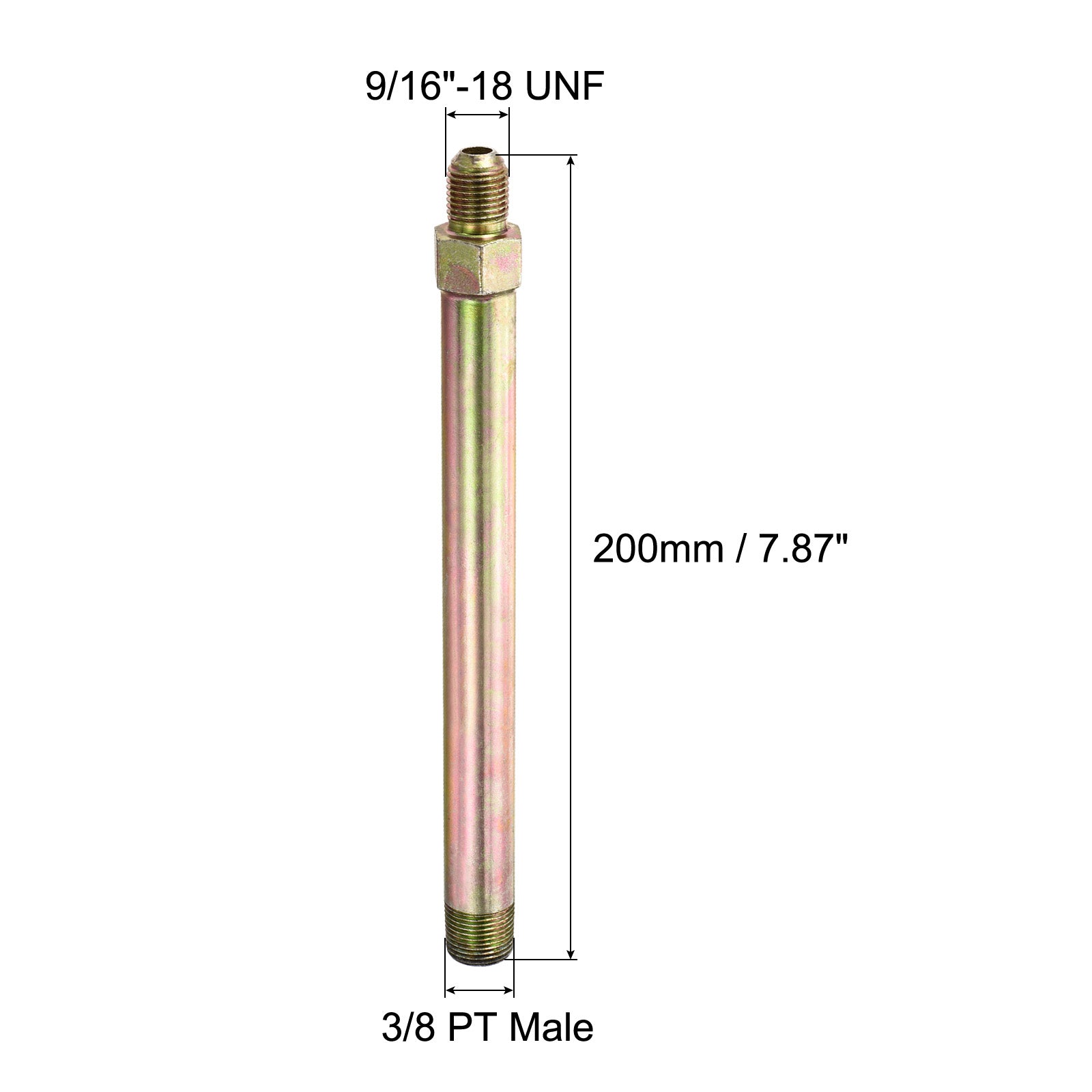 What will I get? The extension pipe fitting, we provide here, are in the size of: Material: Iron Thread Size: 9/16"-18 UNF Male to 3/8 PT Male Length: 100mm / 3.94 inch In the package of: 1 Pack x Pipe Fitting