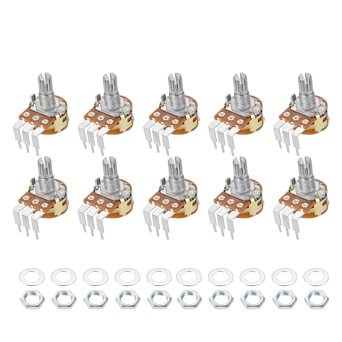 Uxcell WH148 Potentiometer with Switch 500K Ohm Variable Resistors Single Turn Rotary Carbon Film Taper 10pcs