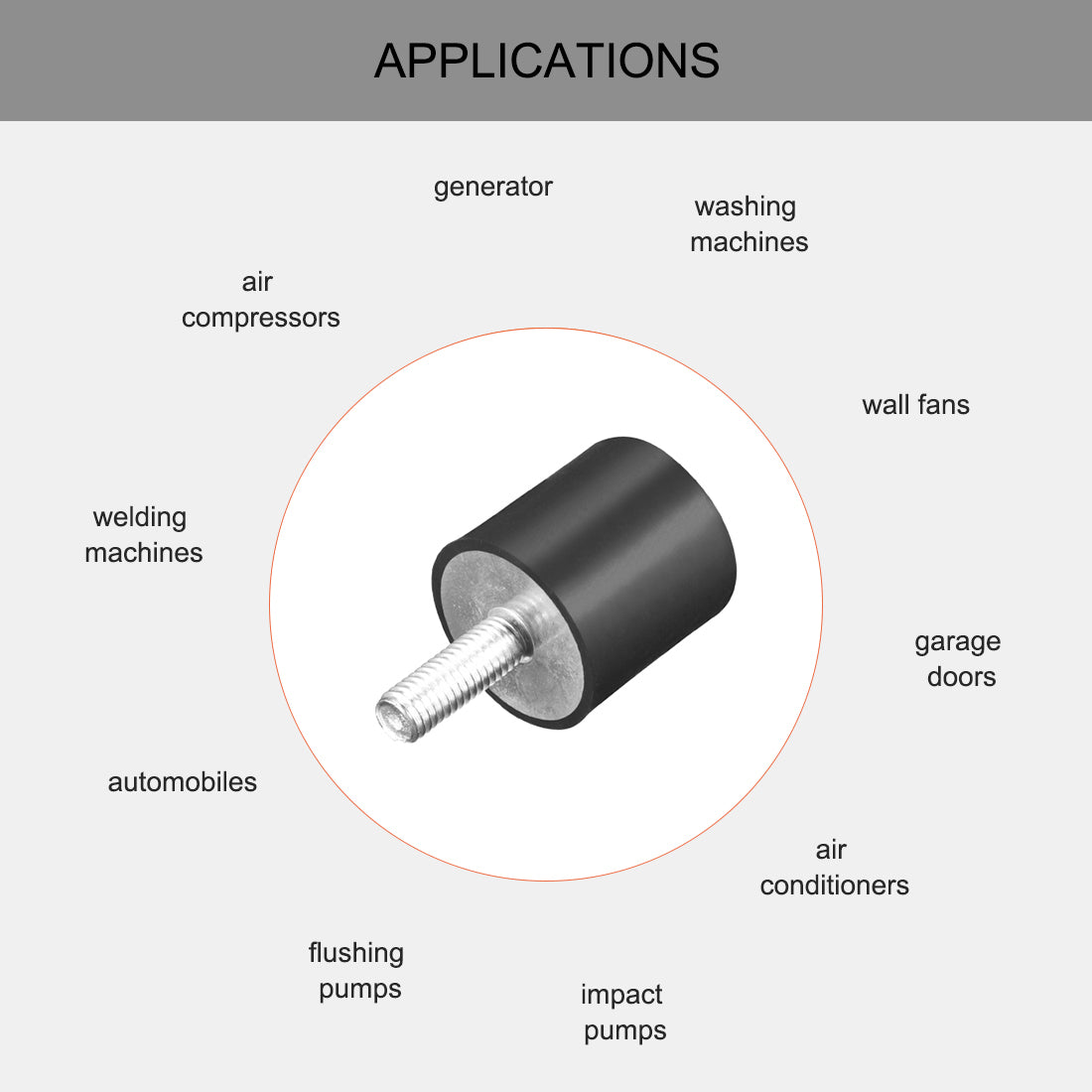 APPLICATION - Rubber mounts mainly used for Fitness equipment, air conditioning, bicycle, air compressors, gasoline engines, water pumps , welding machine and other equipment as a damping element
