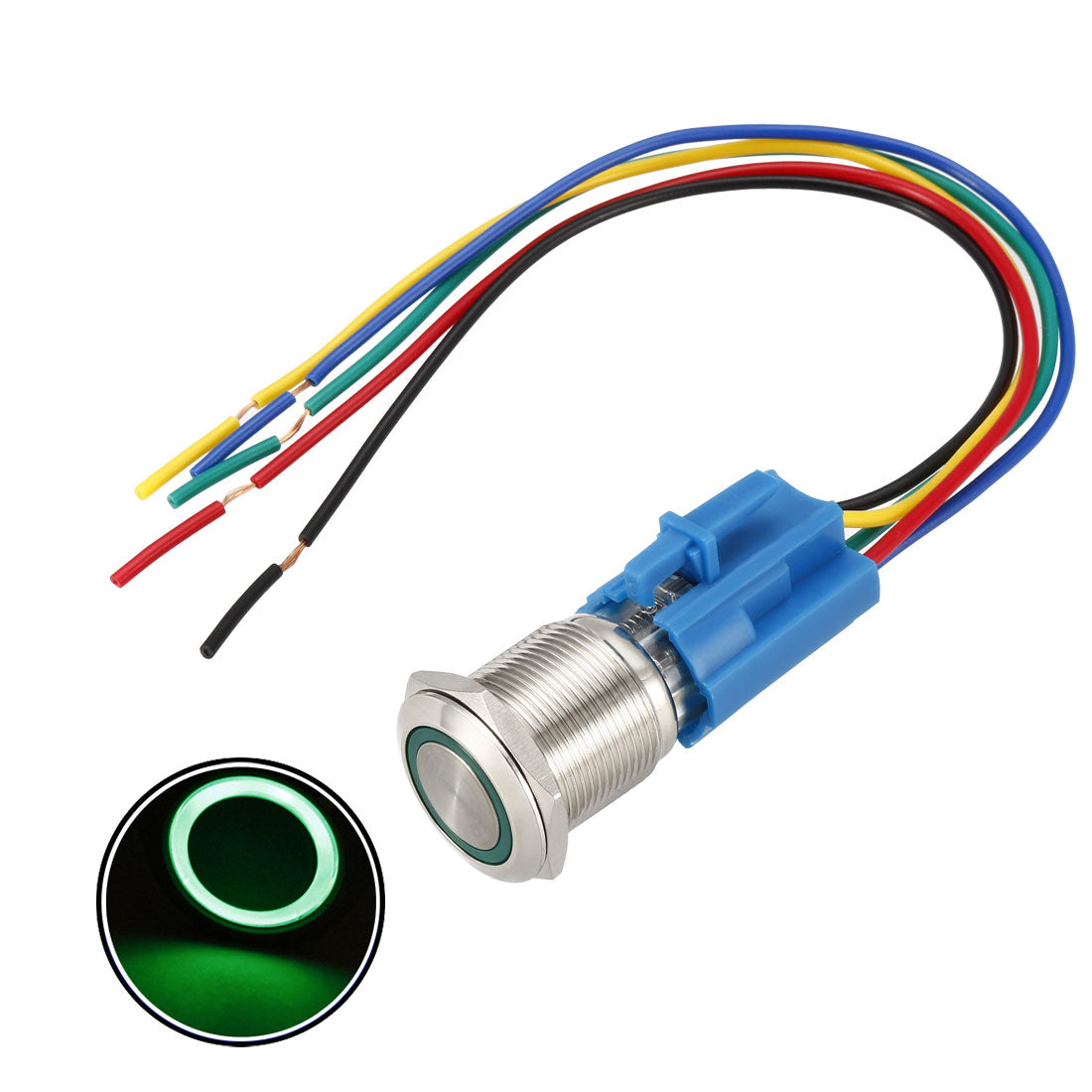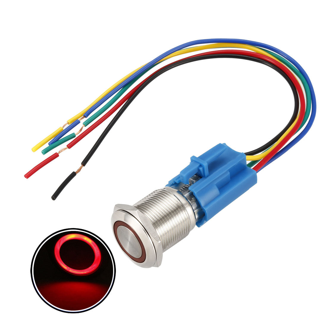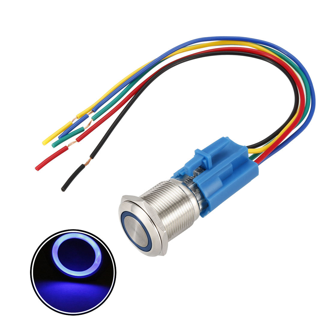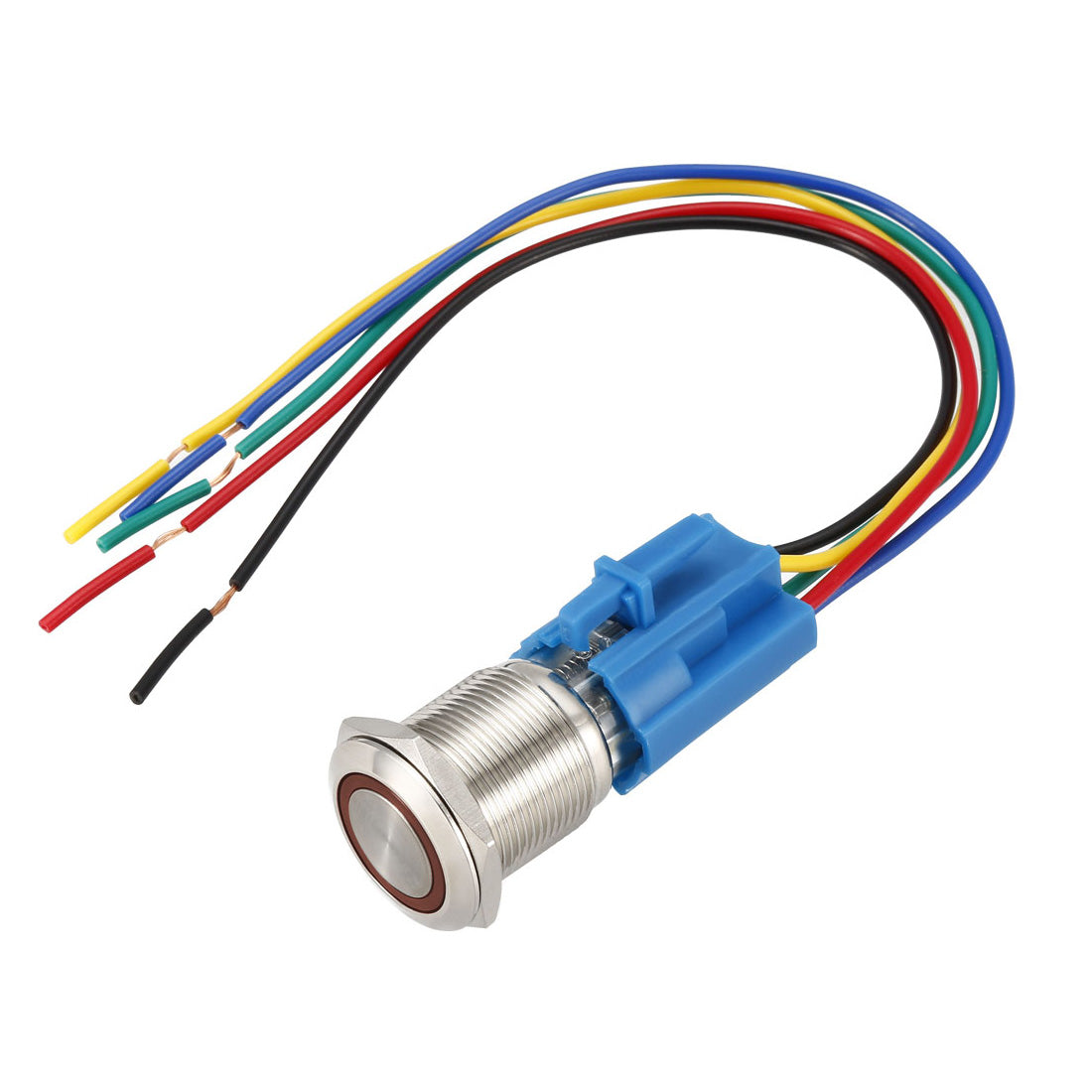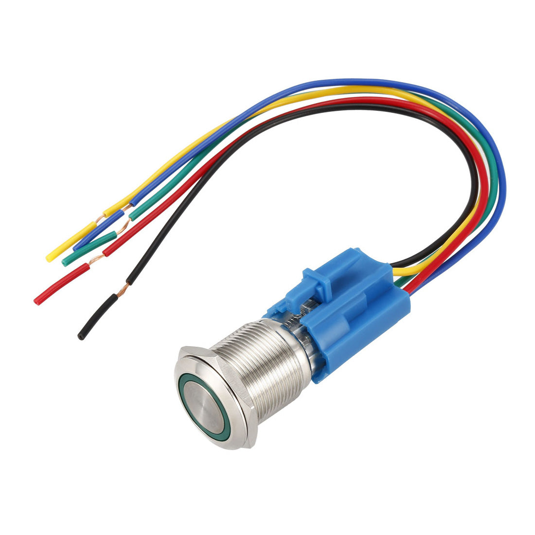 Harfington Metal Push Button Switch Mounting Dia 1NO 1NC COM LED with Socket Plug Wires