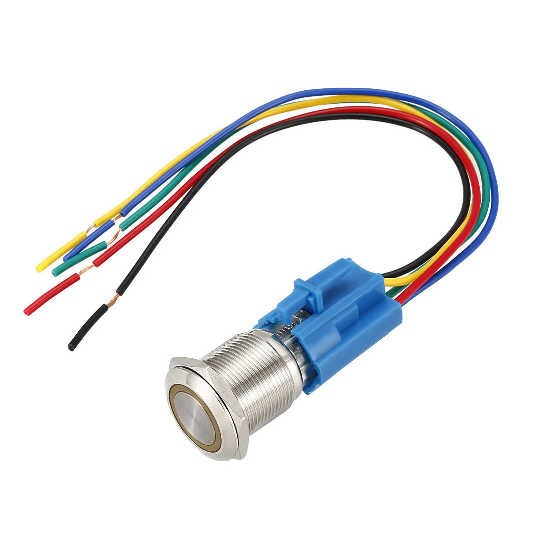 Metal Push Button Switch Mounting Dia 1NO 1NC COM LED with Socket Plug Wires