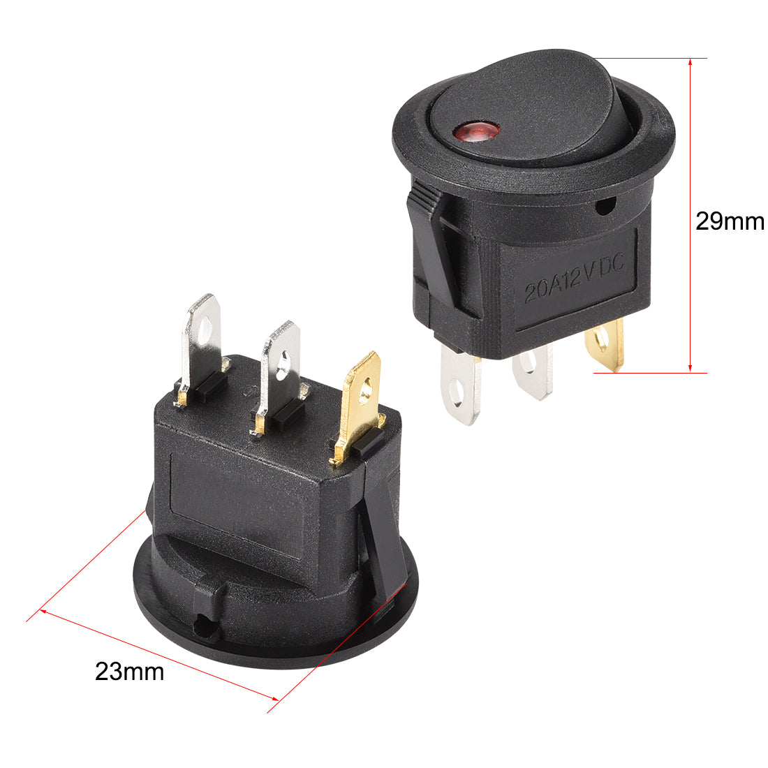 【Product Basic Parameters】DC 12V/20A , Red LED ,Total Size: 23*29mm(D*H), Mounting Diameter: 20.5mm