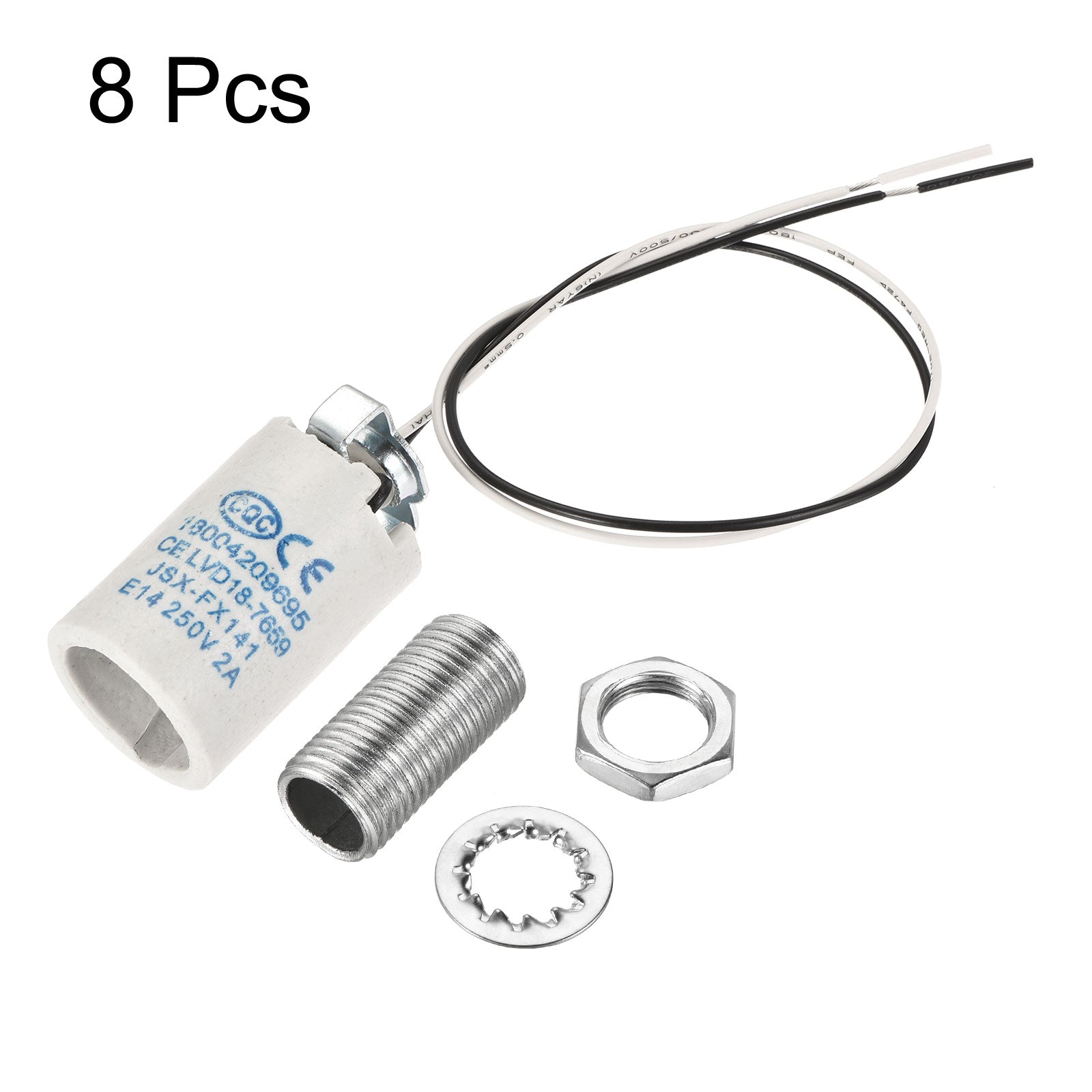 E14 Bulb Socket Ceramic Candelabra Bulb Lamp Holder with M10 Lamp Pipe Nut & Wire for E14 Incandescent Bulb, Pack of 8
