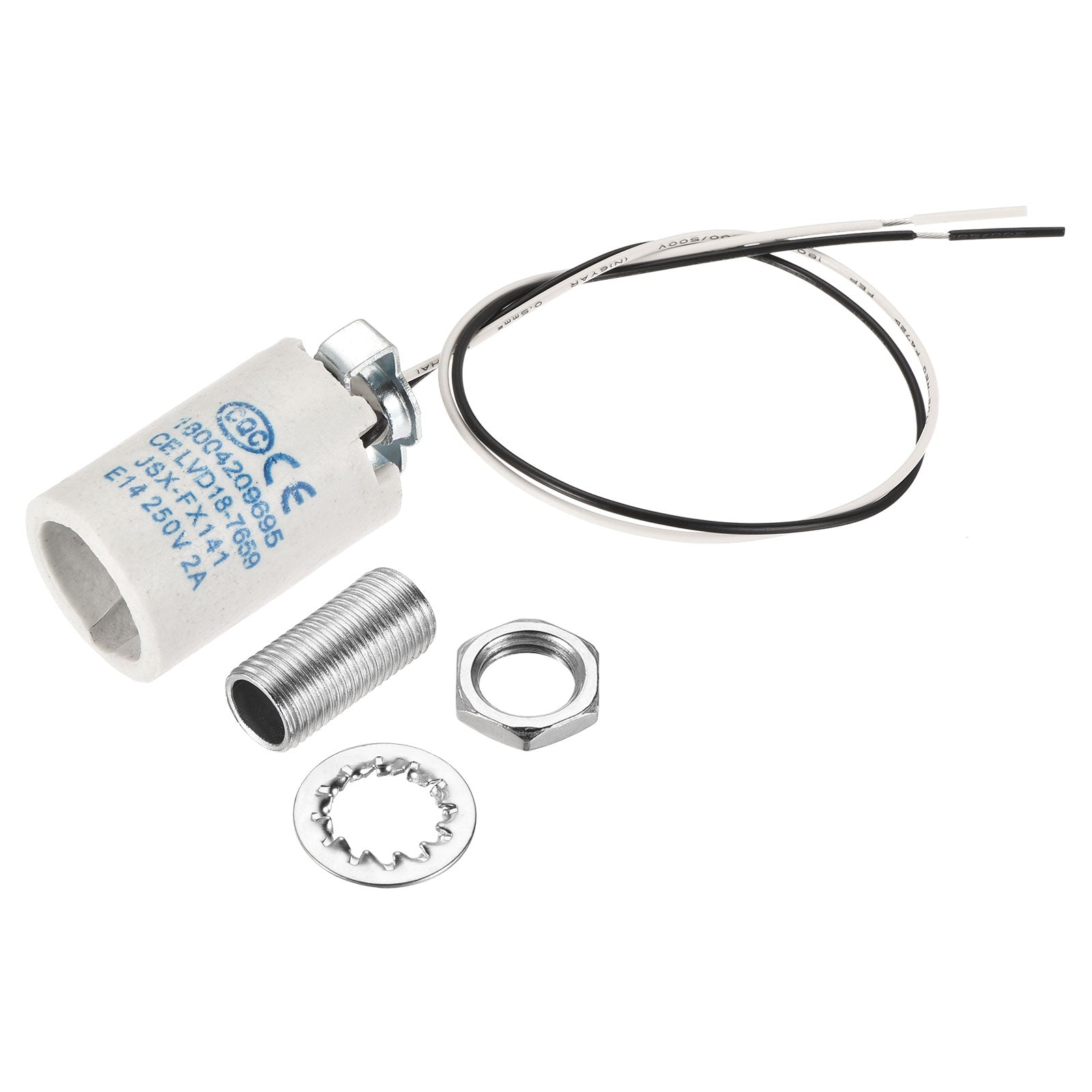 The base has good heat resistance, long service life. Insulated PTFE wire can withstand high temperatures, additionally equipped with internally threaded iron brackets, the lamp pipes, nuts and washers accessories are a good choice for the socket extension.