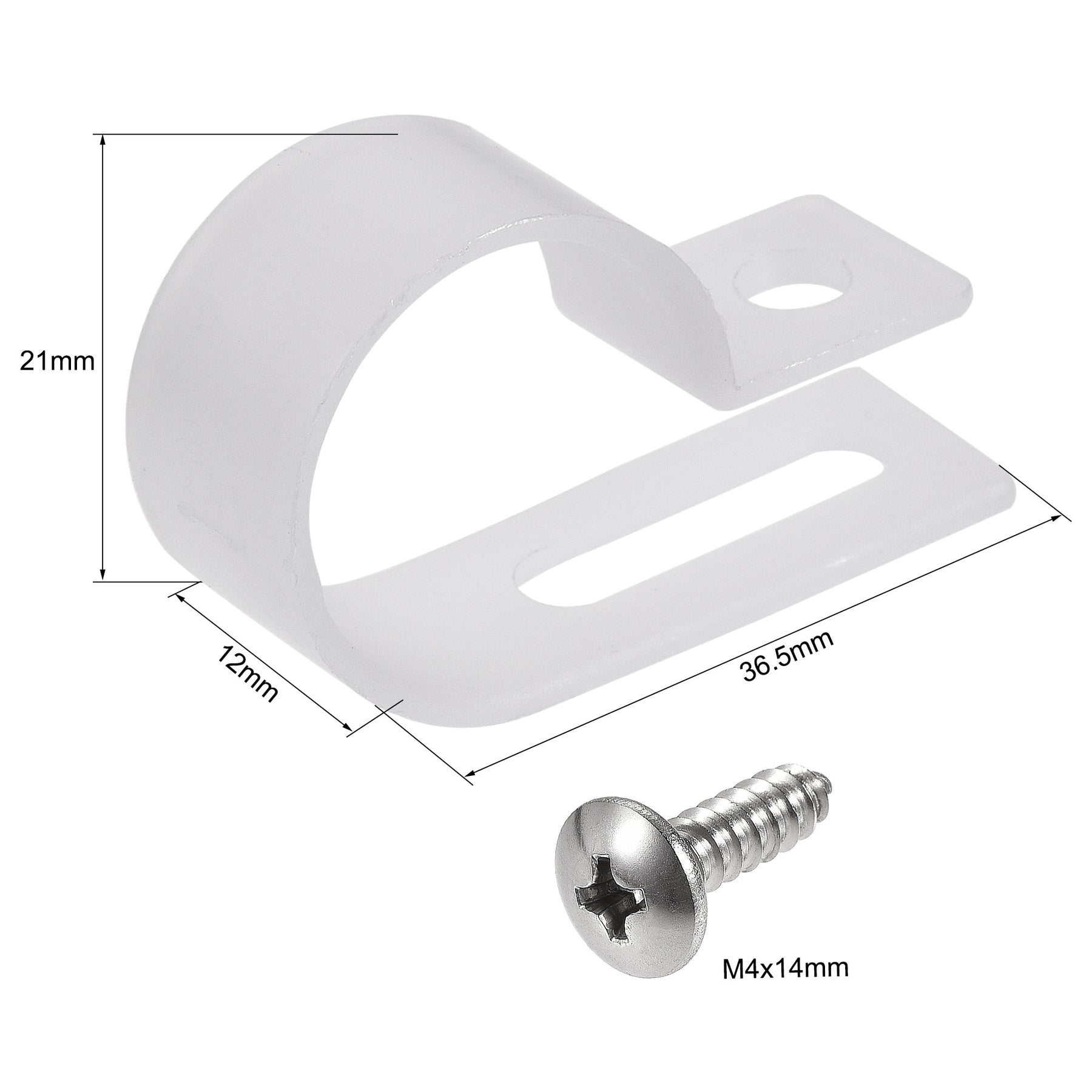 Specification: Material: Nylon Main Color: White Screw Size: M4x14mm(Thread Size*L) For Cable Diameter: 19mm Overall Size: 36.5mm x 12mm x 21mm(L*W*H) Package Content: Total 50 Set x Cable Clips with Screws