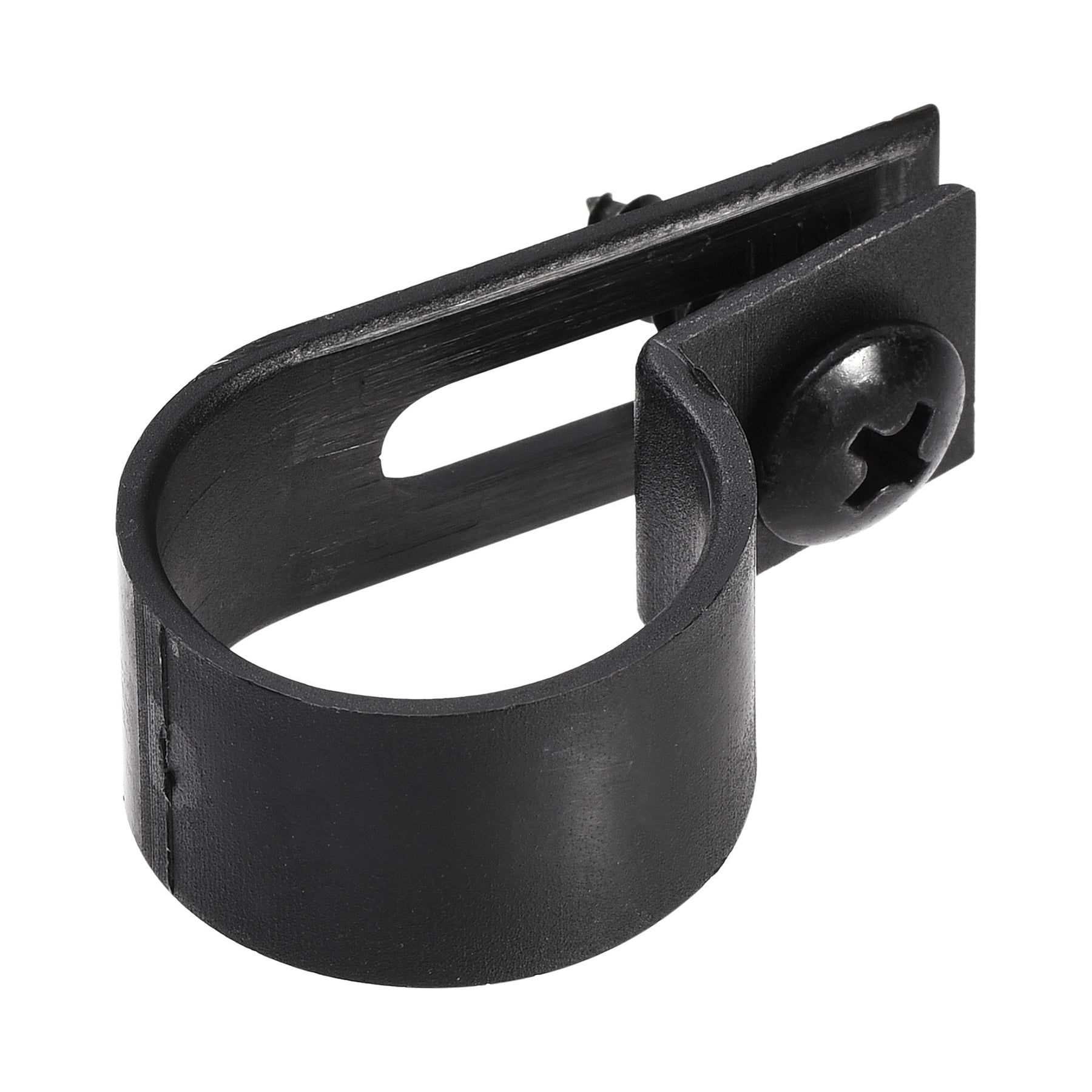 Specification: Material: Nylon Main Color: Black Screw Size: M4x14mm(Thread Size*L) For Cable Diameter: 19mm Overall Size: 36.5mm x 12mm x 21mm(L*W*H) Package Content: Total 50 Set x Cable Clips with Screws