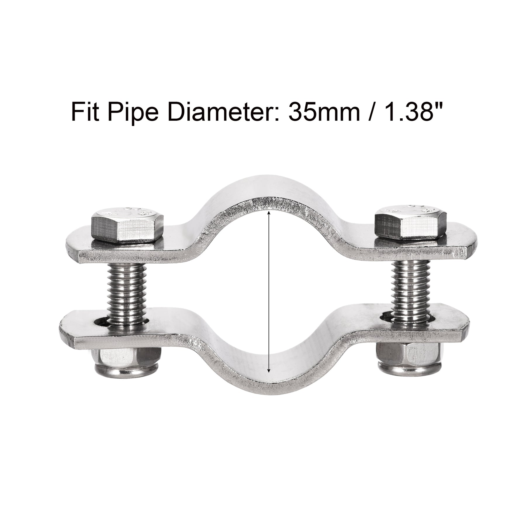 Specification: Material: 304 Stainless Steel Finish: Polishing Bolt Size: M8*1.25 Fit Pipe Diameter: 80mm / 3.15" Total Size: 130 x 25 x 72mm / 5.12" x 0.98" x 2.83" (L*W*H) Thickness: 2.8mm / 0.11" Hole Diameter: 10mm / 0.39"