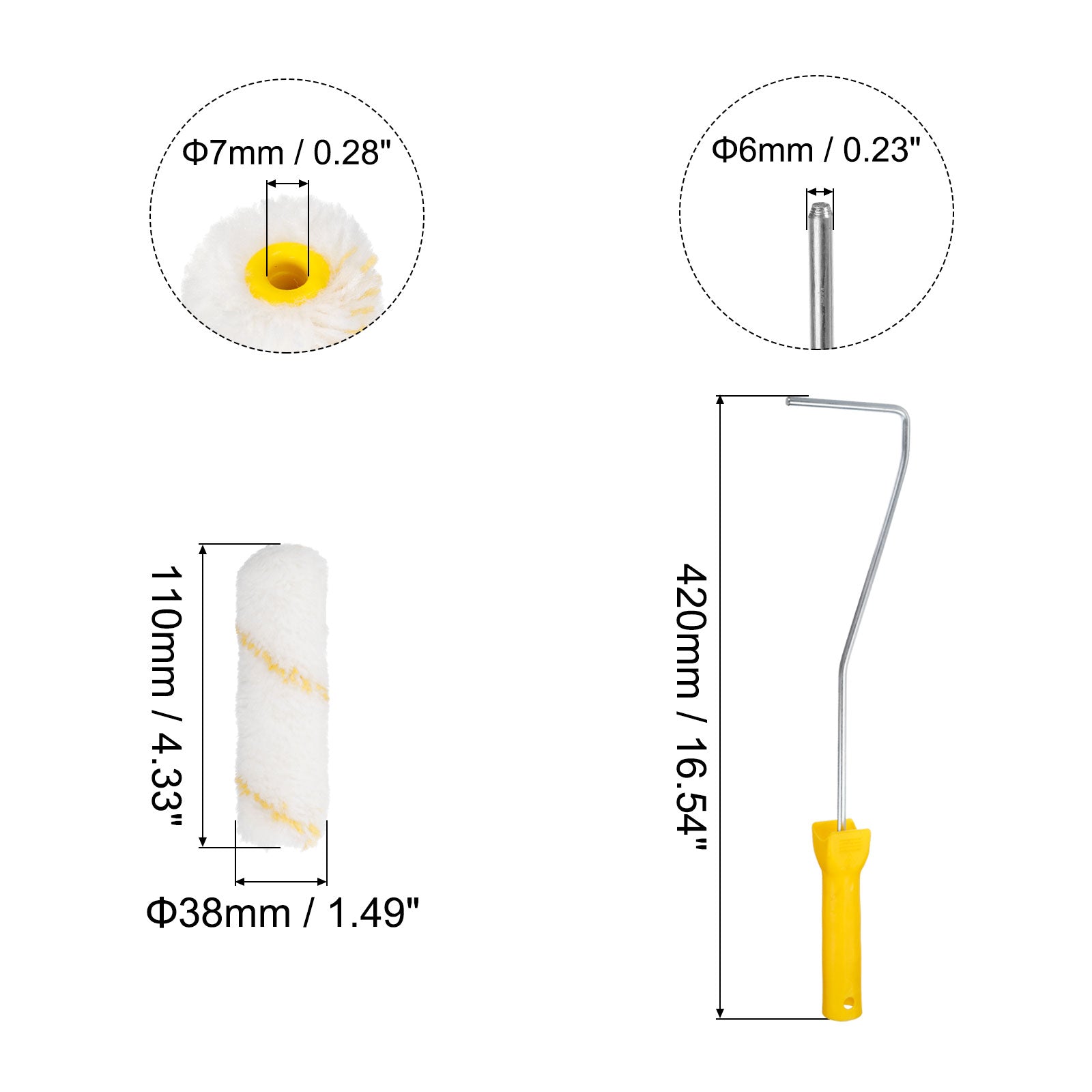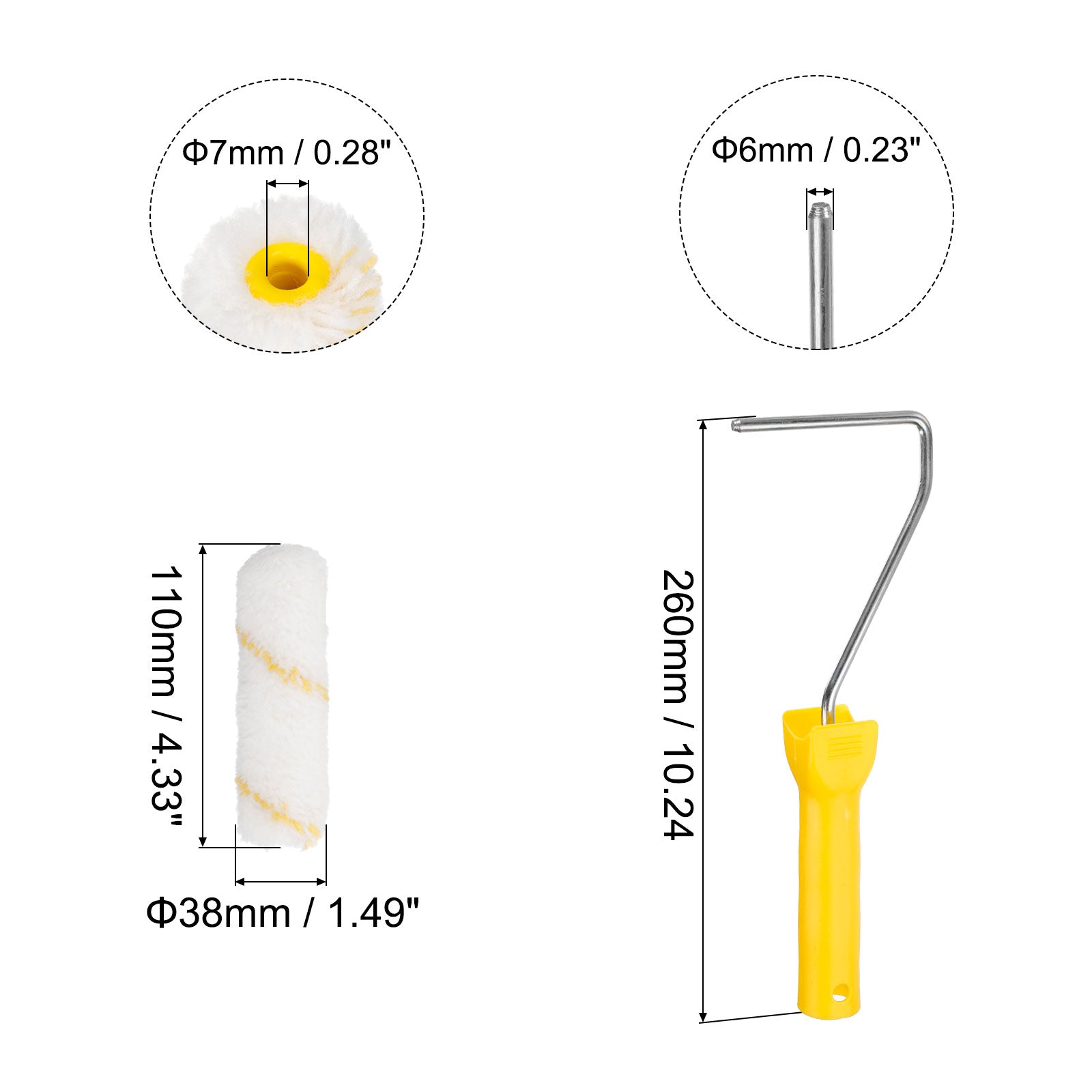 Features: Mini acrylic fiber paint roller can give the smooth and even finish on the flat surfaces. Premium acrylic fiber will not deform easily. The carbon steel roller frame matched with the acrylic fiber roller cover will give a stable and flexible rolling action, also friendly to beginners. The paint roller set comes with more roller frame making it easy to change and paint another color in your work, or save for the next project. Suitable for interior, exterior, furniture, house painting, small jobs, house painting supplies.