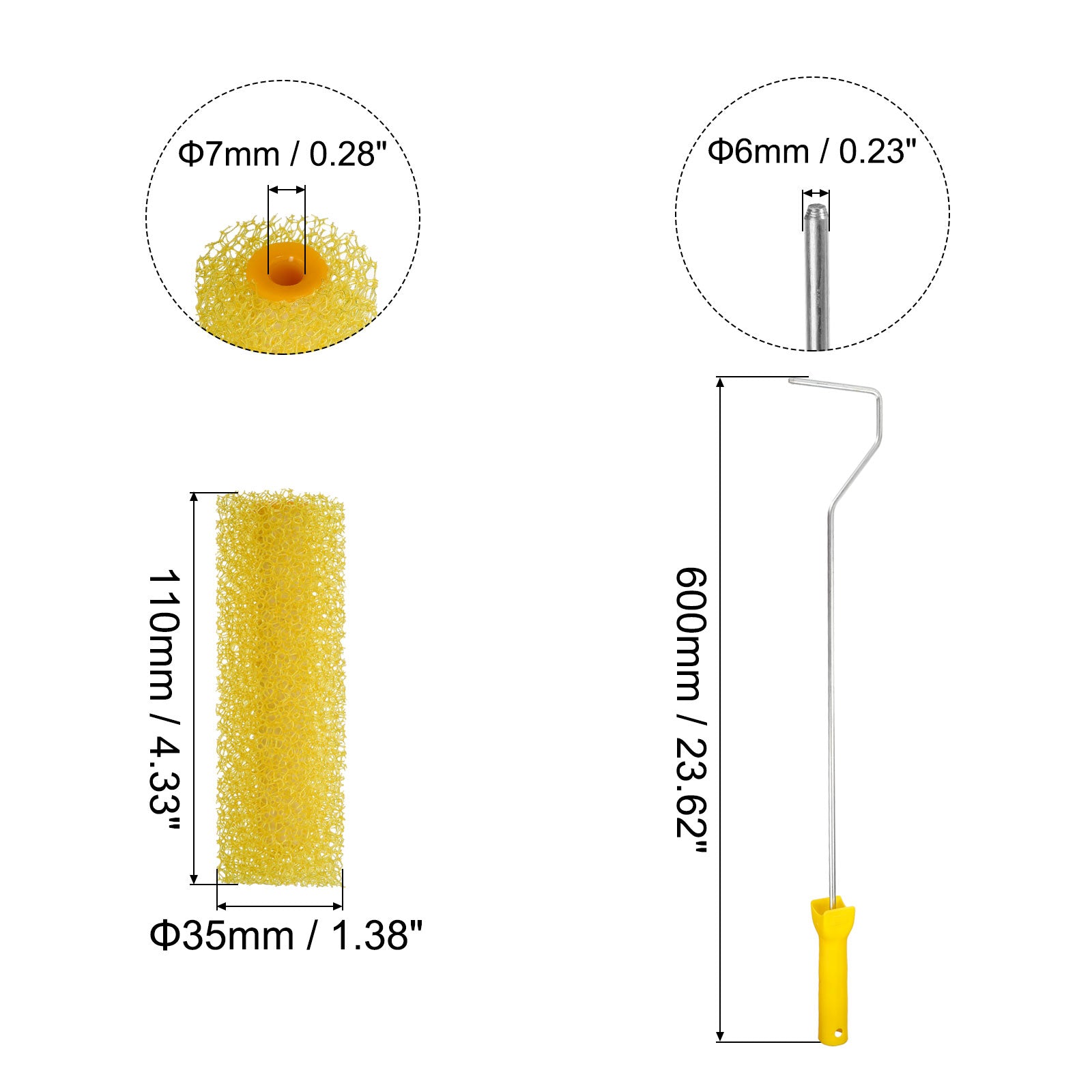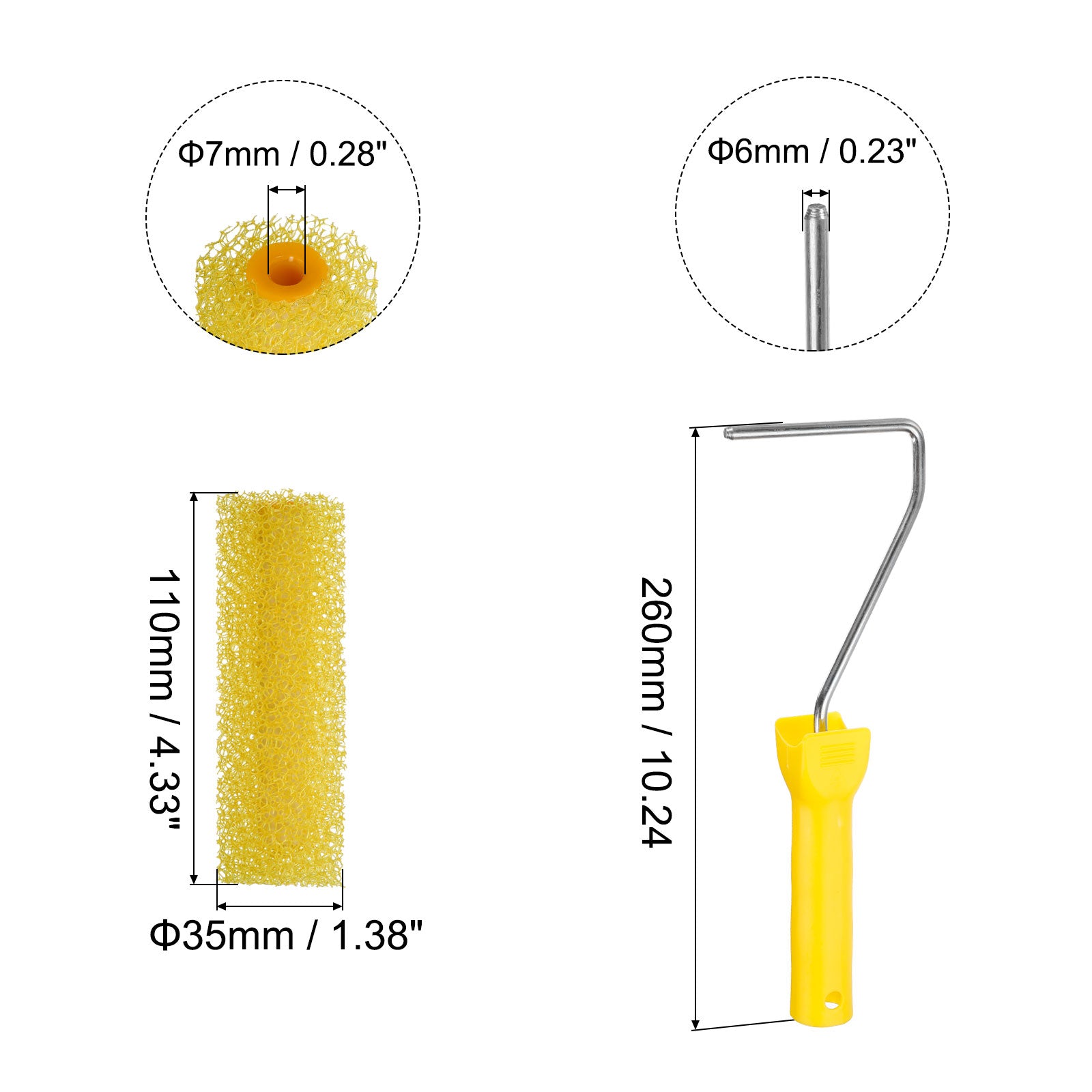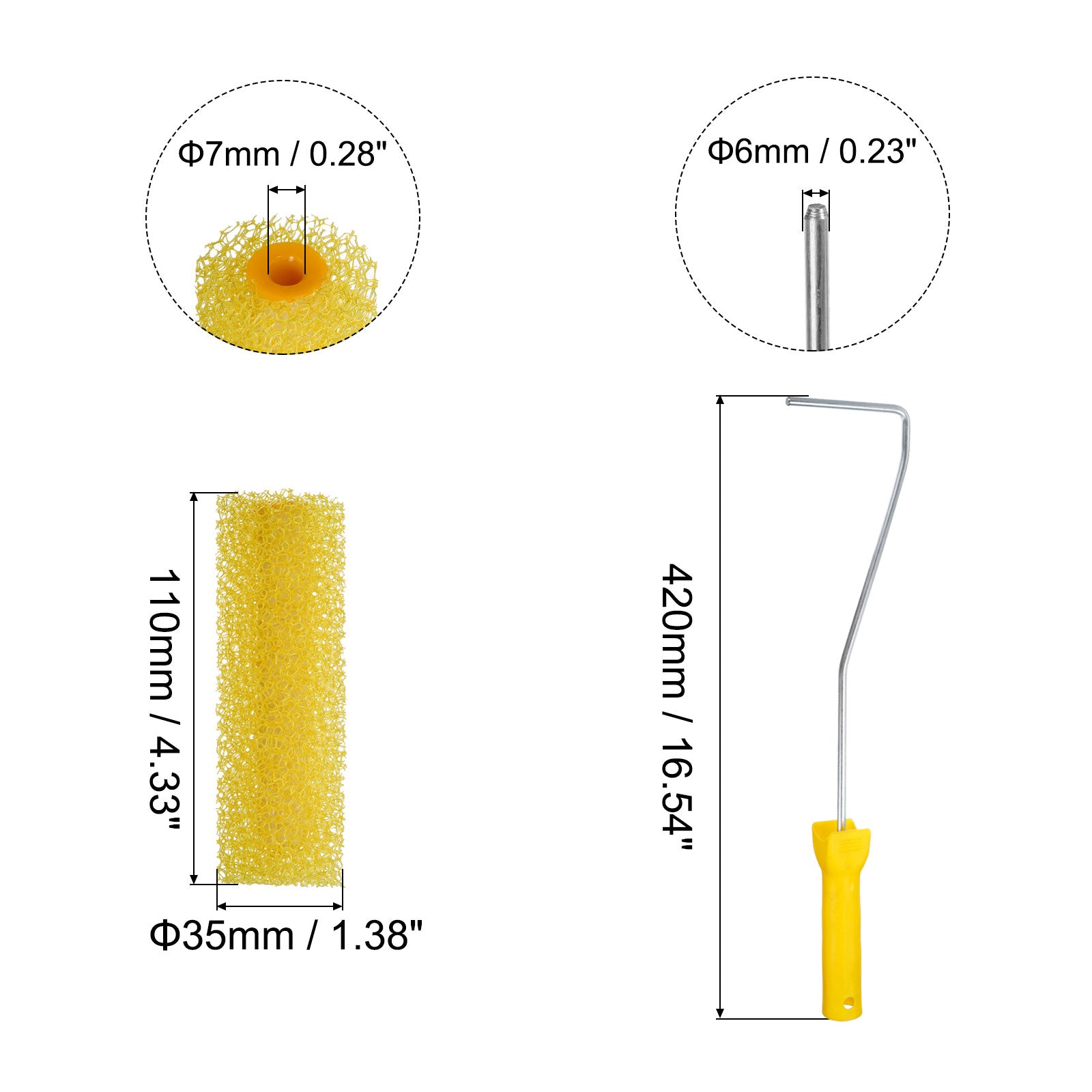 This Paint Roller Set includes 2pcs 4" Sponge Roller Covers, 1pcs 10" Length Roller Frame.