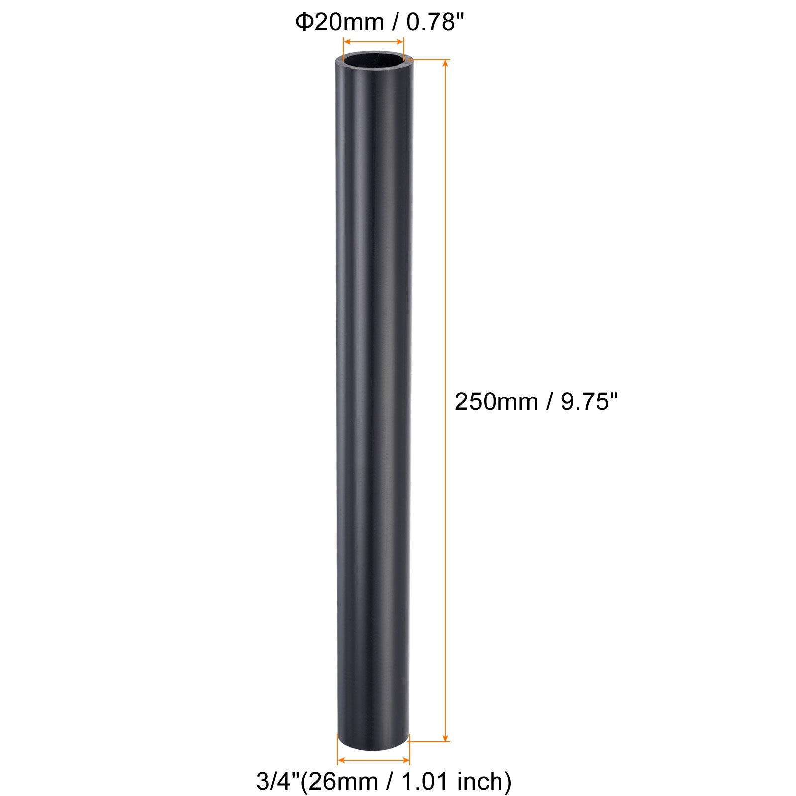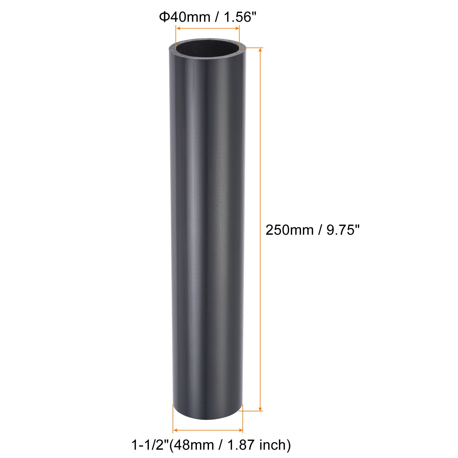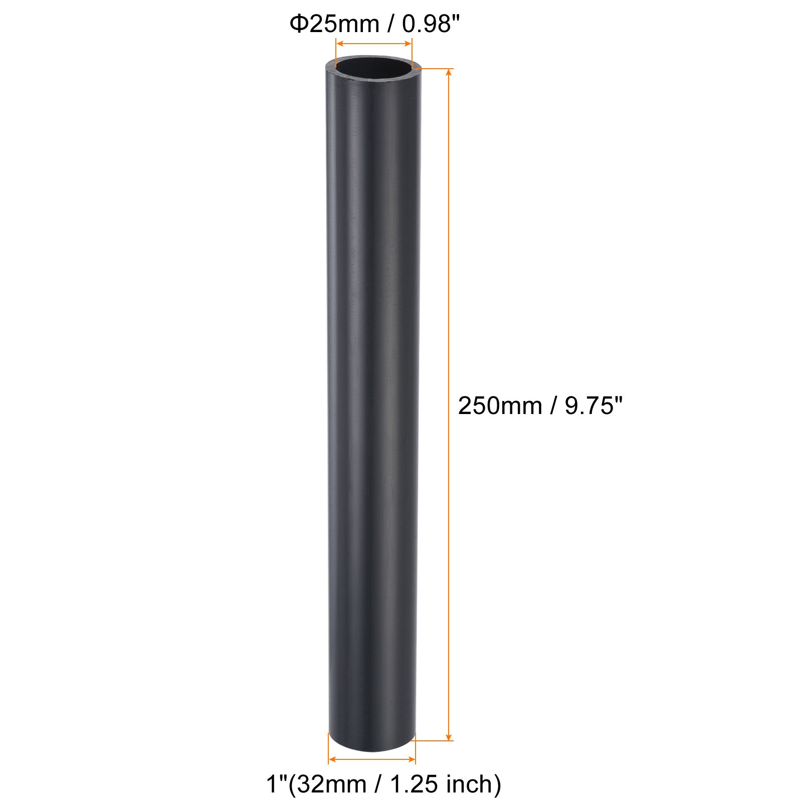 Color: Black; Material: UPVC; Outer Diameter: 1"(32mm / 1.25 inch) ;Inner Diameter: 25mm / 0.98 inch;Length: 250mm / 9.75 inch ;Package Content: 1 x Straight Through Fitting