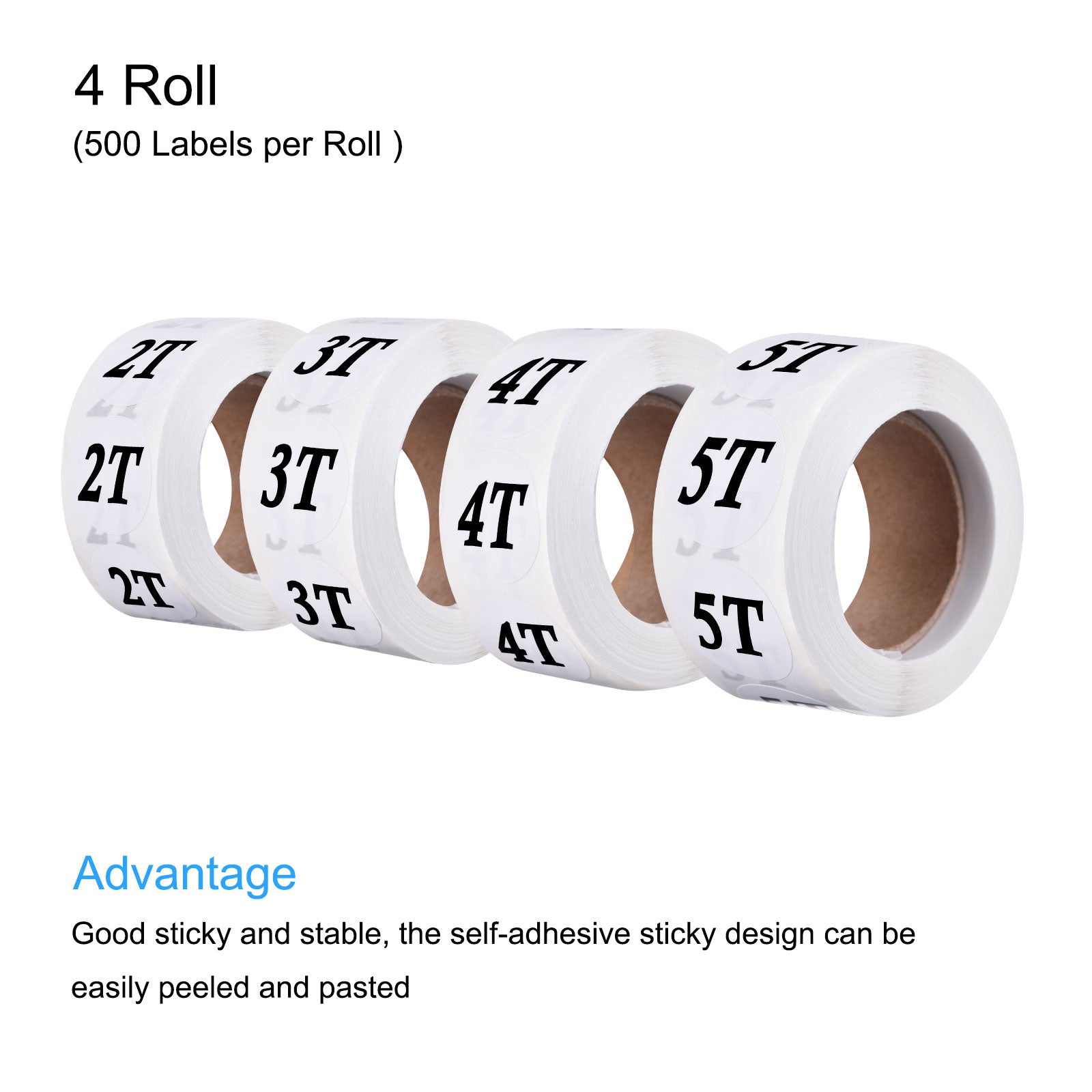 Clothing 2T/3T/4T/5T Size Sticker Label Coding Label 25mm/1inch Dia 4 Roll 2000 Round Labels for Retail Clothes Apparel