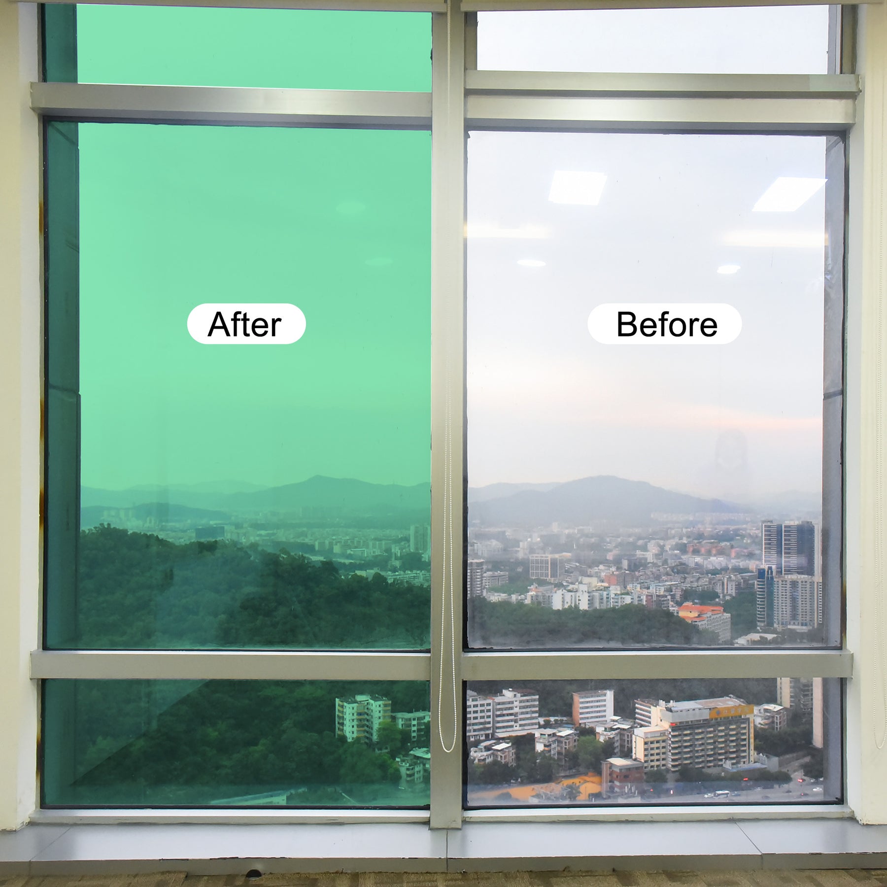 Window Film, Glass Sun Blocking, Heat Control Self Adhesive Green Window Tint, 5.2x1.64ft for Home Office