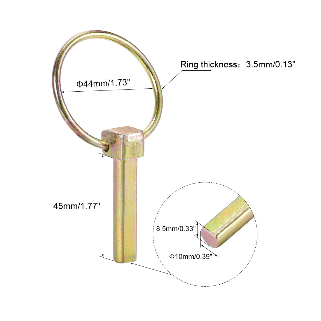 5. Package Include: 5pcs 4.5mm x 38mm Linch Pin with Ring
