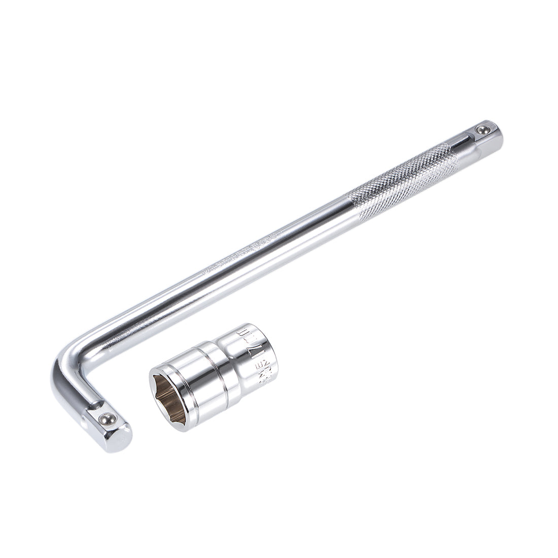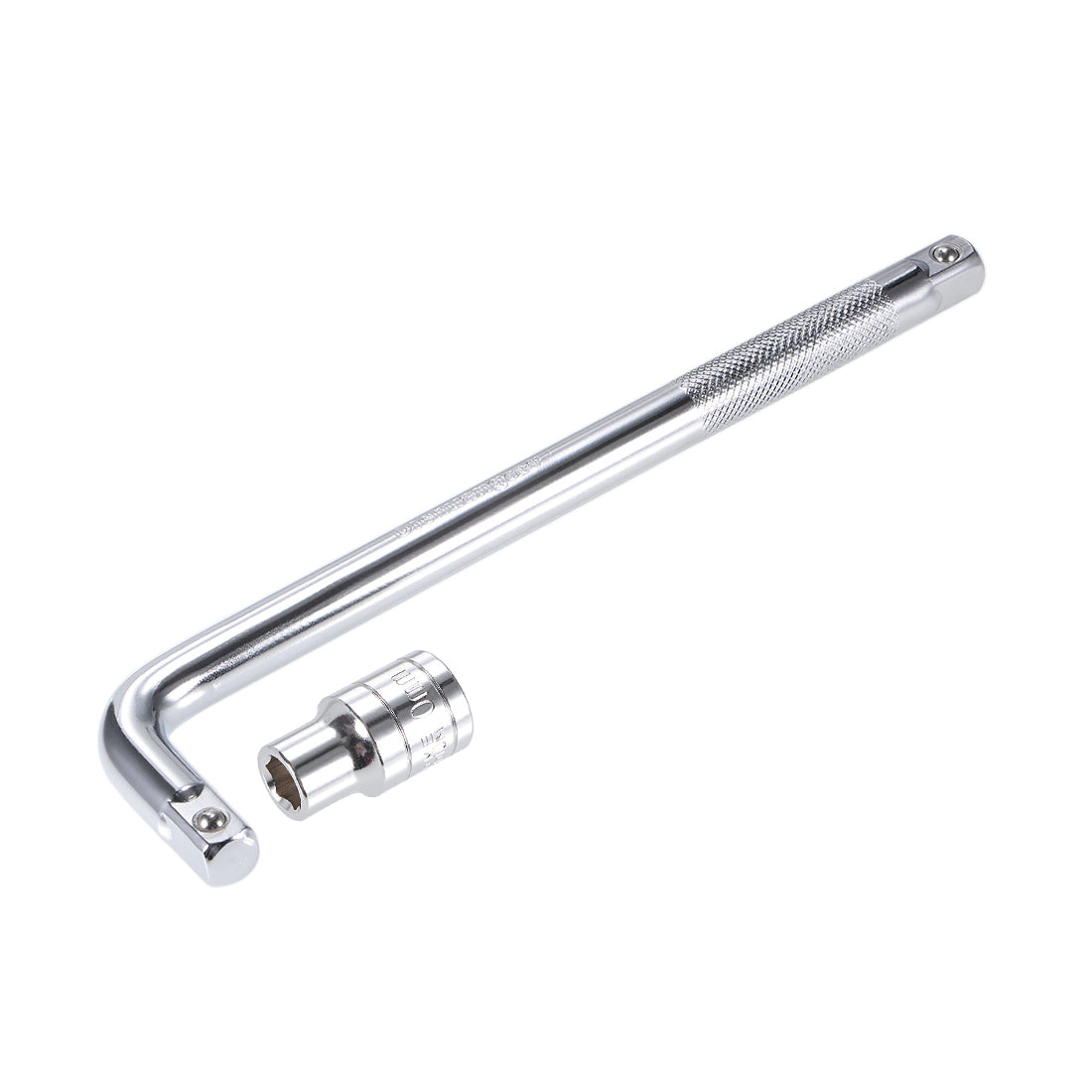 Size:10mm 1. Made with chromium vanadium steel forging, high strength and good wear resistance, durable to use. 2. L-Shape Extension Bar: Providing offset clearance for hard-to-reach fasteners, with spring-loaded balls securely latch onto sockets, ensures the sockets won't slide or drop. 3. 6-Point Socket: Has 6-point opening that snugly fits the hex shape of fastener heads, allowing it to apply maximum torque without slipping. 4. Widely used in DIY hand-making, household maintenance, and most general repairs.