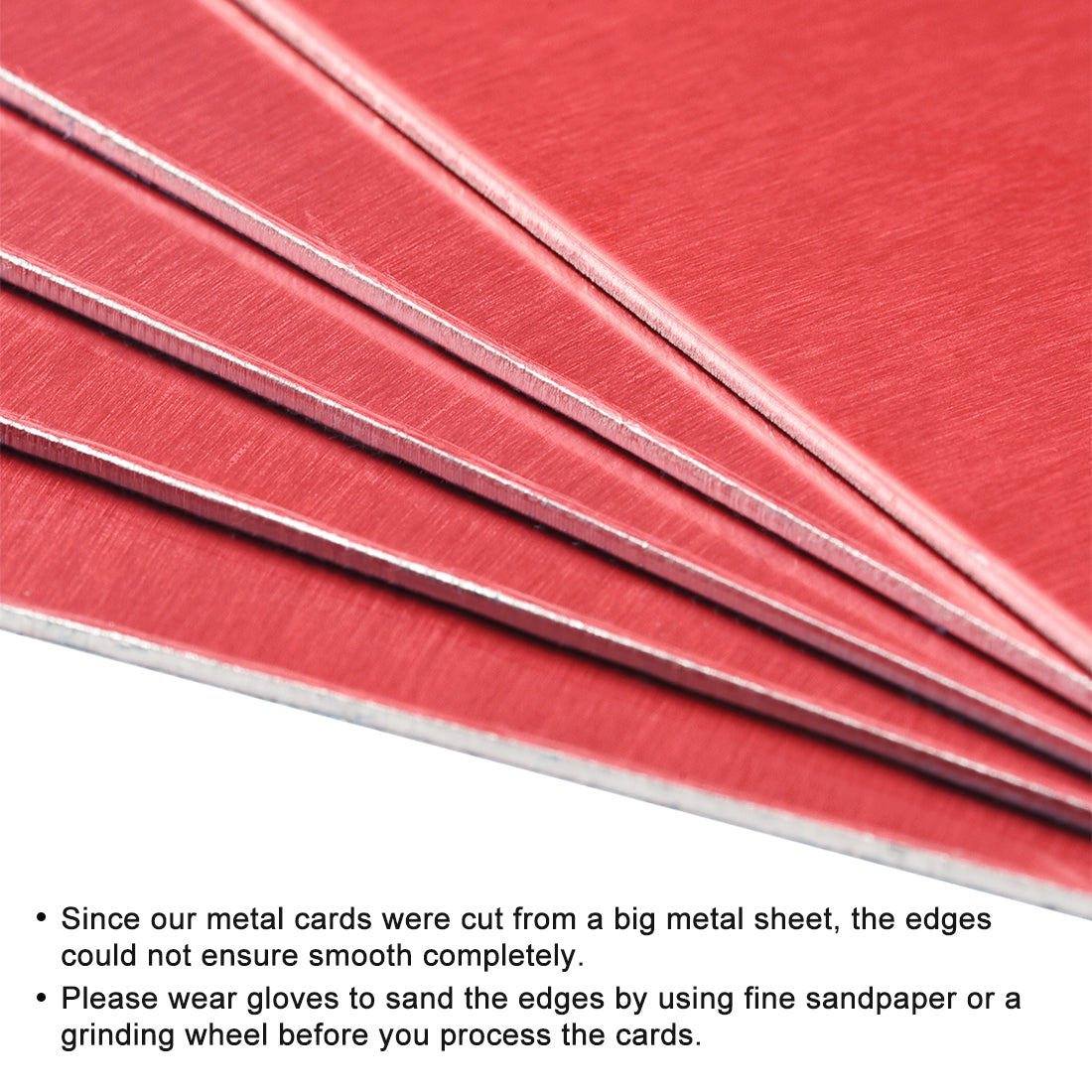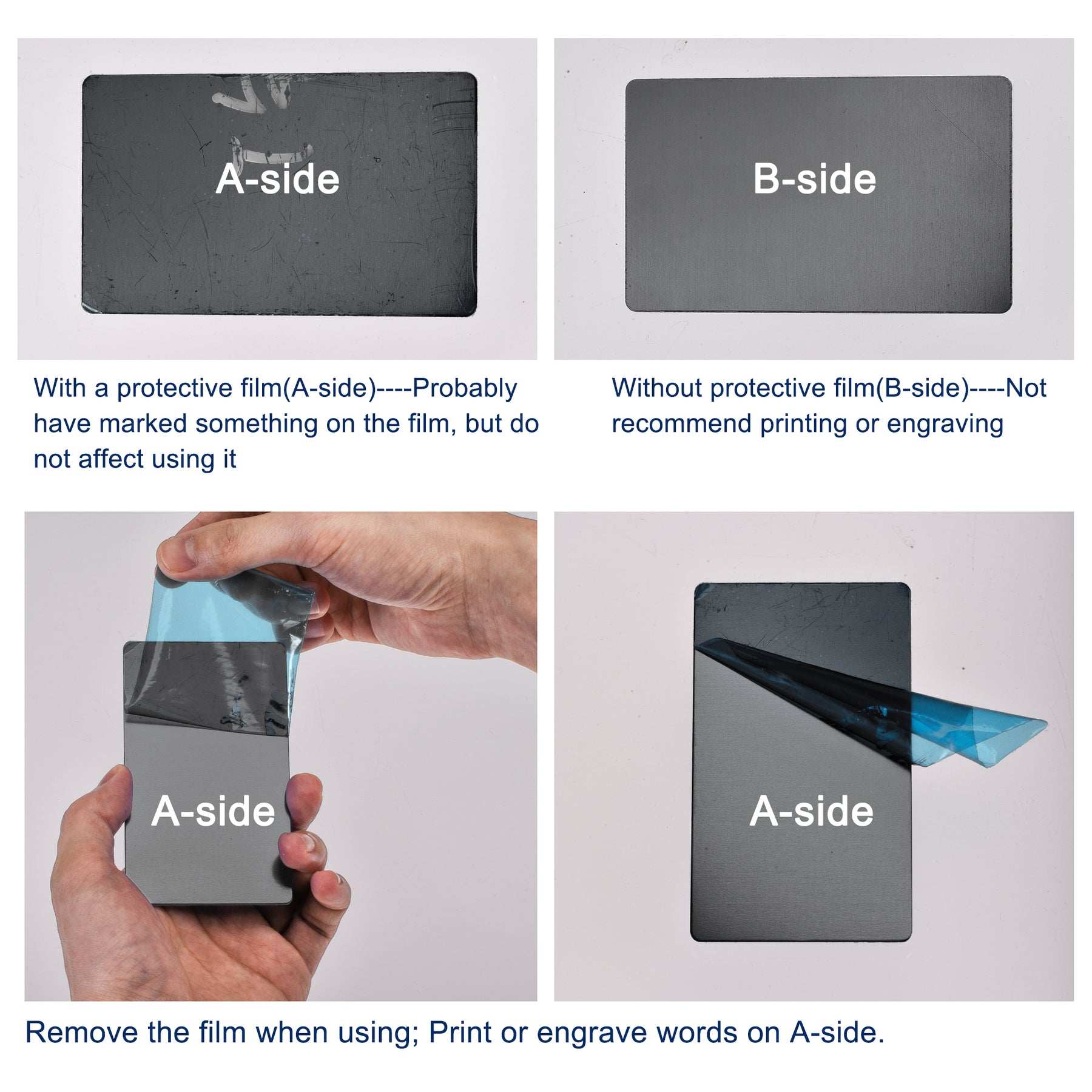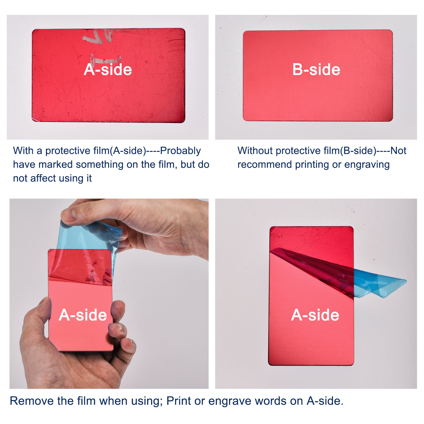 Description: 1. Aluminum card is processed with a specific anodized process for high strength, corrosion resistance and long-lasting durability. 2. Metal card is not easy to be folded or bent. Also with R2 chamfer corners design. 3. Commonly used for: Nameplate, door plate, trophy plaques, desk tag, label tag, serial number tag, metal sign and many other crafting needs. Suitable for using with: laser engraving and can also be used for sublimation, stamping, and other engraving methods.
